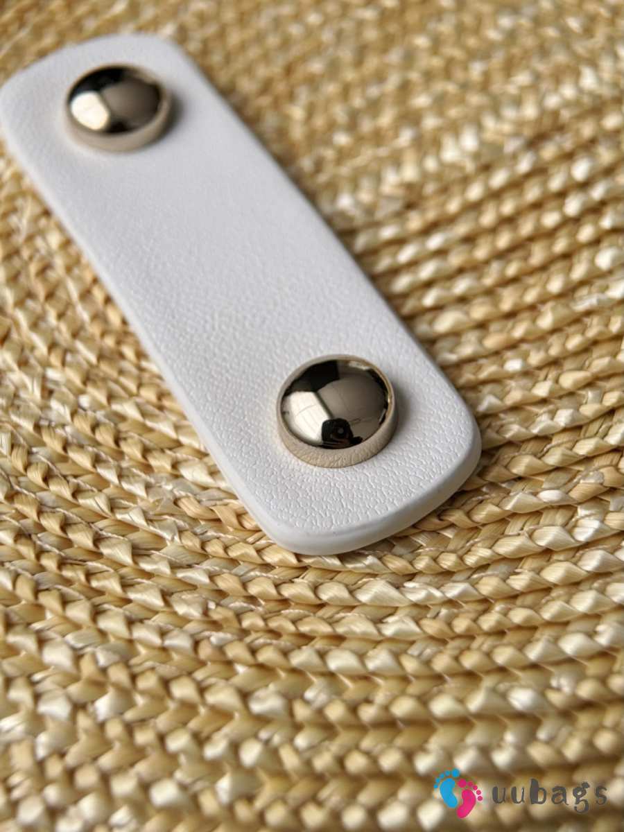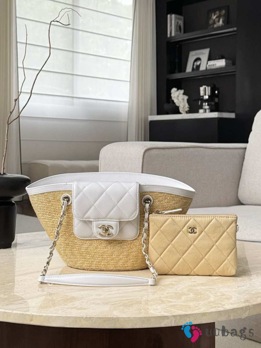 Uubags Chanel medium shopping bag braided straw, sheepskin & gold-colored metal beige & white 18x41x13cm