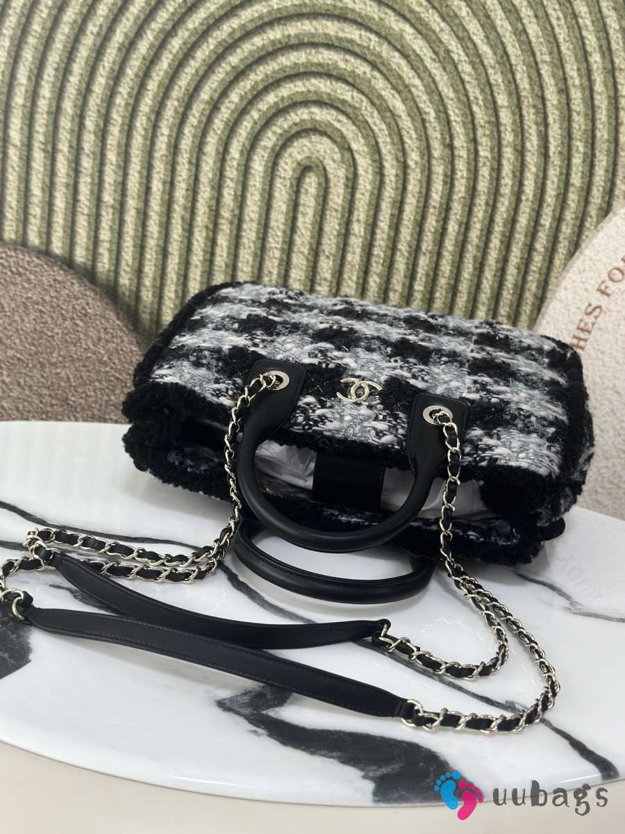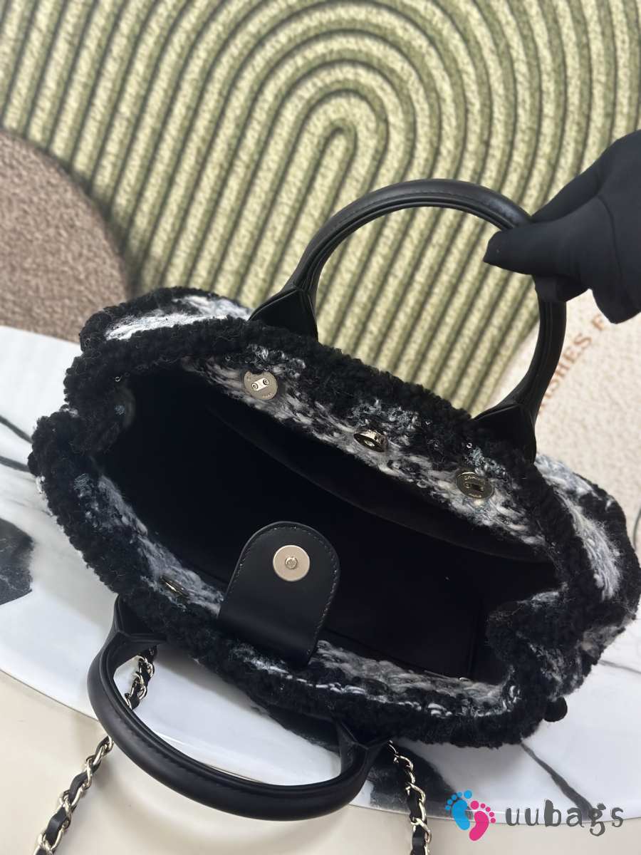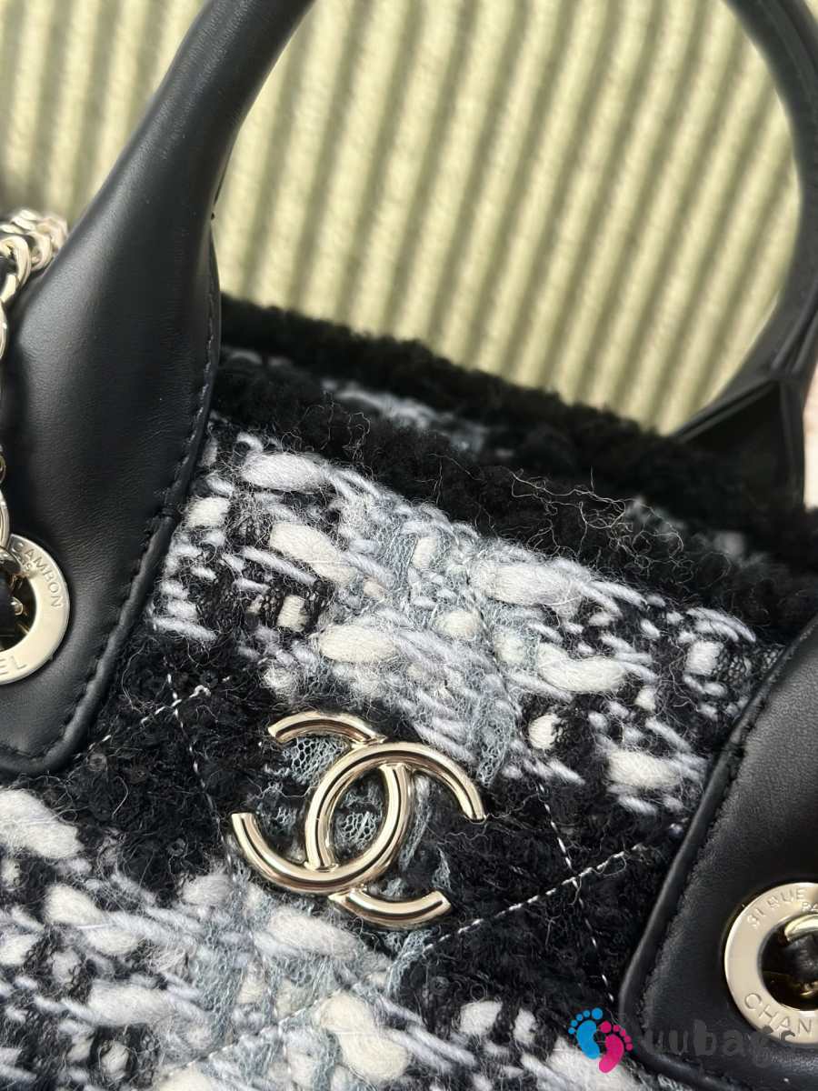 Uubags Chanel Medium Shopping Bag Tweed, Shearling Lambskin & Gold-Tone Metal In Black & Gray 33cm