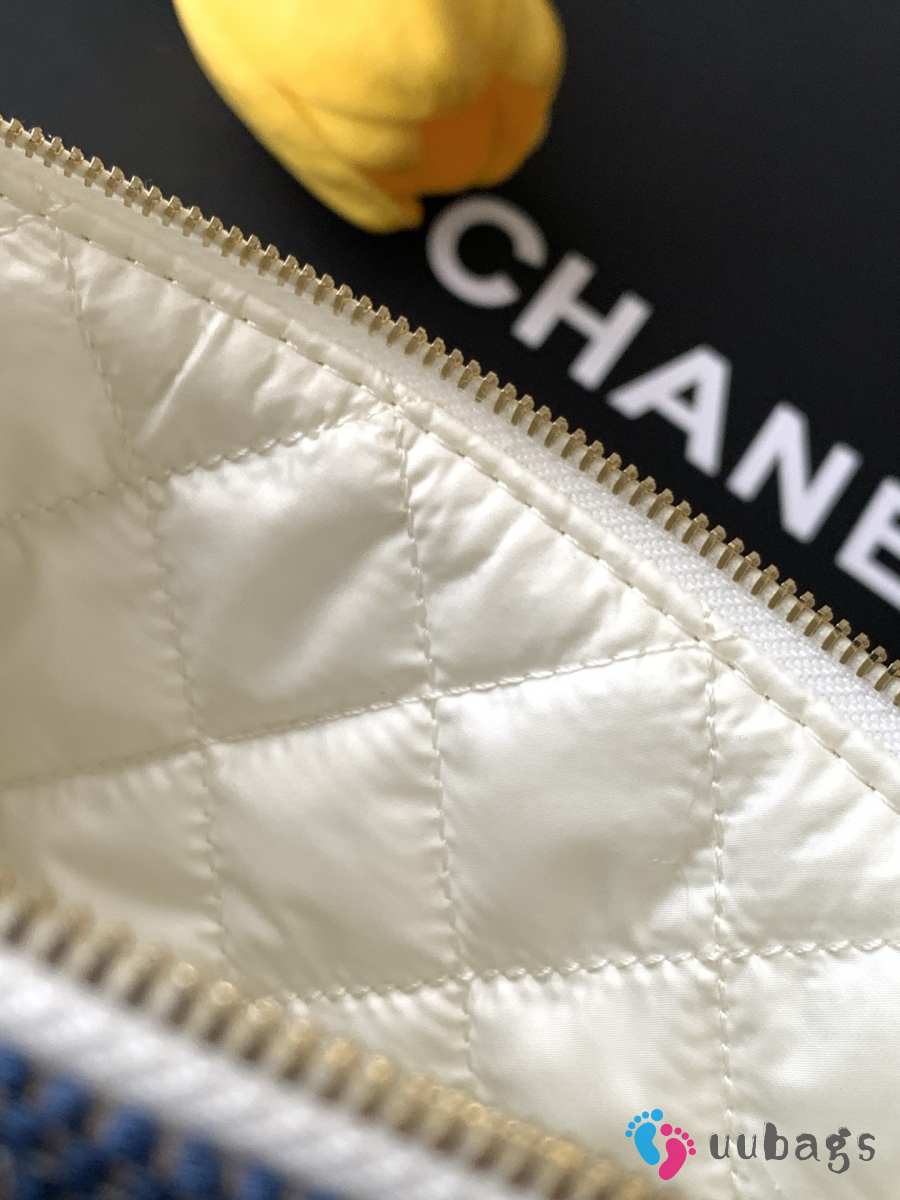 Uubags Chanel Medium Zipped Case Printed Fabric & Gold-Tone Metal In Blue/White 16.5x26x9cm
