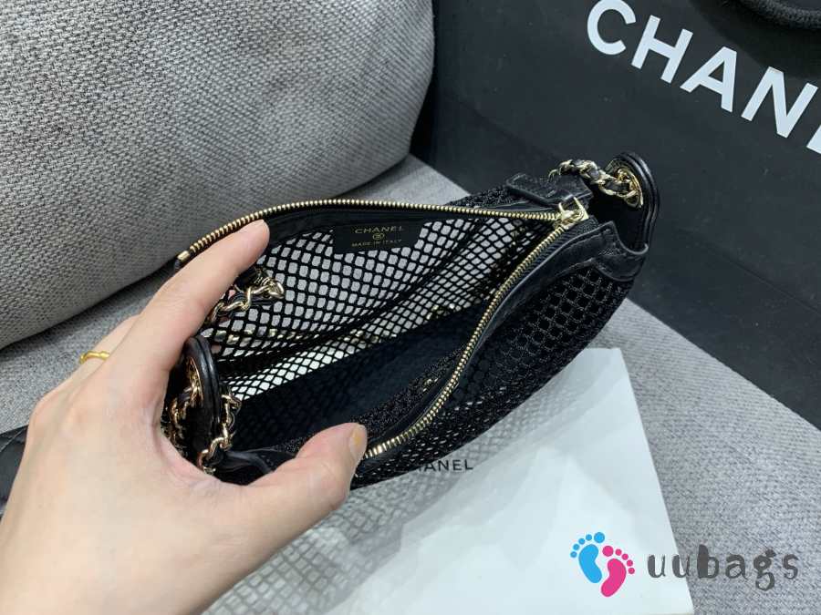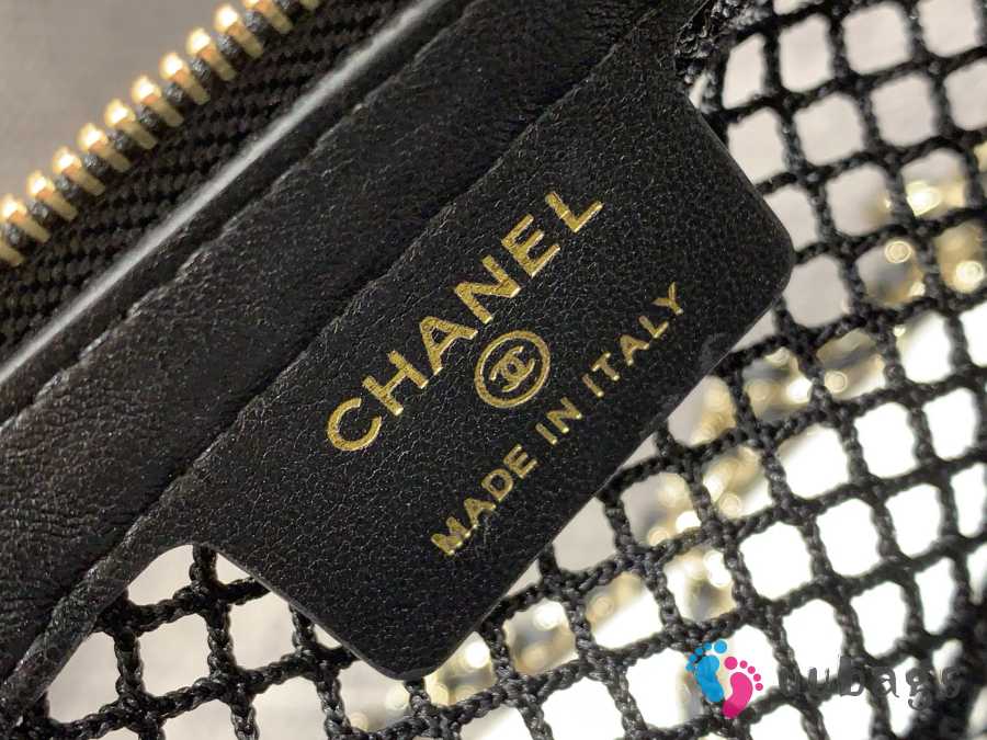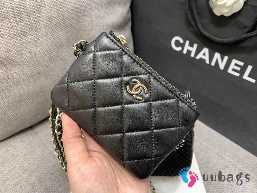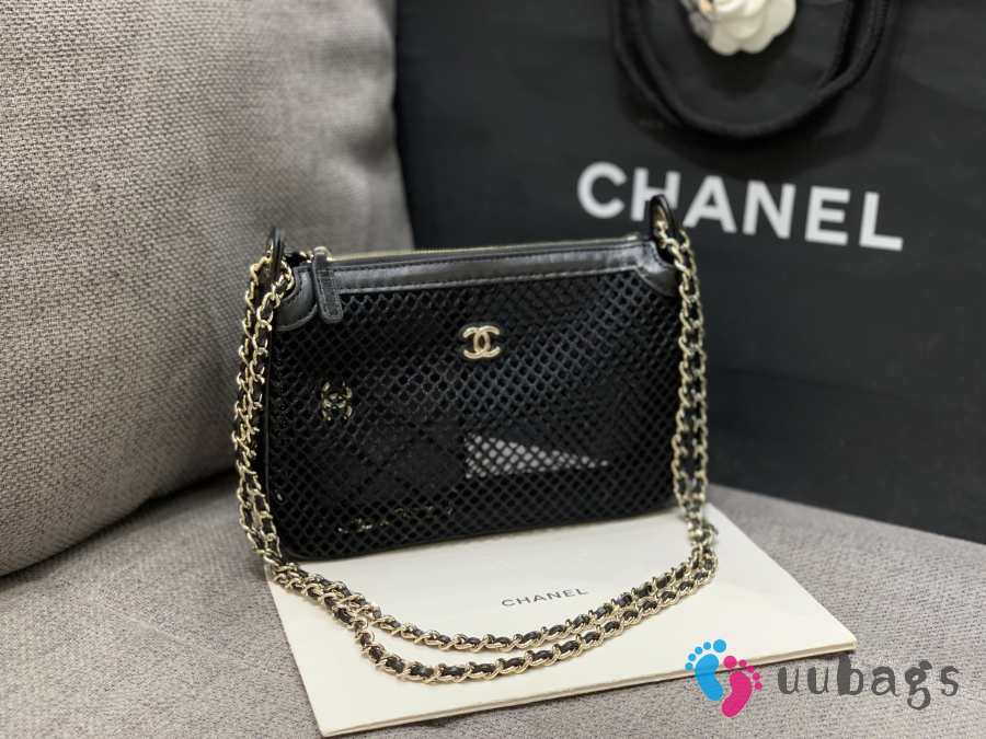 Uubags Chanel Mesh Shiny Lambskin Clutch With Chain Black 15x21.5x6cm