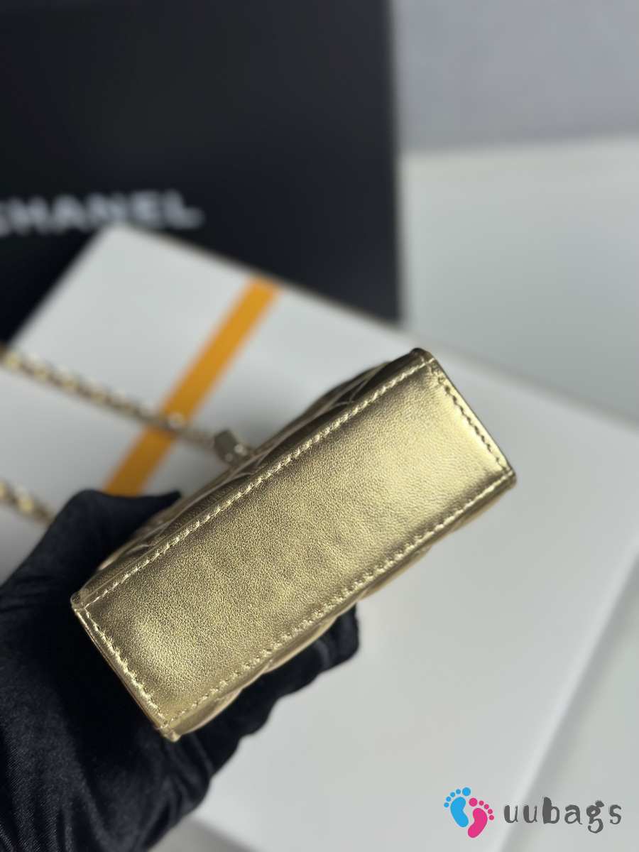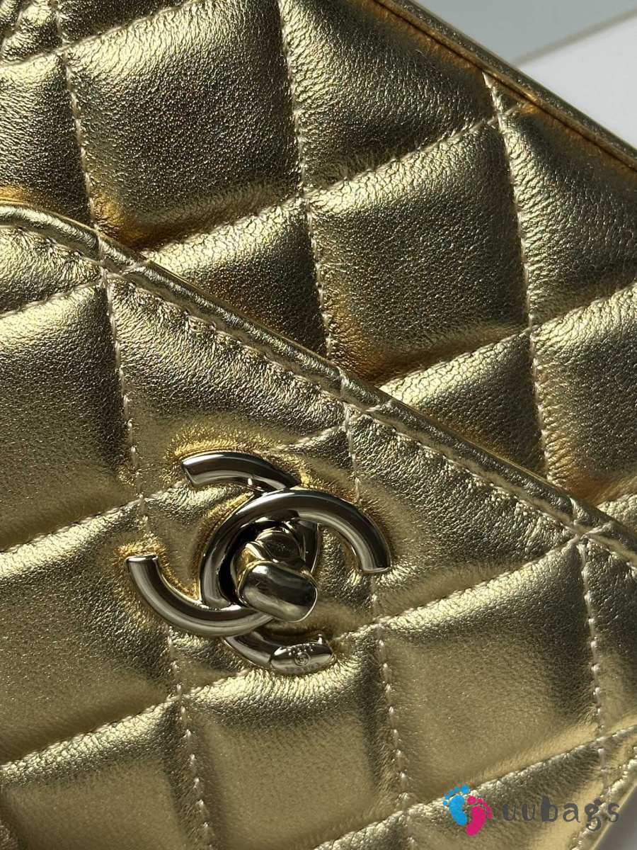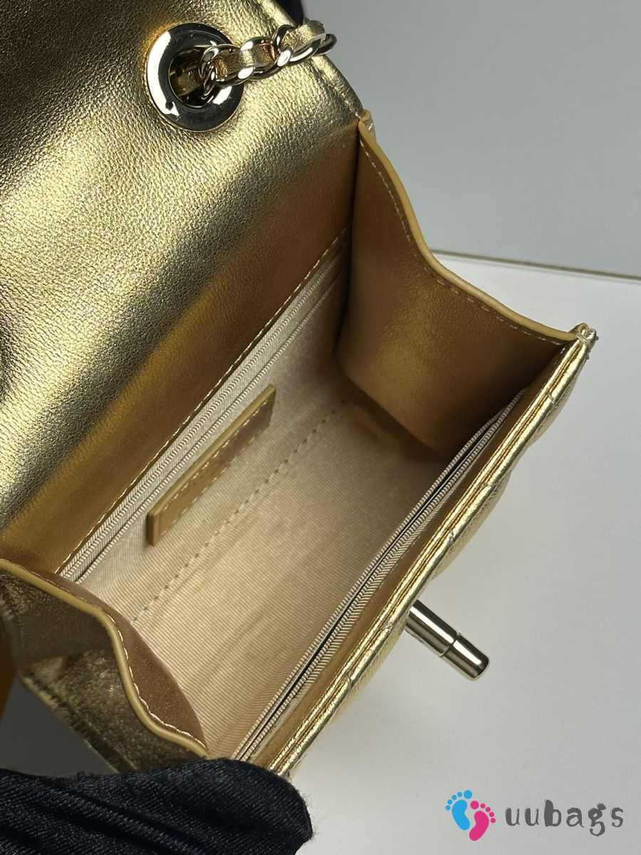 Uubags Chanel Metallic Gold Lambskin Mini CC Clutch with Chain Gold Hardware 11x5x11cm