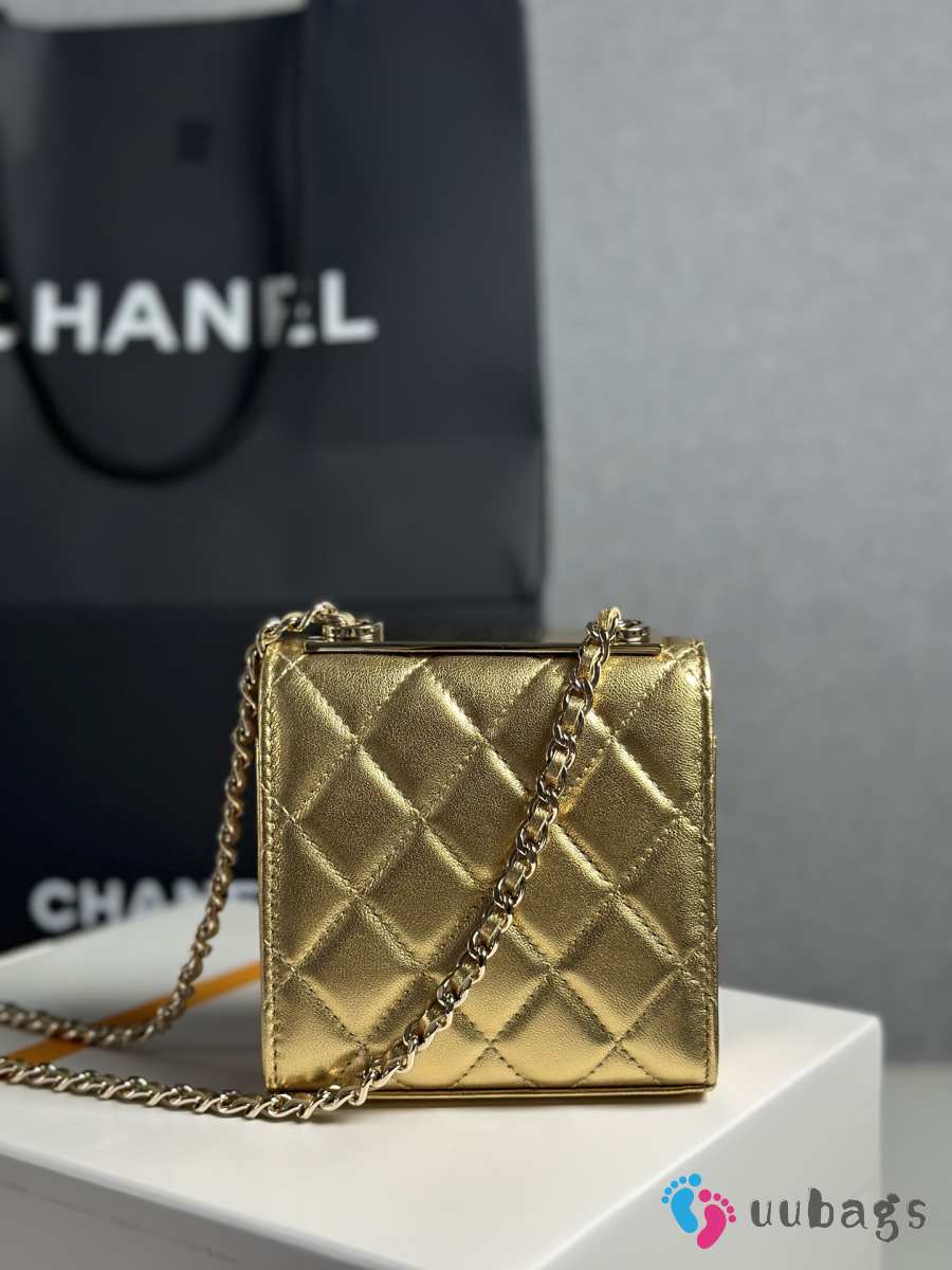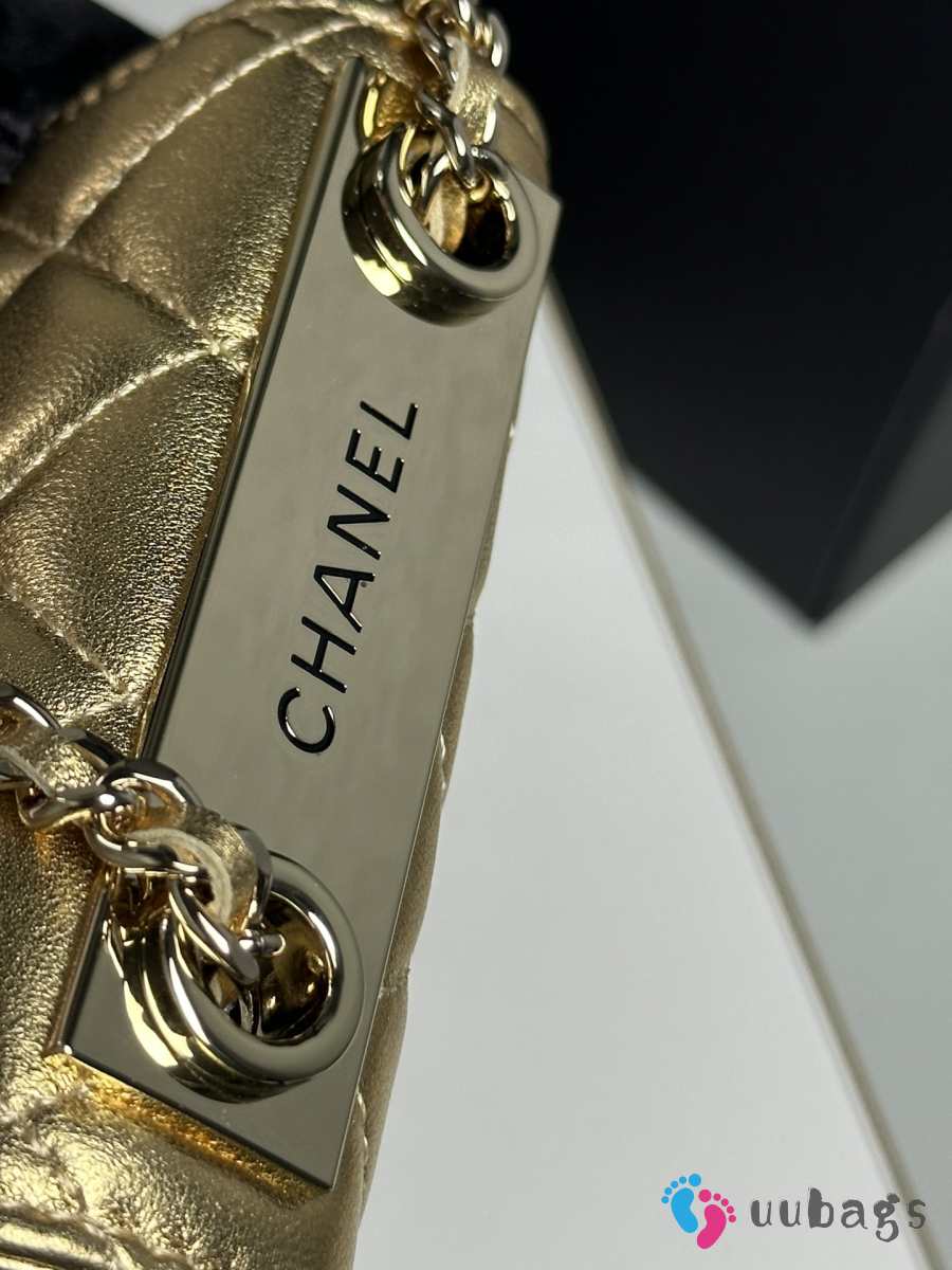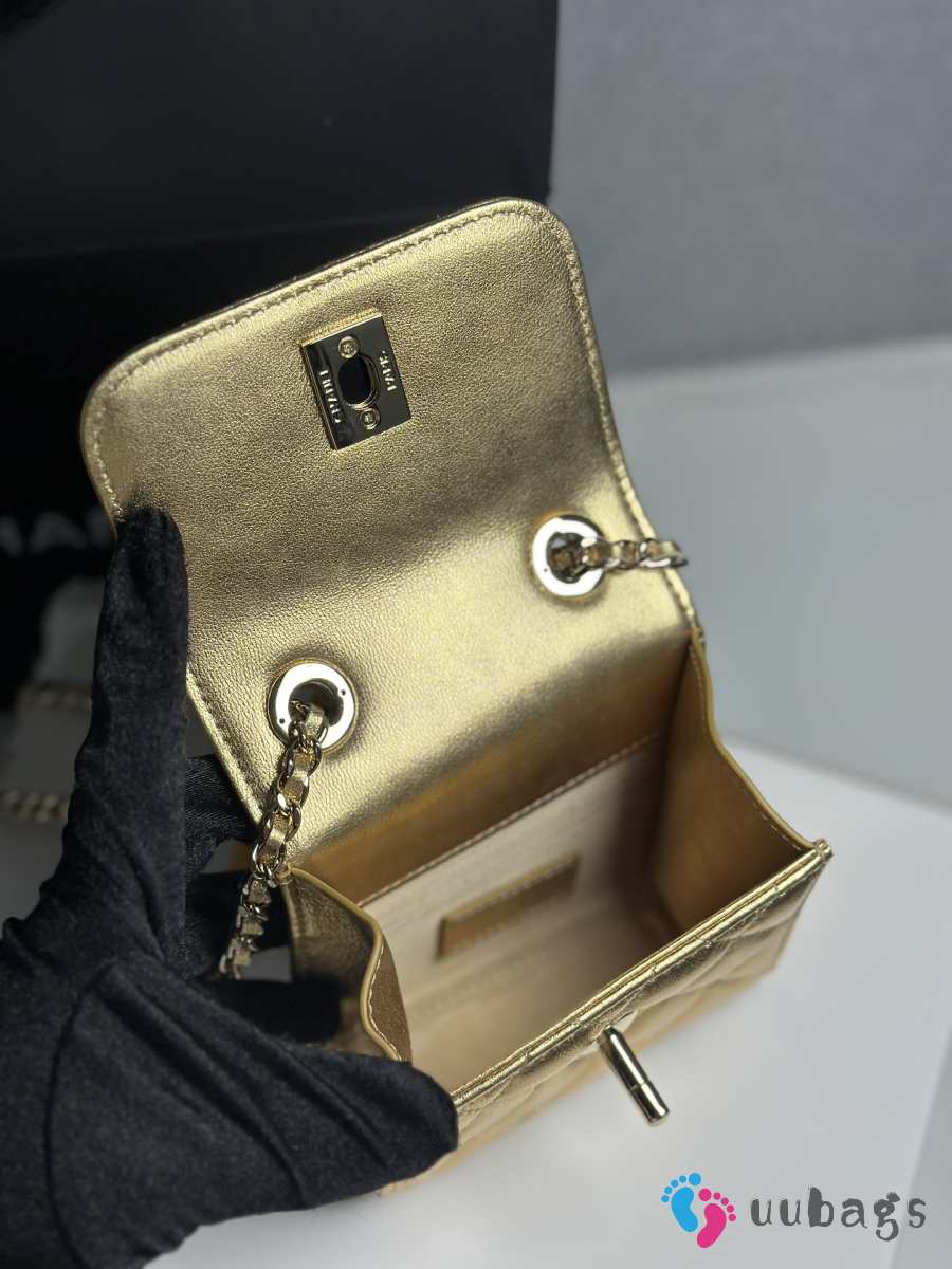 Uubags Chanel Metallic Gold Lambskin Mini CC Clutch with Chain Gold Hardware 11x5x11cm