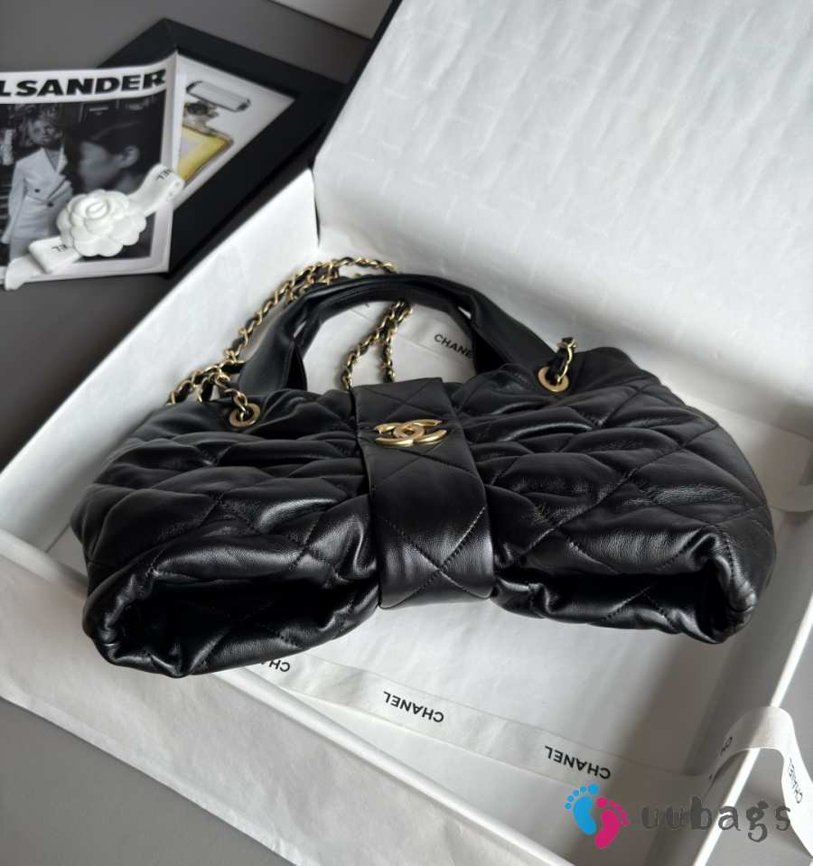 Uubags Chanel Mini Bow Bag Shiny Lambskin & Gold-Tone Metal In Black 18x26x5cm