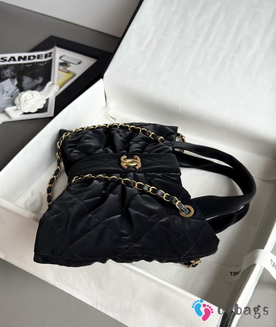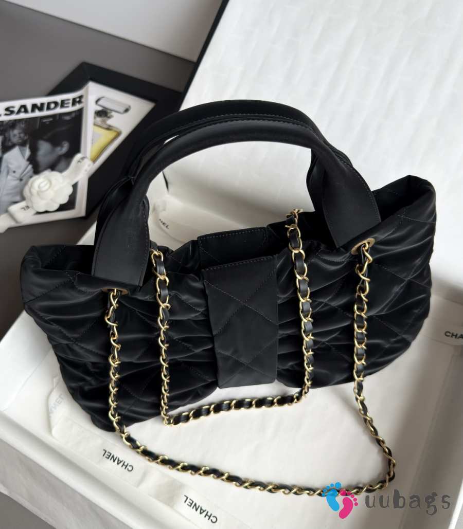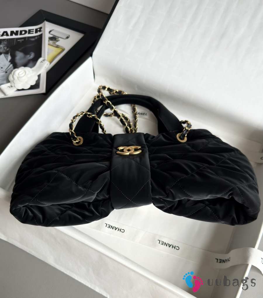 Uubags Chanel Mini Bow Bag Velvet Effect Nylon & Gold Metallic In Black 18x26x5cm