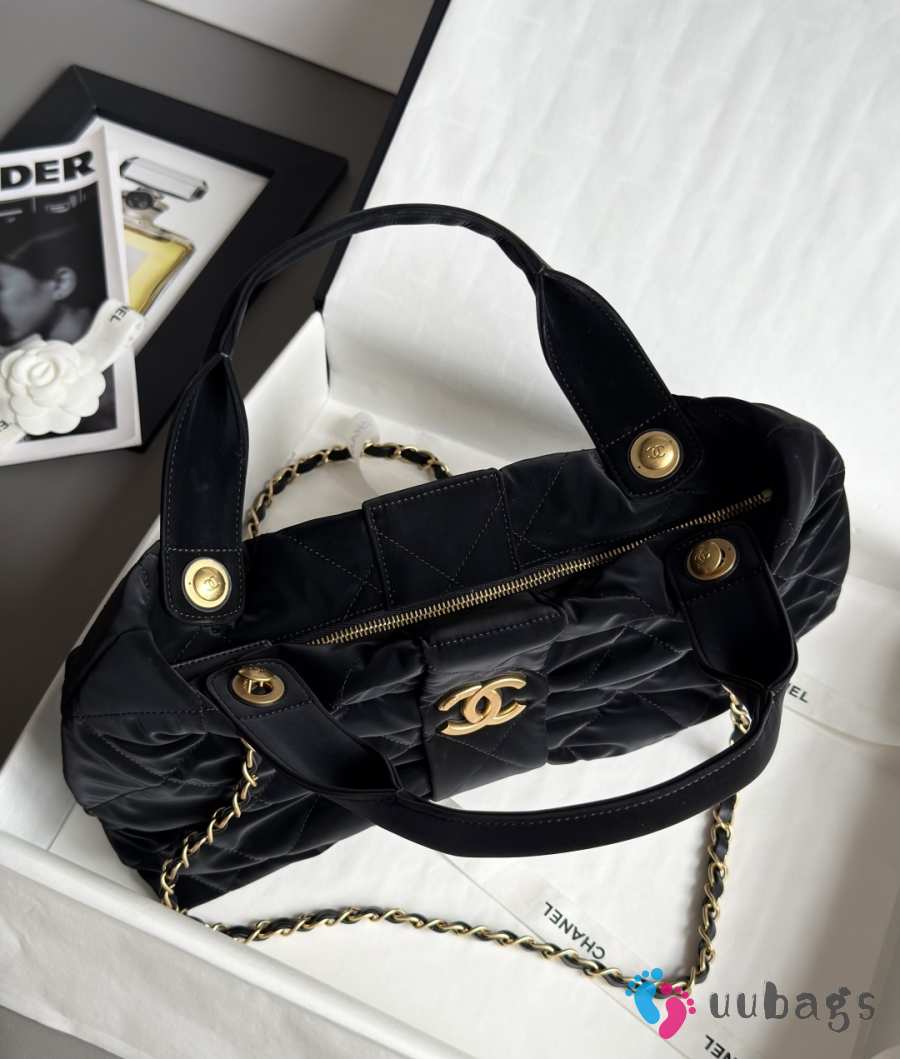 Uubags | Chanel Small Shopping Bag Shiny Lambskin & Gold Plated Metal In Black 16x21x7cm