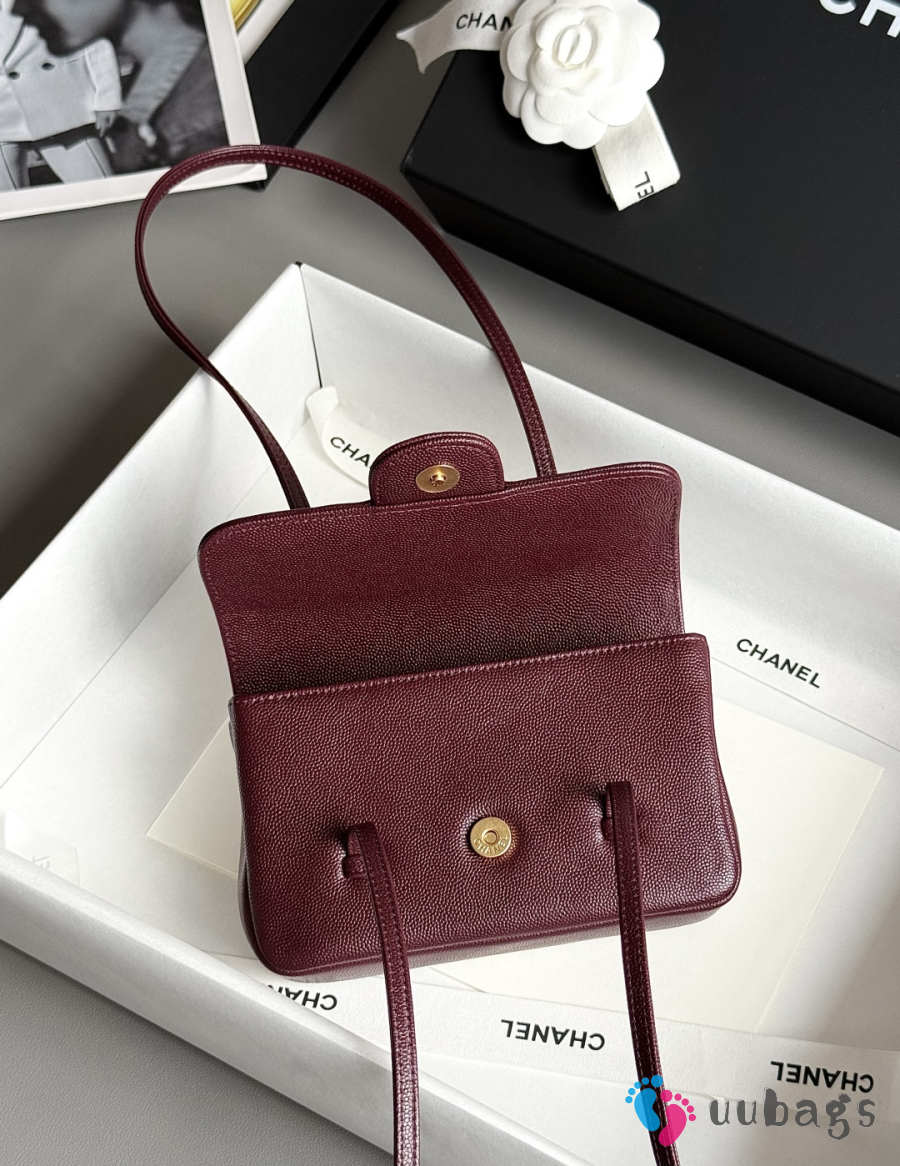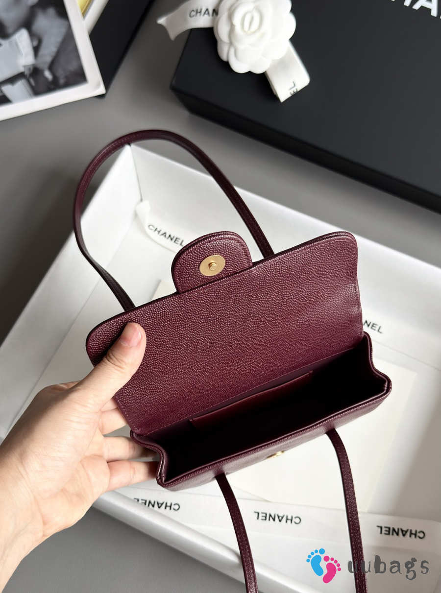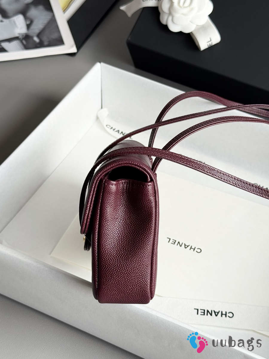 Uubags Chanel mini clutch with leather strap in burgundy 11.5x17x5cm