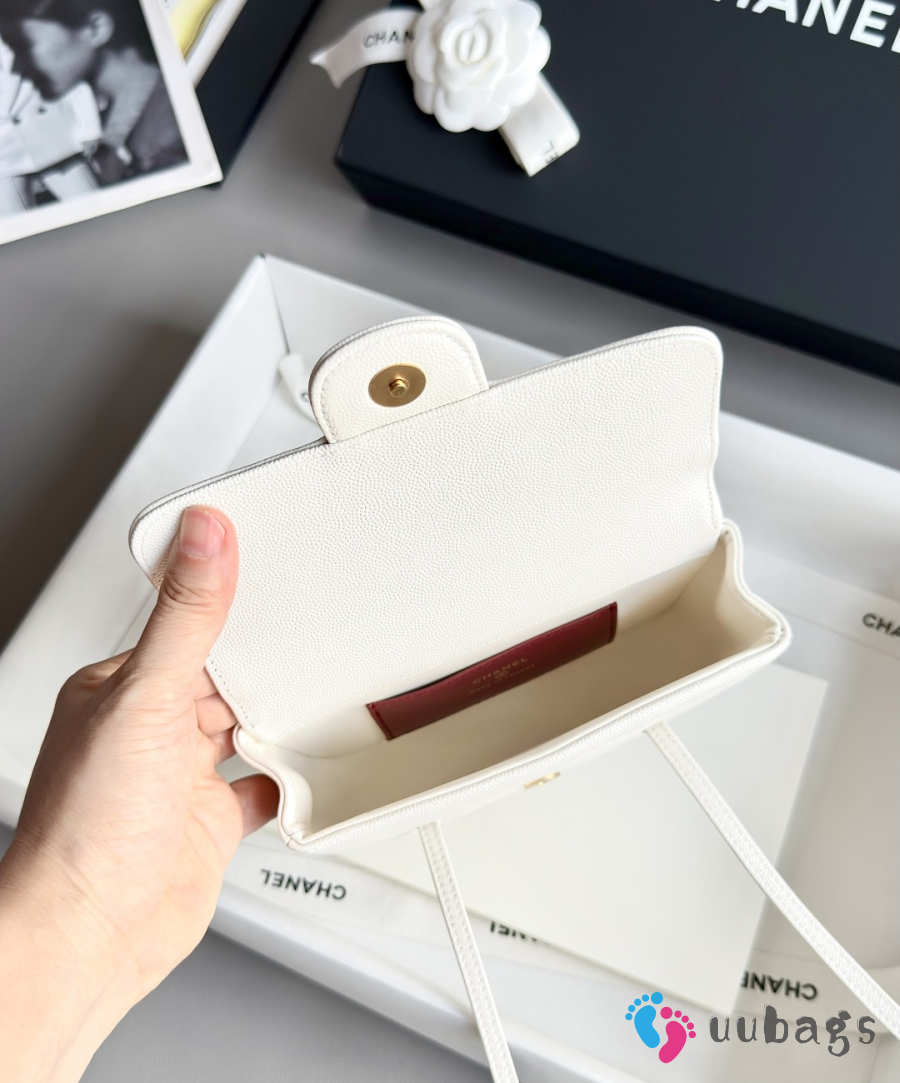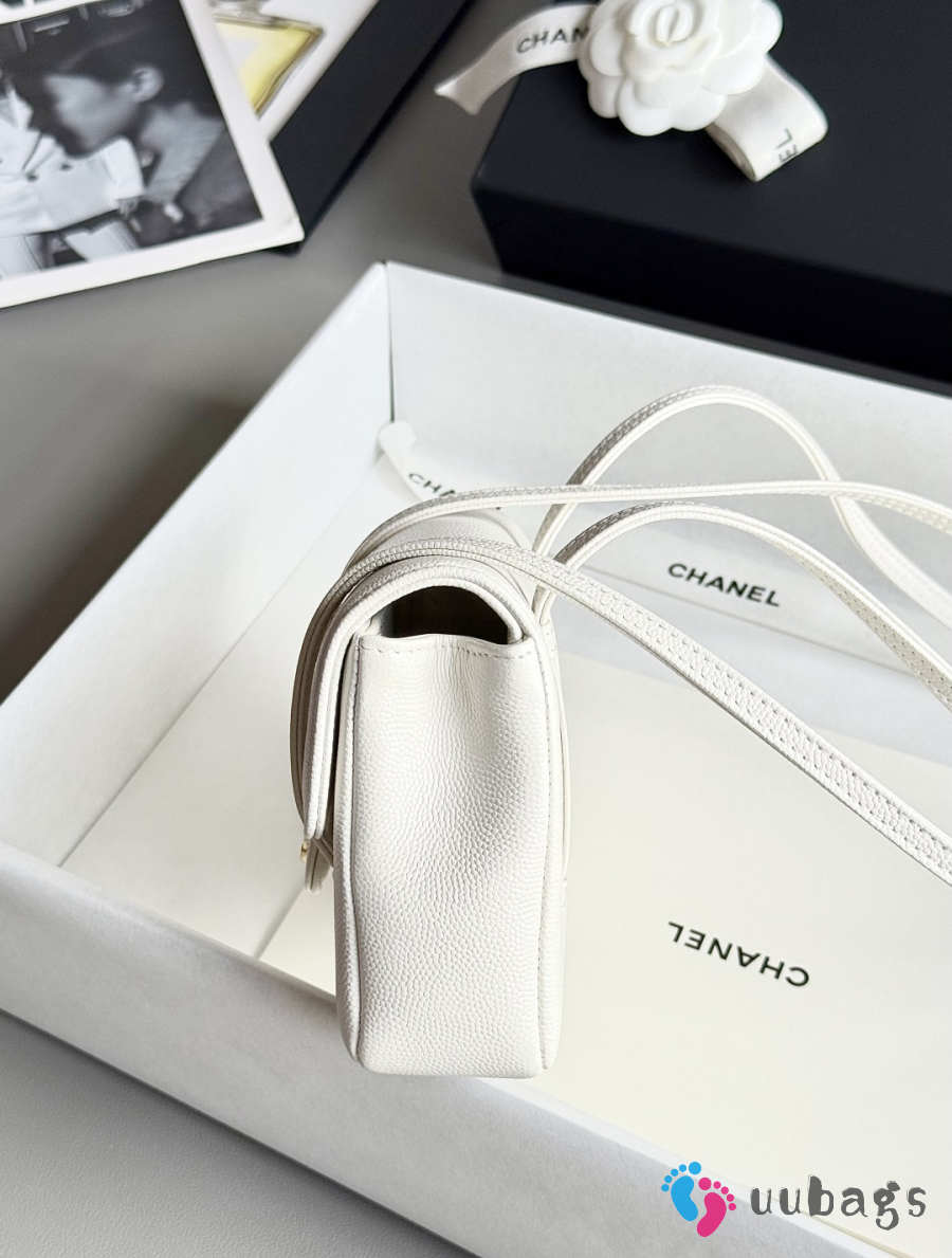 Uubags Chanel mini clutch with leather strap in white 11.5x17x5cm