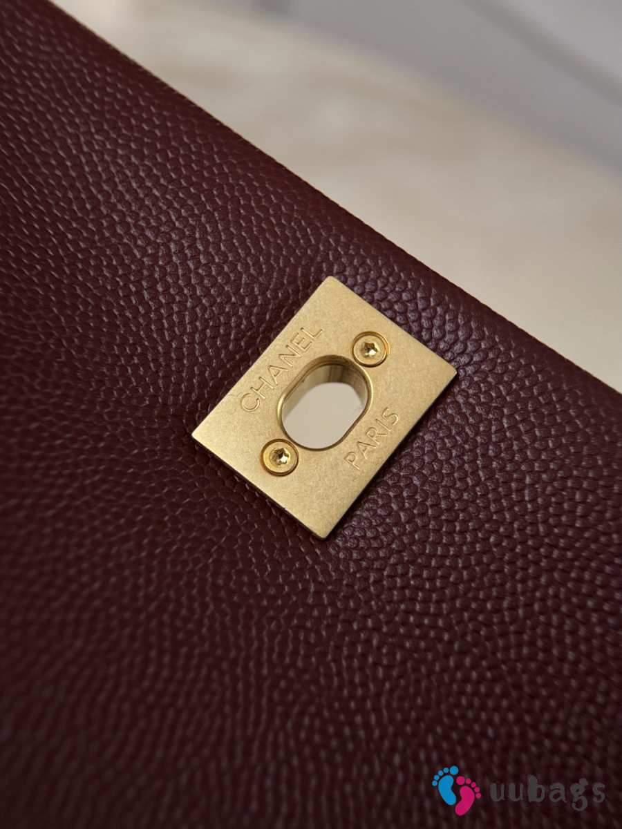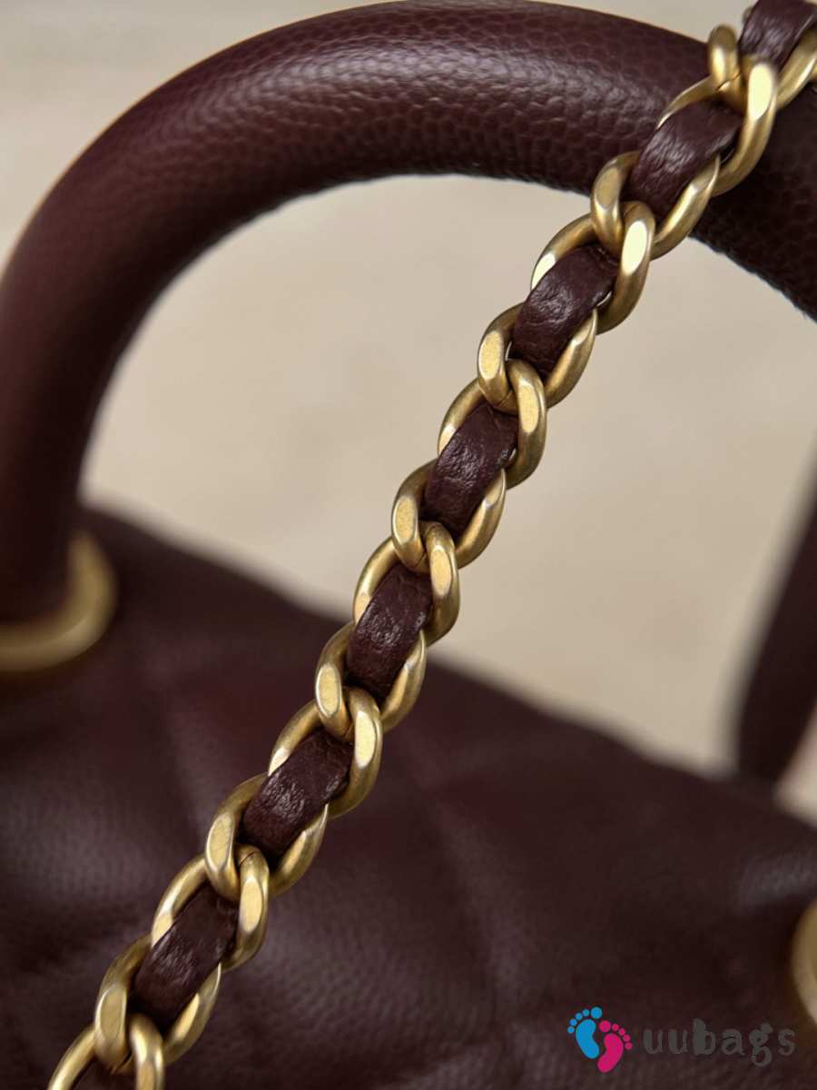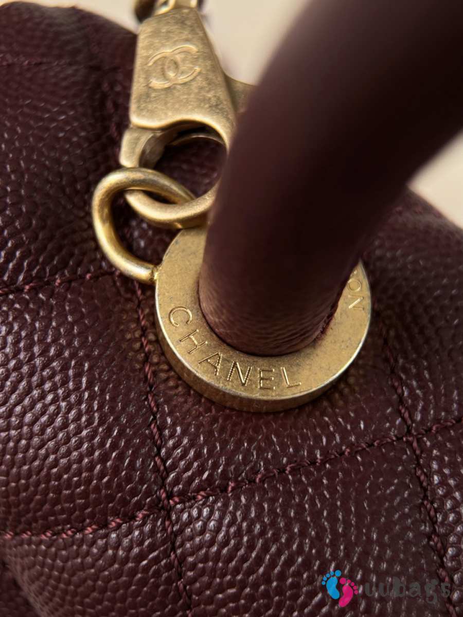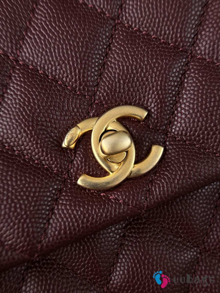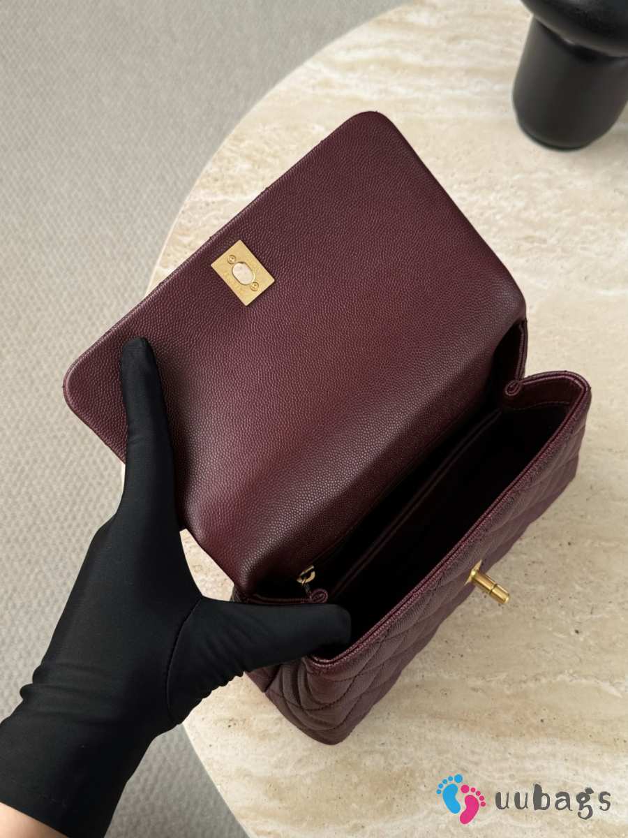 Uubags Chanel Mini Coco Handle Flap Bag Burgundy Quilted Caviar 14x24x10cm