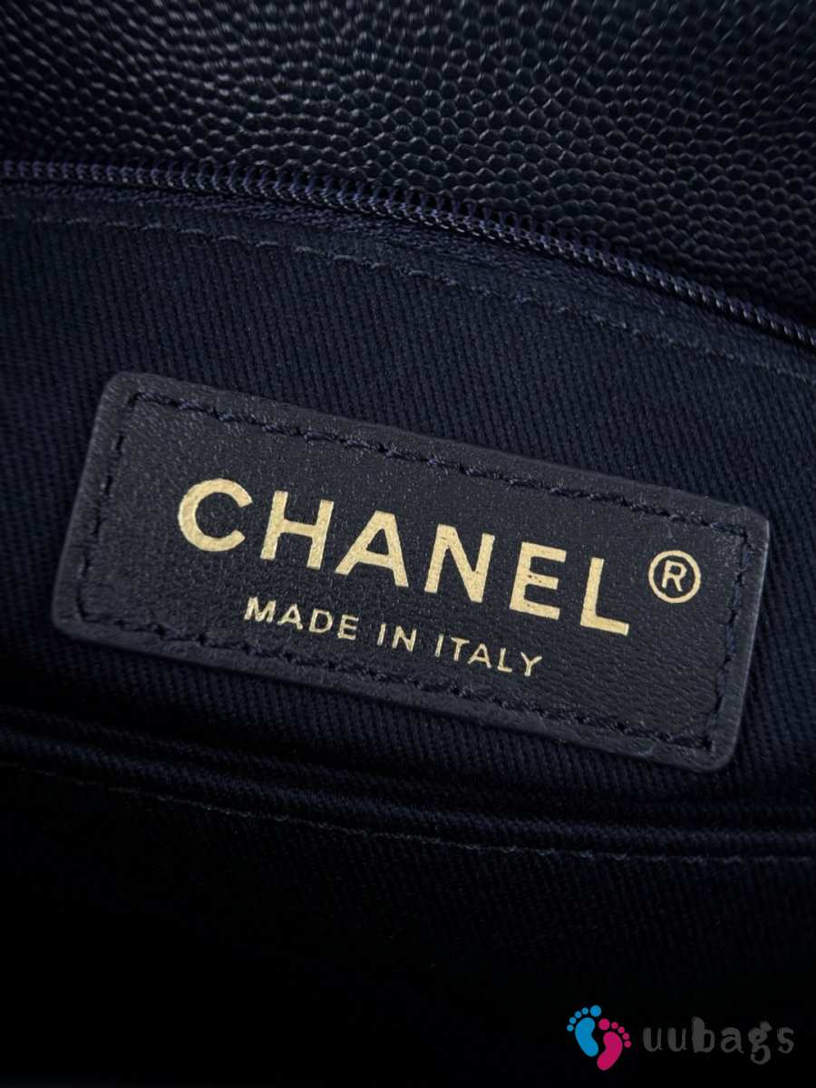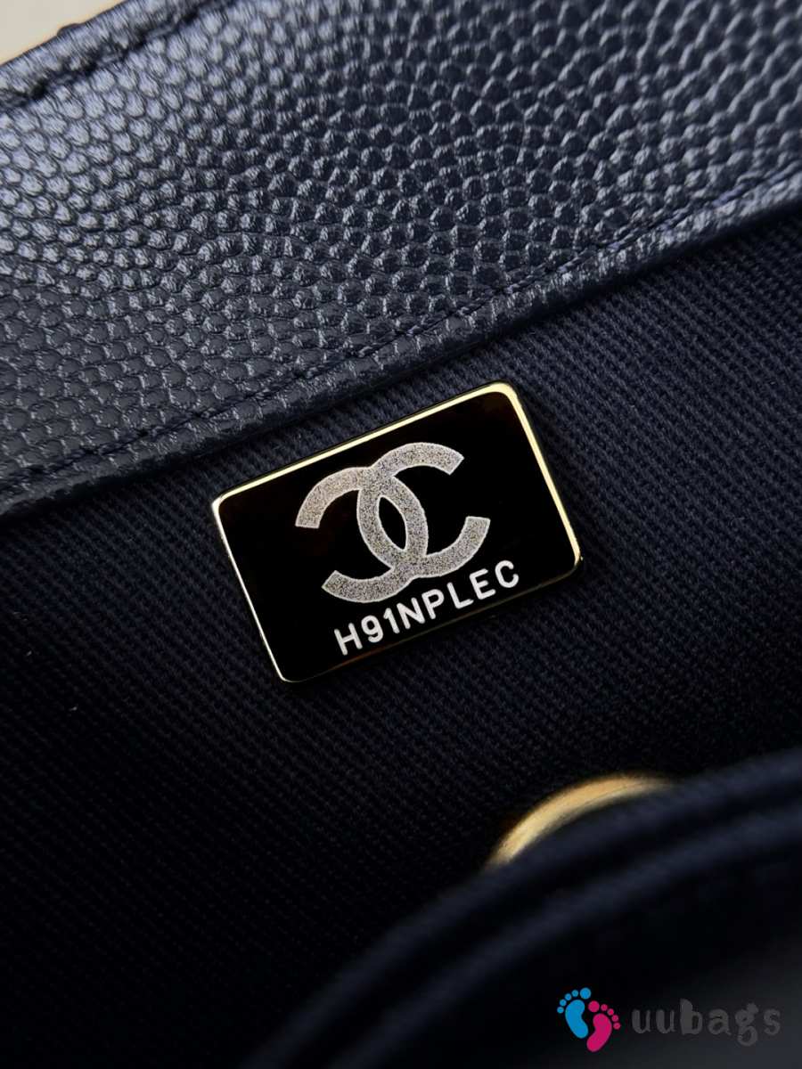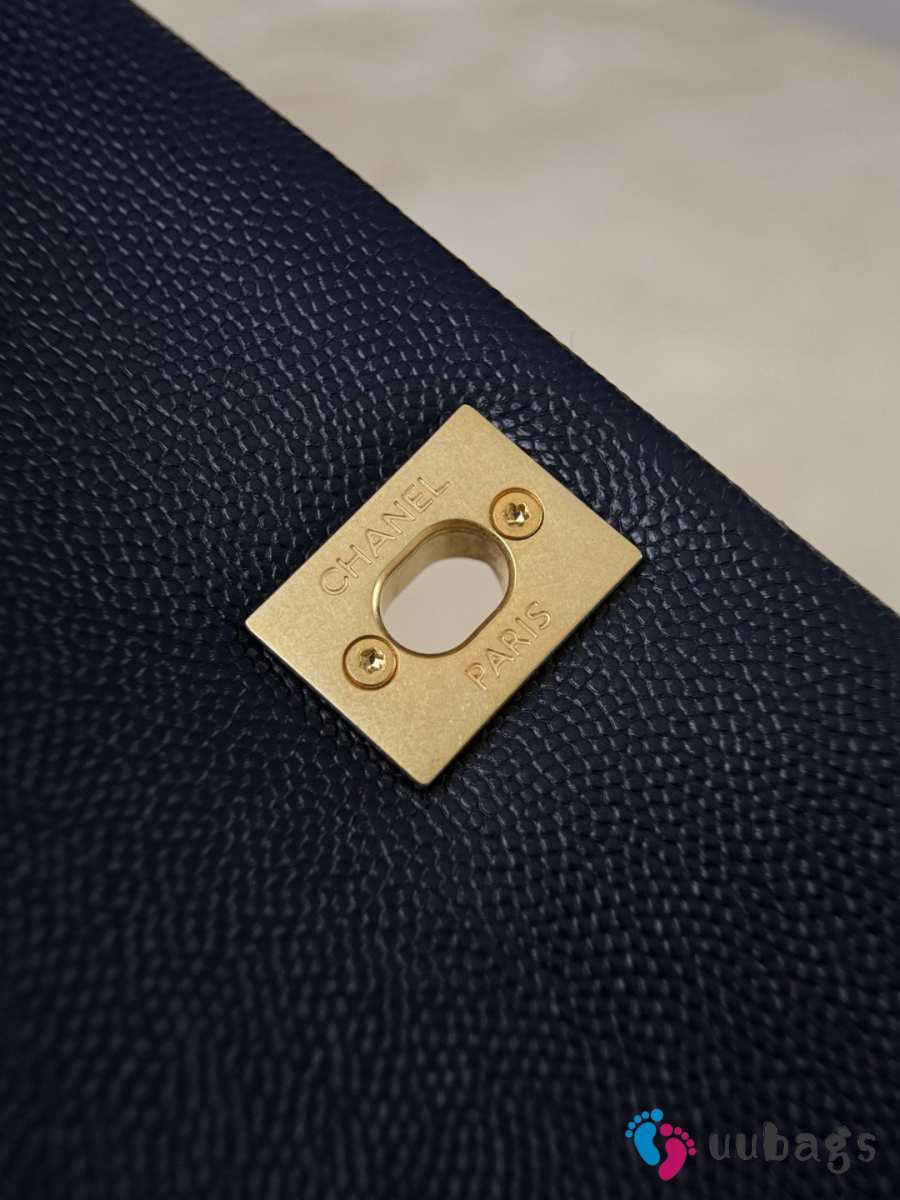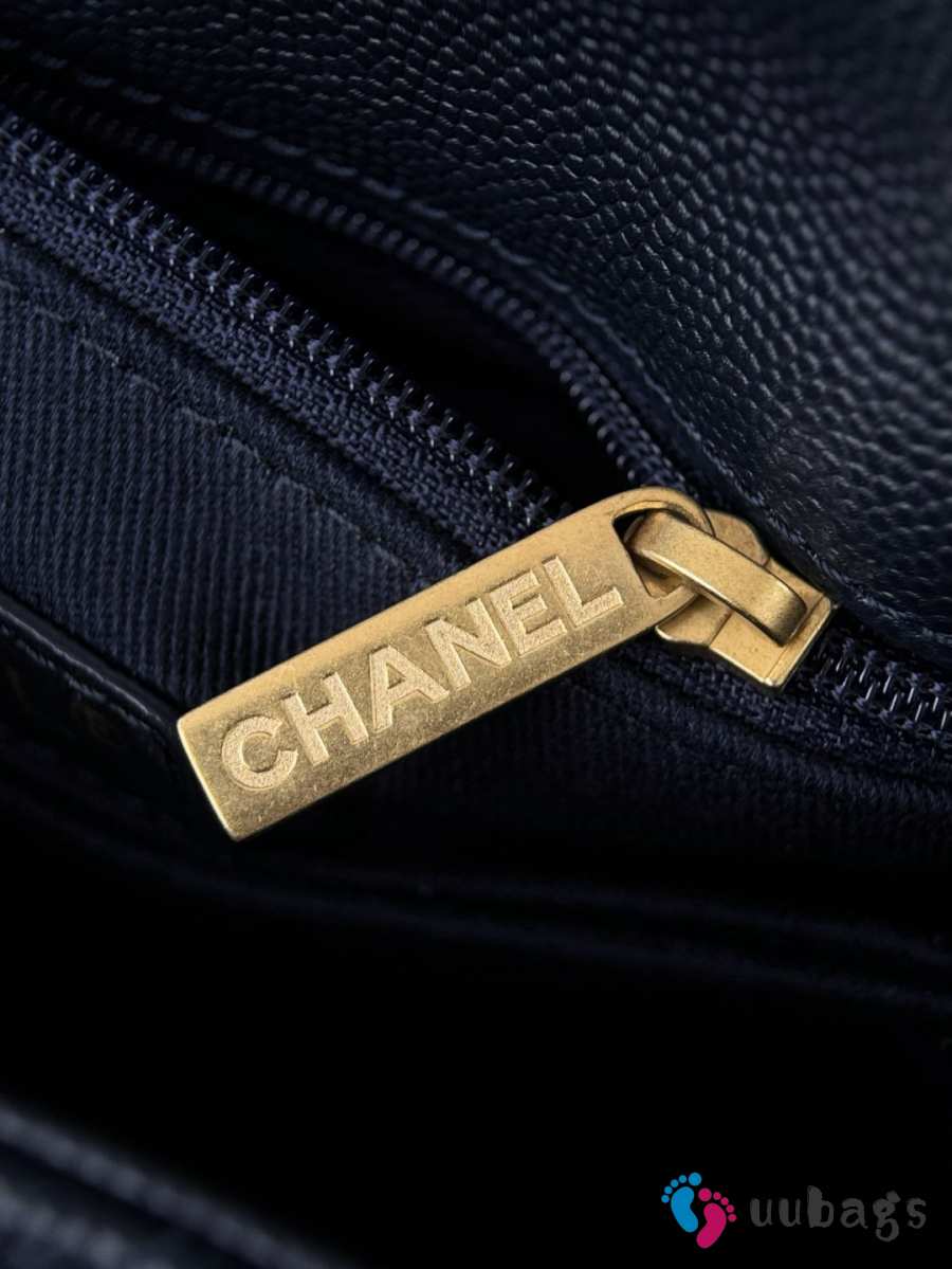 Uubags Chanel Mini Coco Handle Flap Bag Navy Blue Quilted Caviar 14x24x10cm