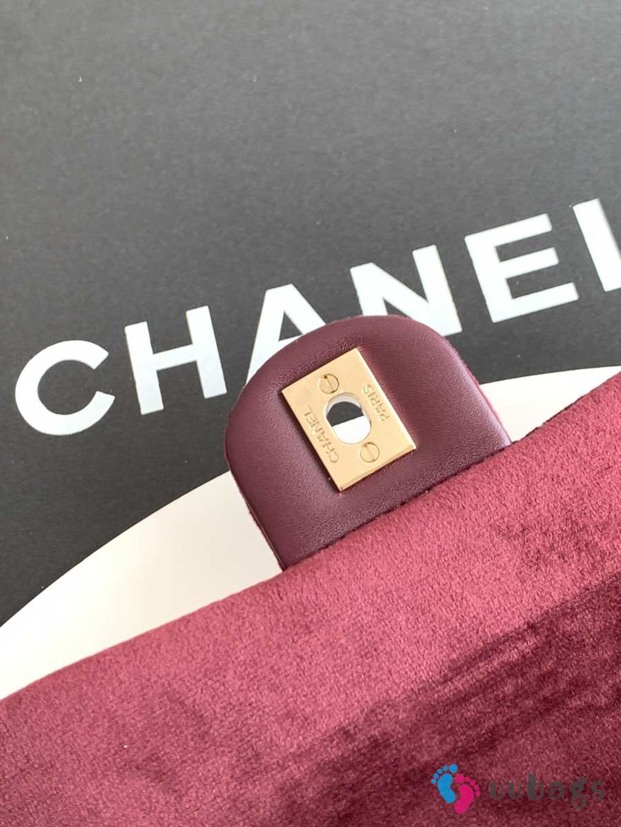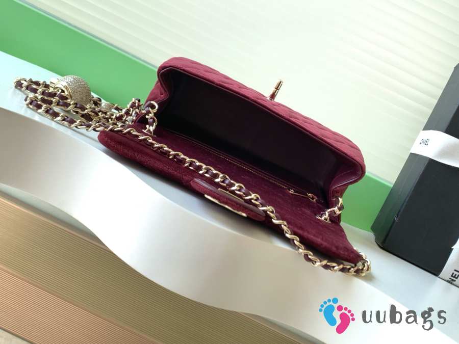 Uubags Chanel mini flap bag, velvet, diamanté & gold-tone metal, burgundy 13x20x7cm