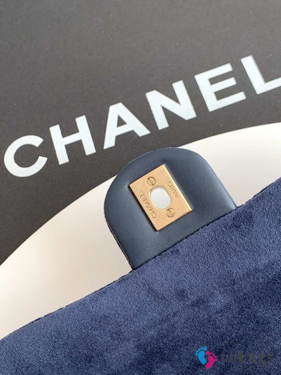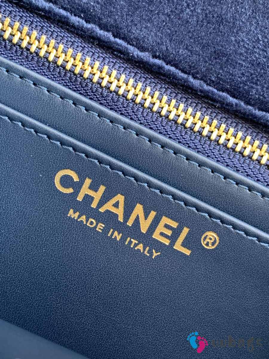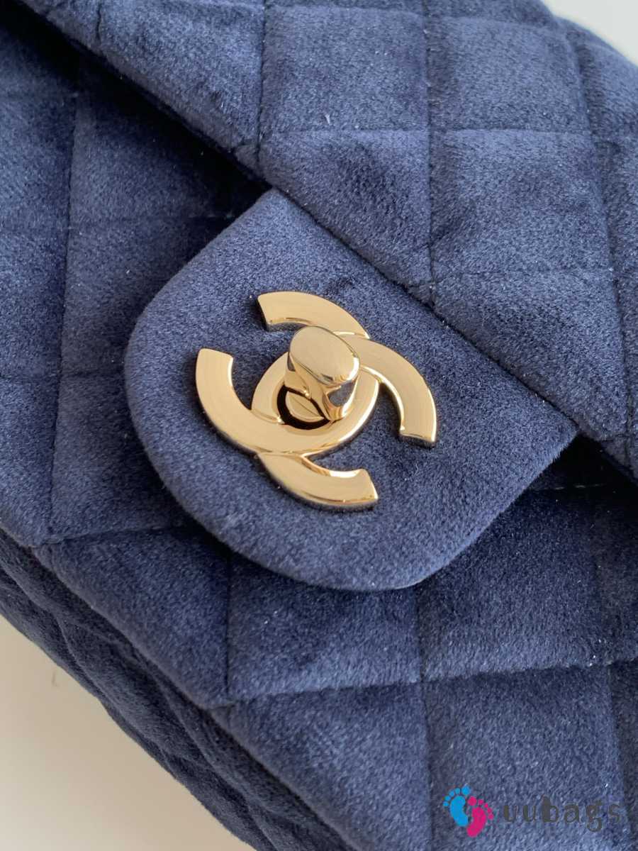 Uubags Chanel mini flap bag, velvet, diamanté & gold-tone metal, dark blue 13x20x7cm