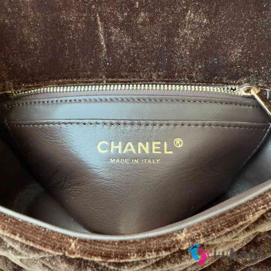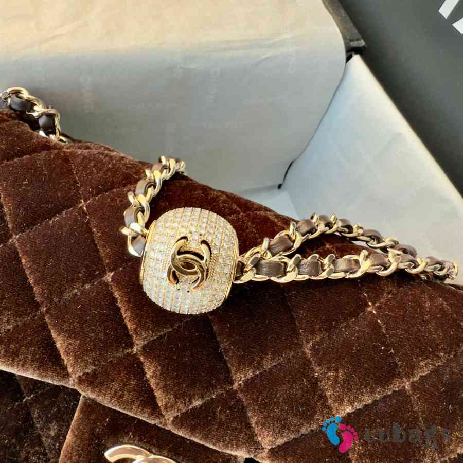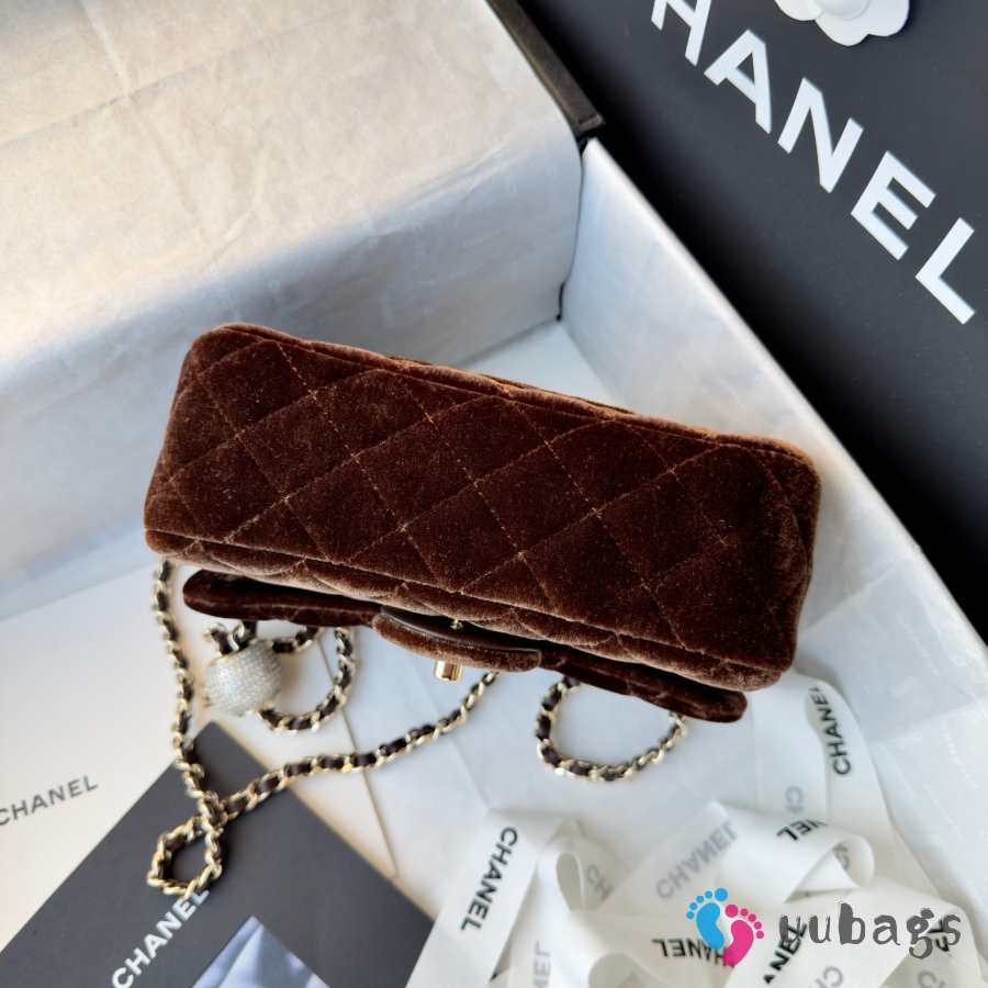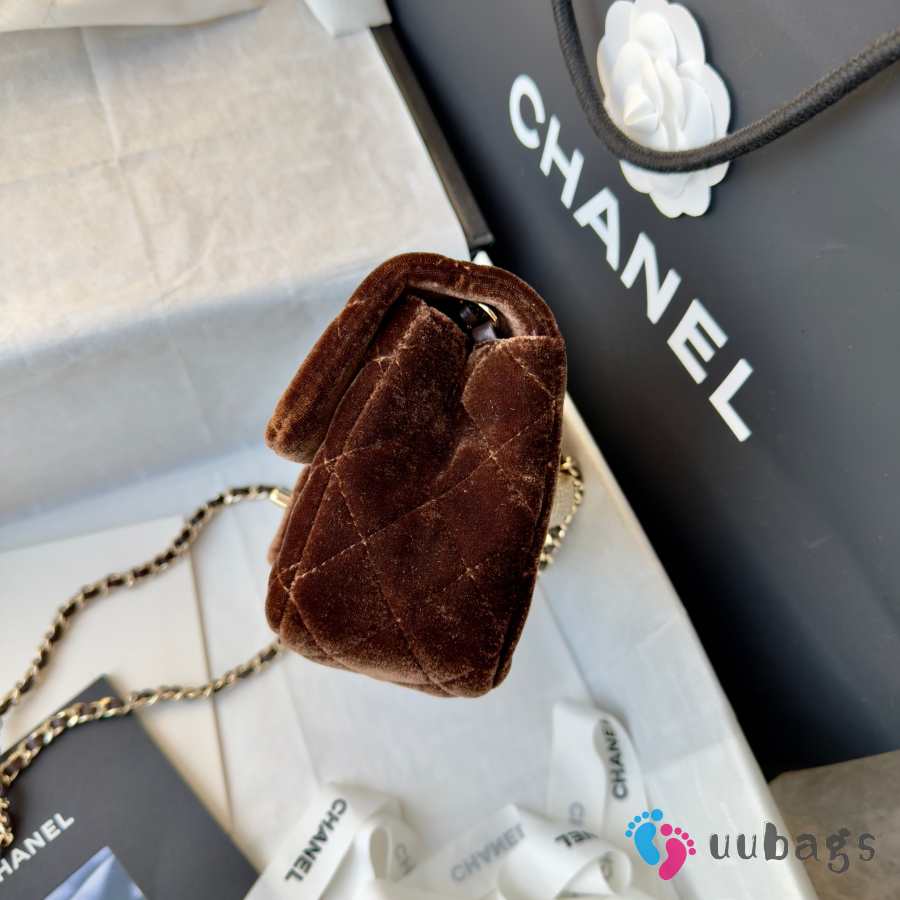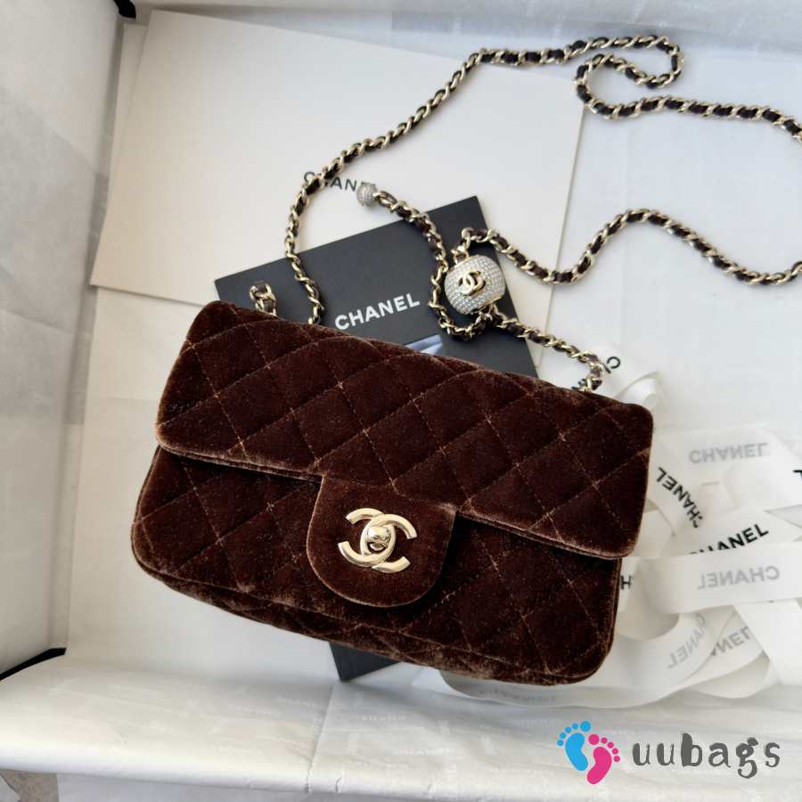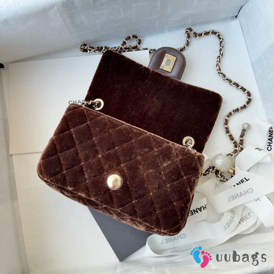 Uubags Chanel mini flap bag, velvet, diamanté & gold-tone metal, dark brown 20cm