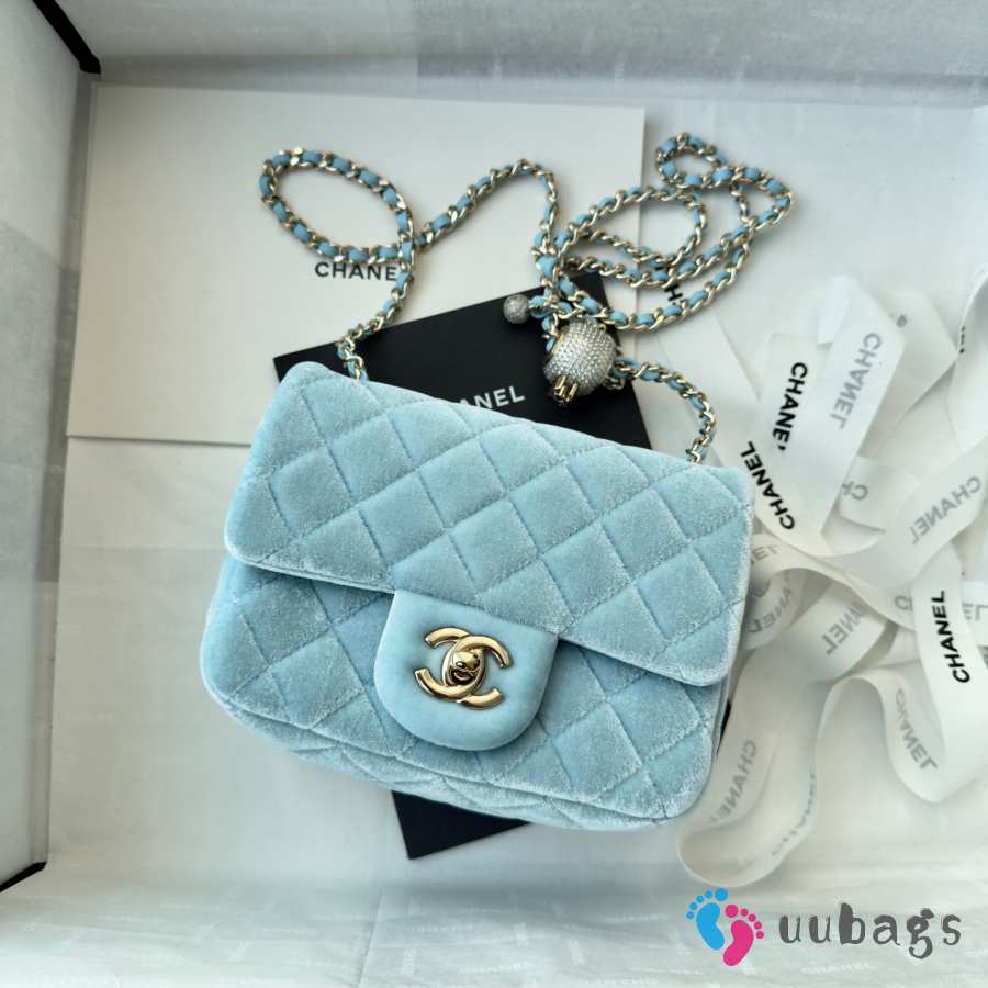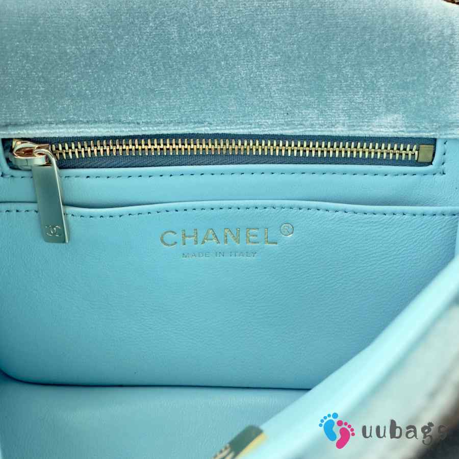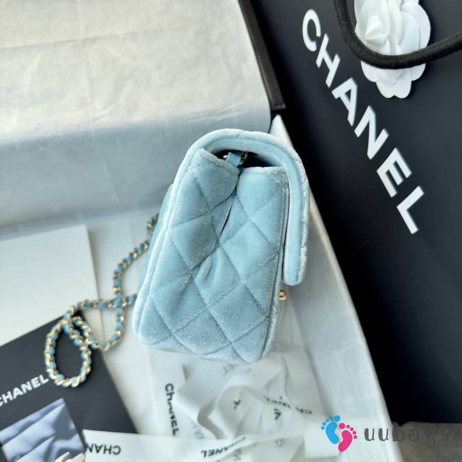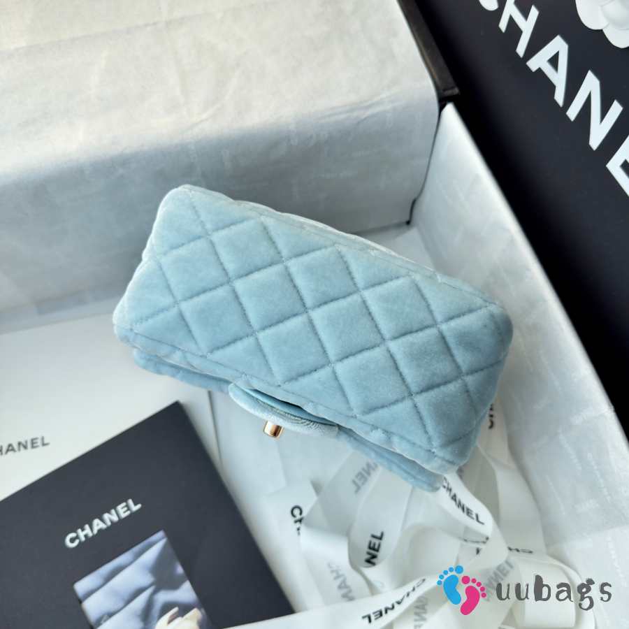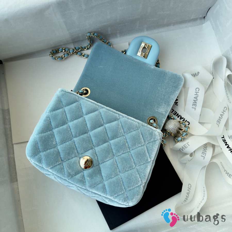 Uubags Chanel mini flap bag, velvet, diamanté & gold-tone metal, light blue 18cm