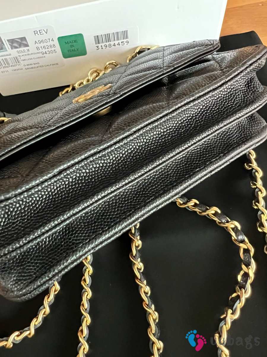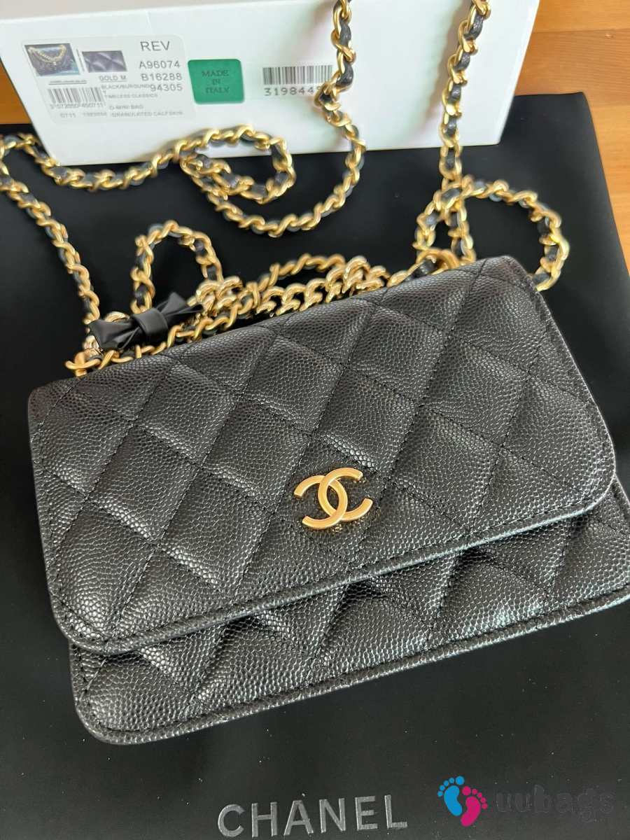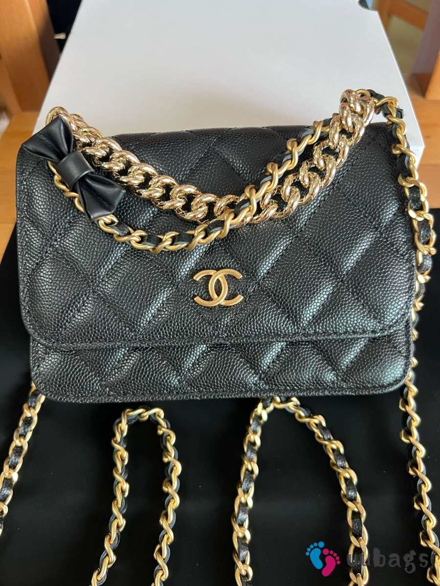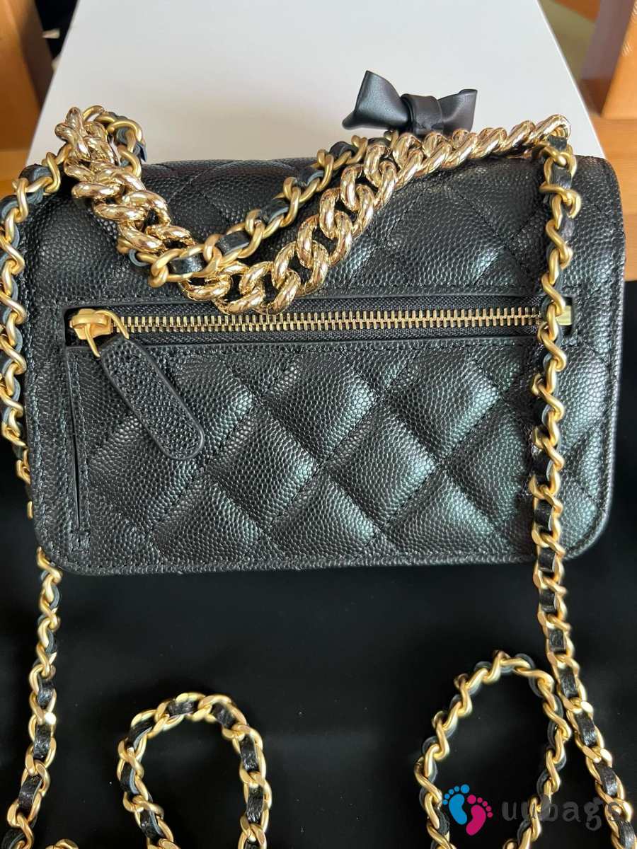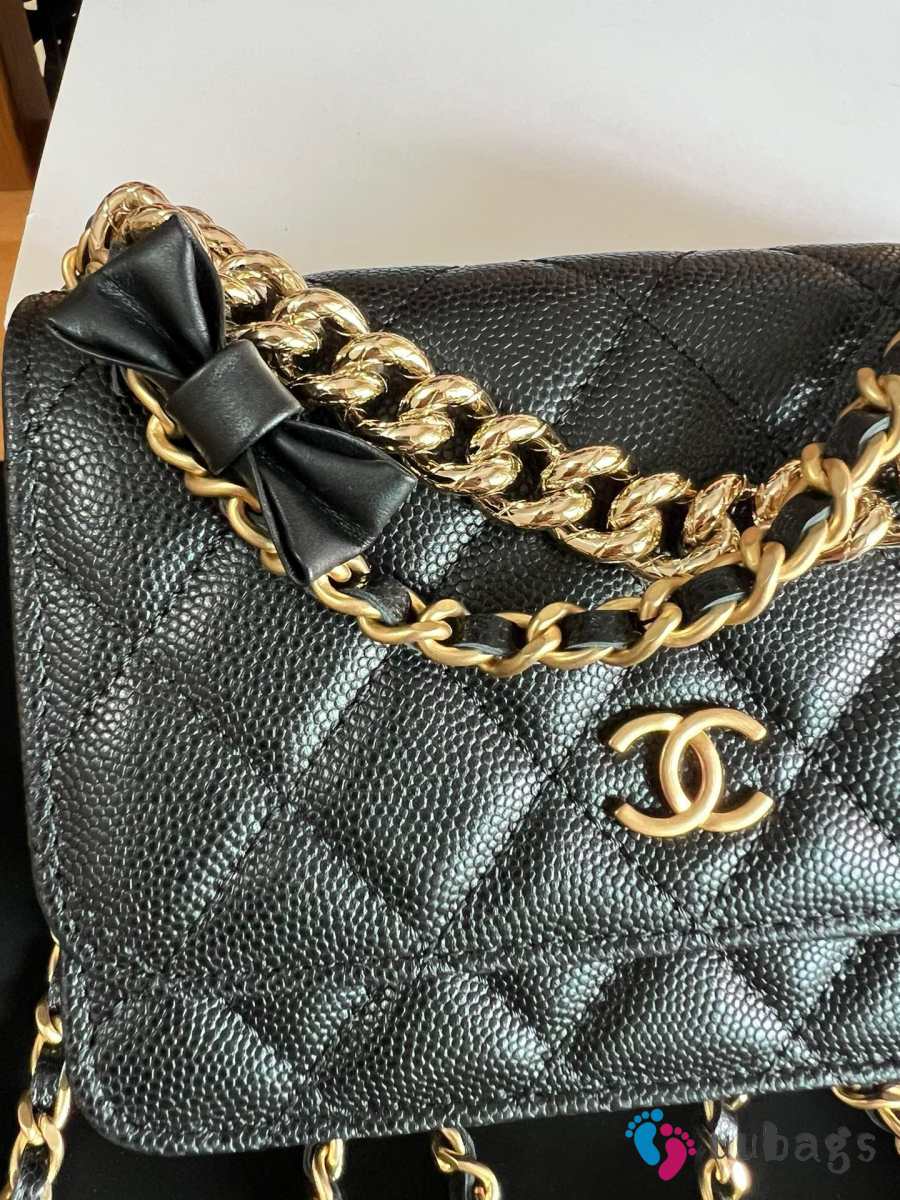 Uubags Chanel Mini Flap Bag with Bow In Black Caviar Leather 17x12x4cm