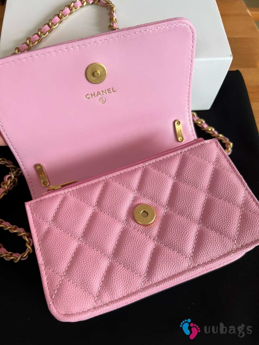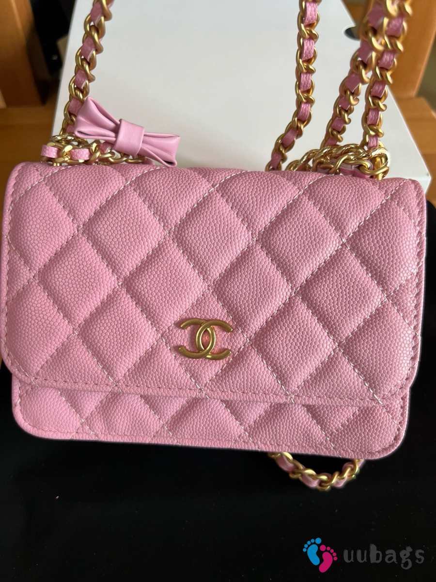 Uubags Chanel Mini Flap Bag with Bow In Pink Caviar Leather 17x12x4cm