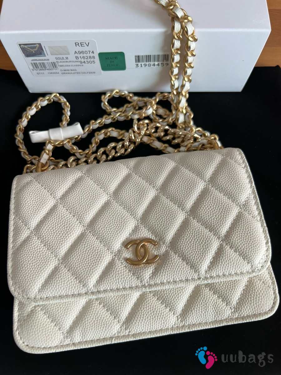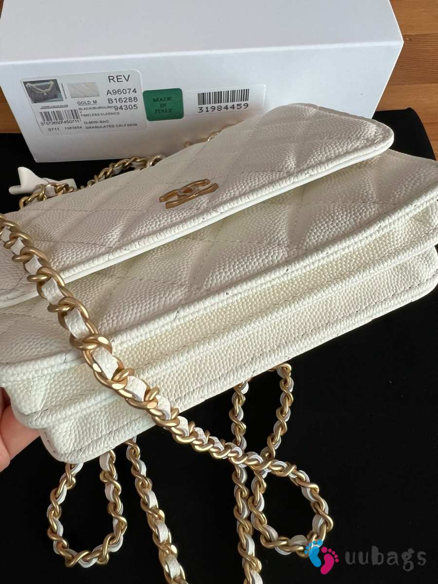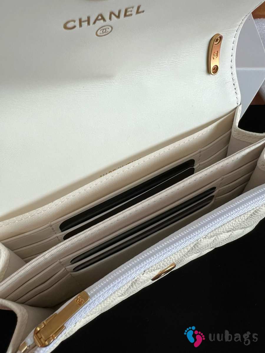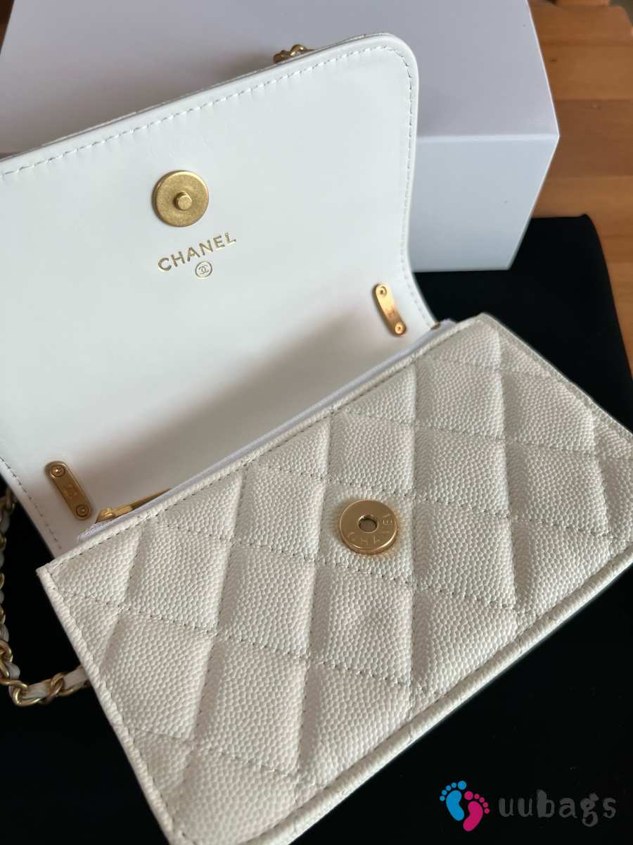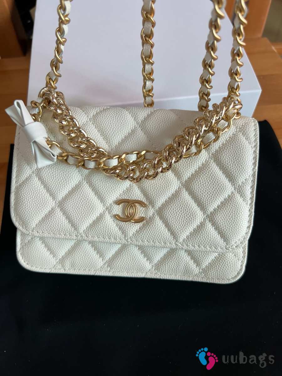 Uubags Chanel Mini Flap Bag with Bow In White Caviar Leather 17x12x4cm