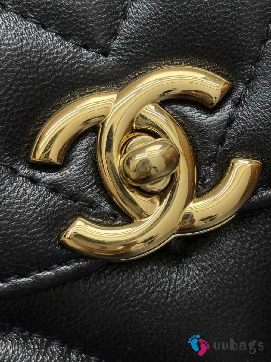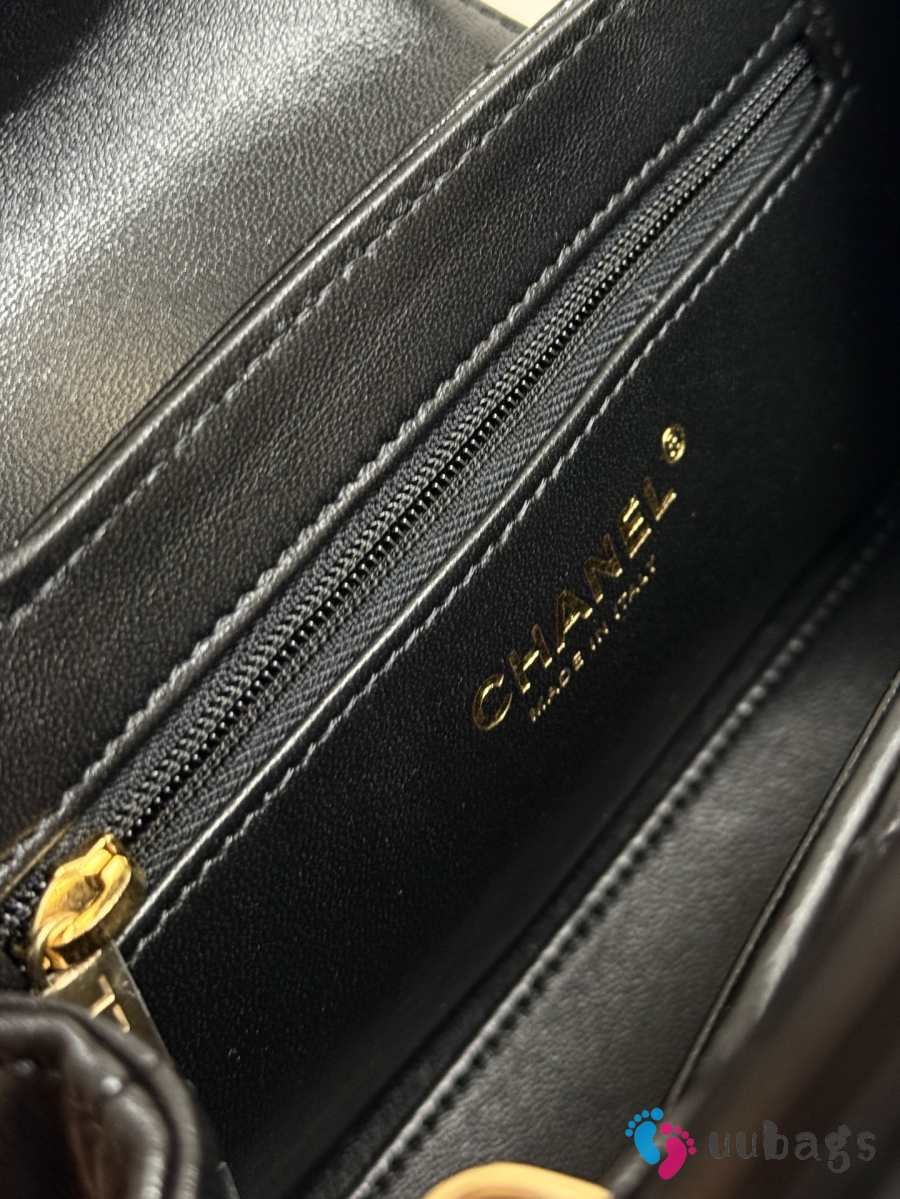 Uubags Chanel Mini shopping bag glossy sheepskin & gold-plated metal in black 13x19x7cm