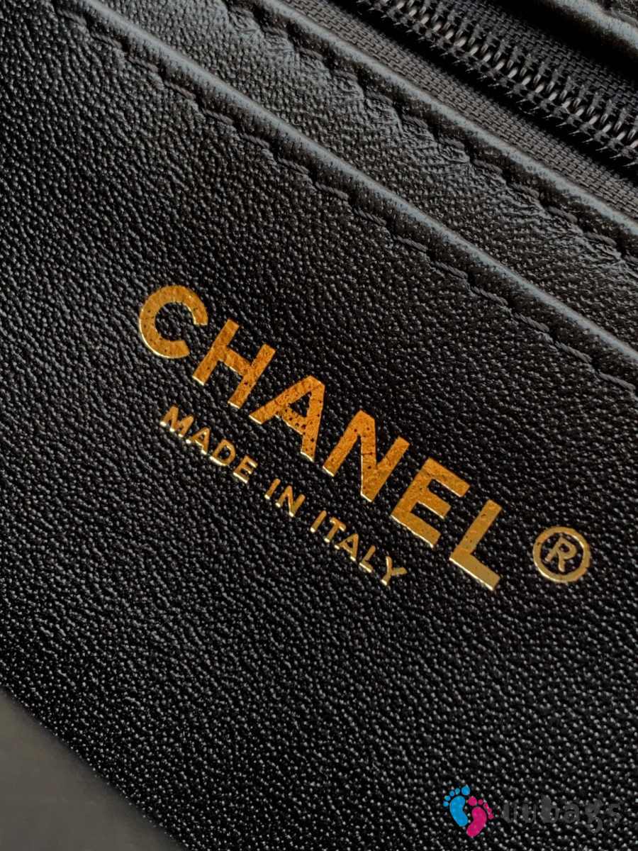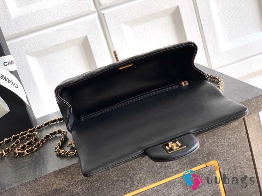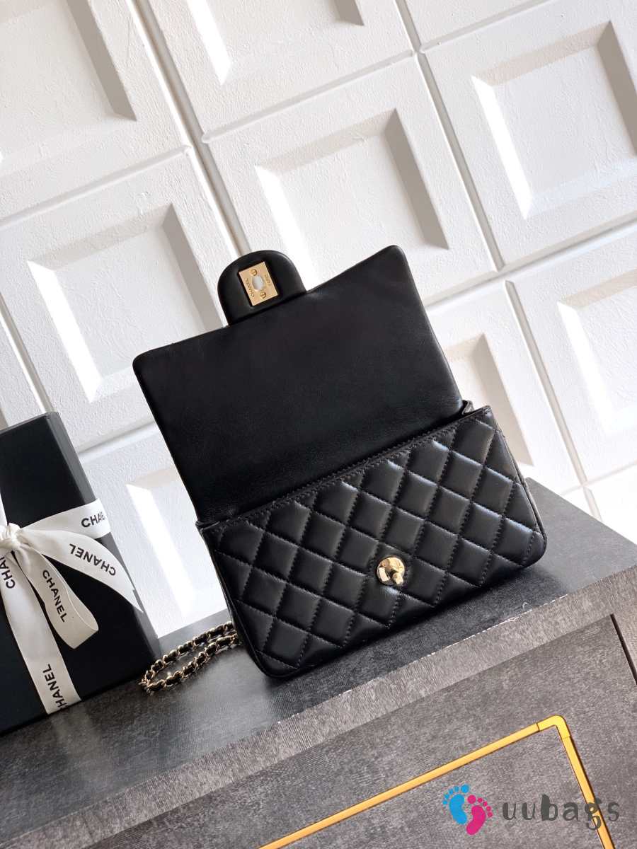 Uubags Chanel Mini Top Handle Flap Bag with Bow Charm Black Quilted Leather & Gold-Tone Metal 20x13x9cm
