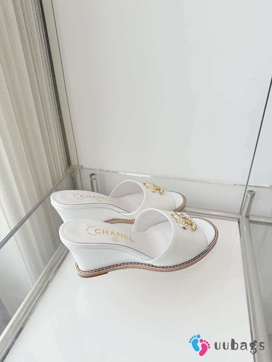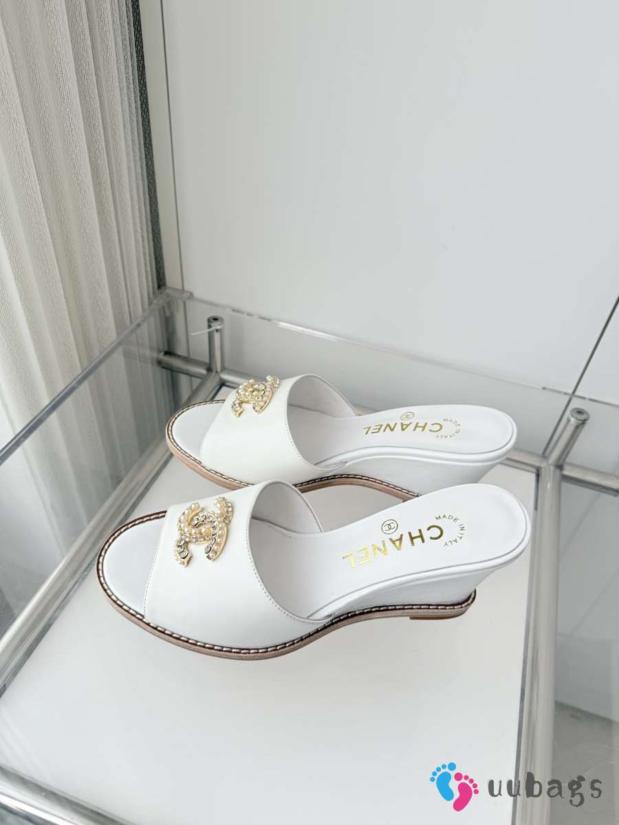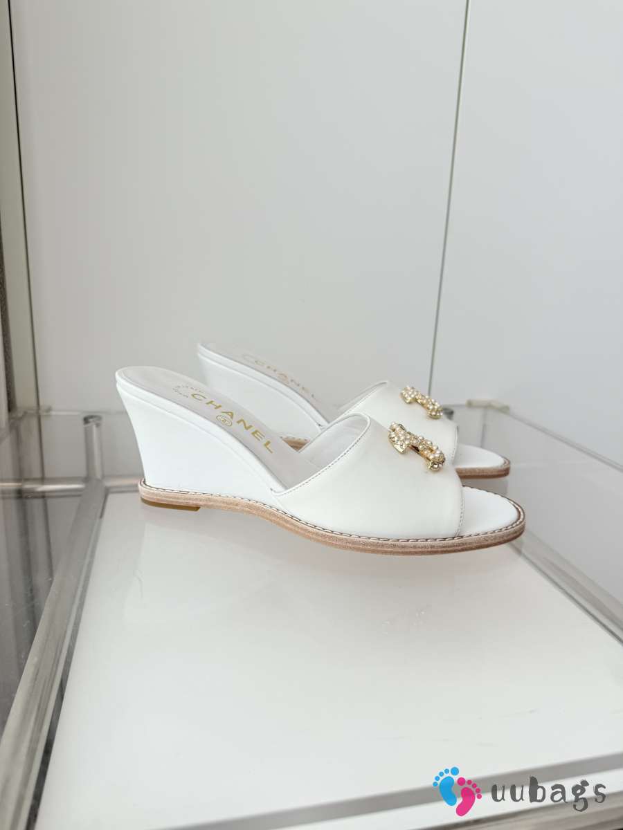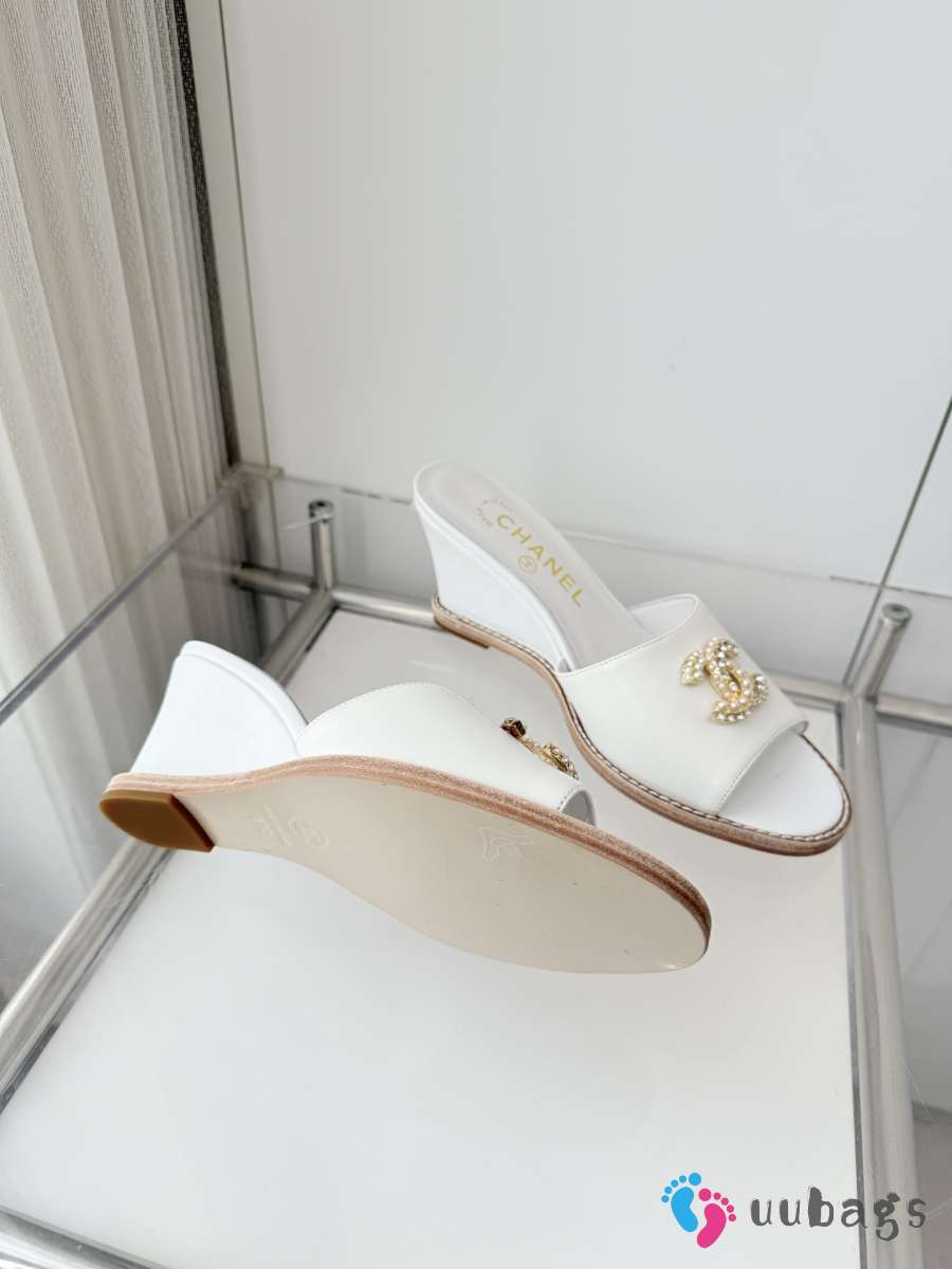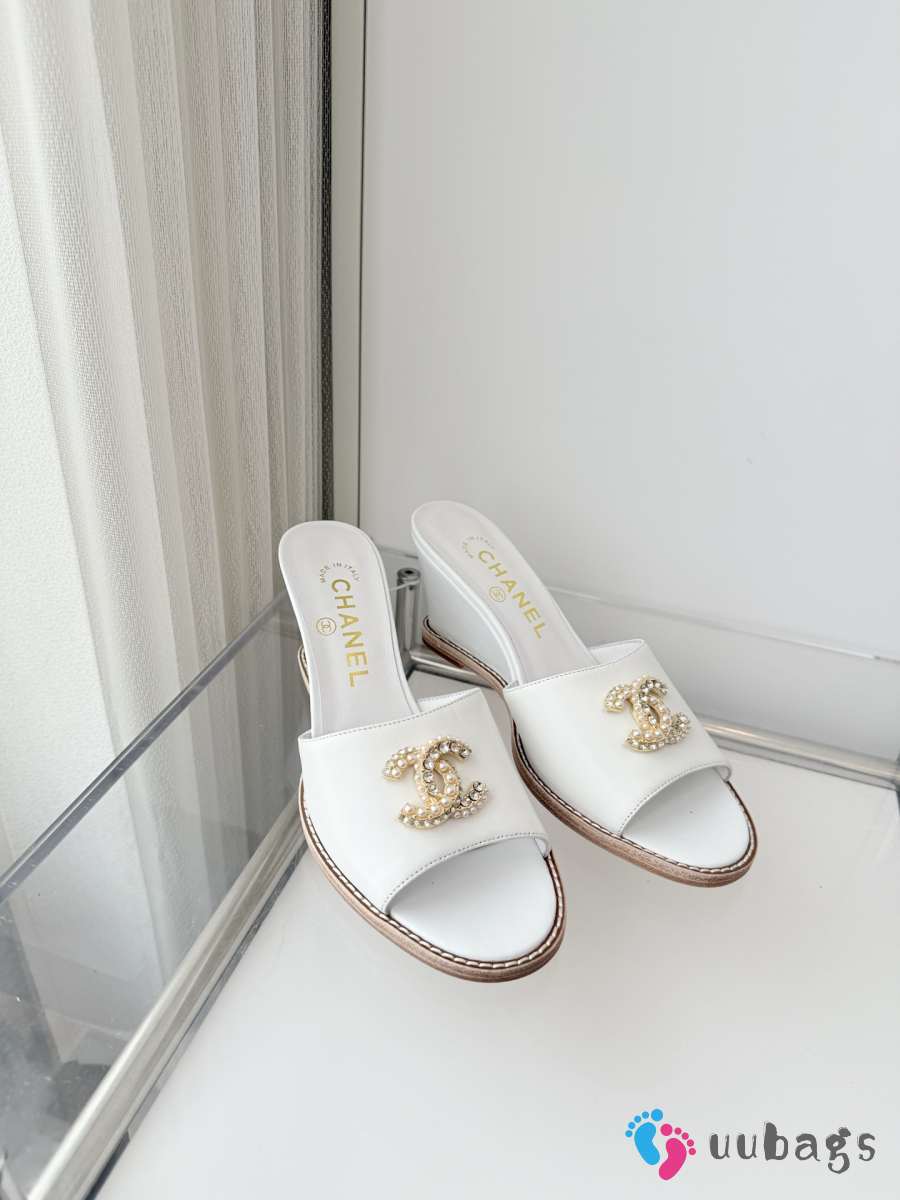 Uubags Chanel mules in shiny calfskin & imitation pearls white 8.5cm