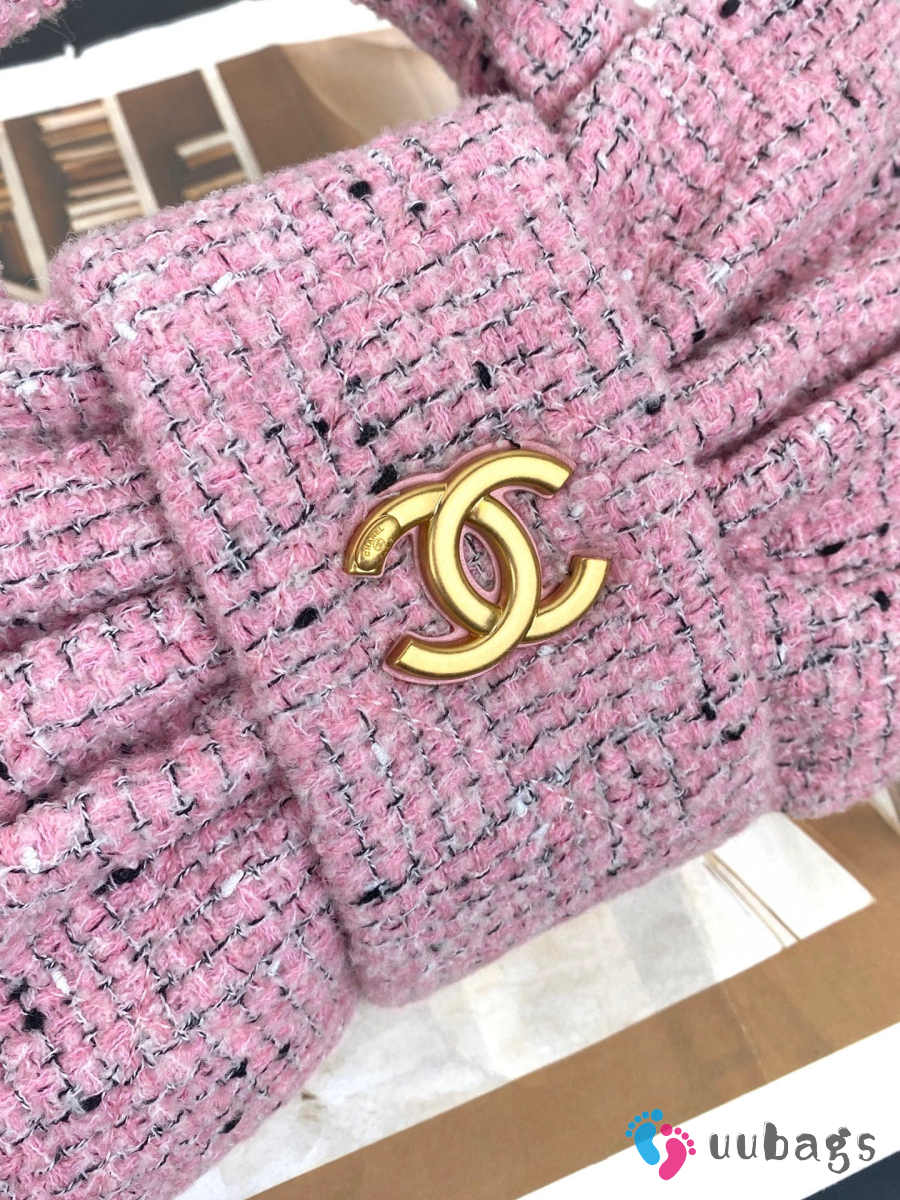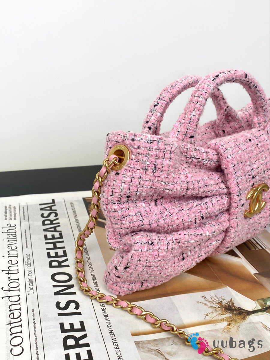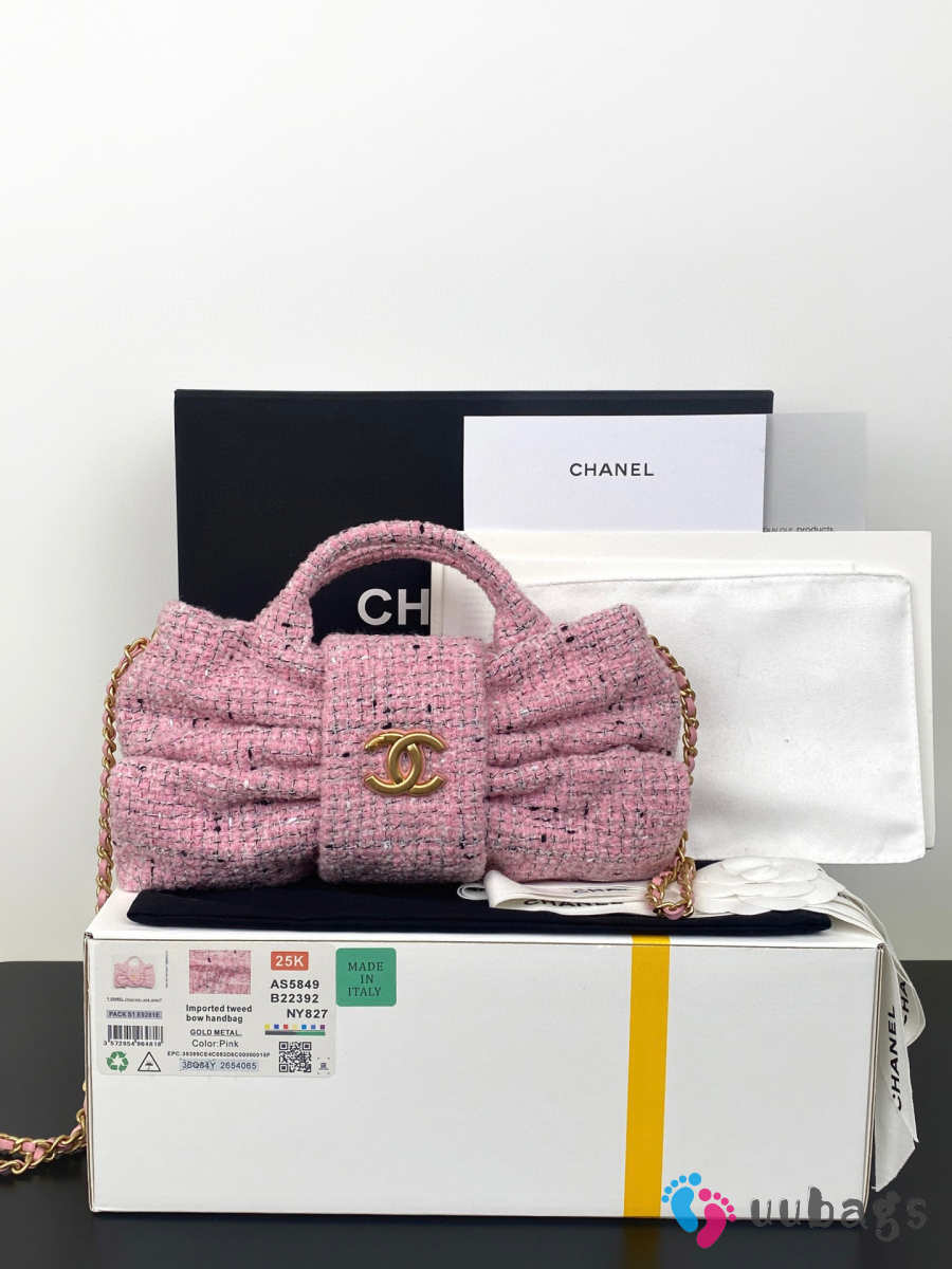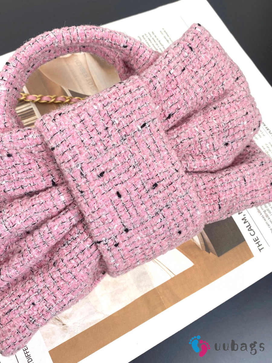 Uubags Chanel nano bow bag tweed fabric & gold-plated metal in pink, black & white 16x3x13cm