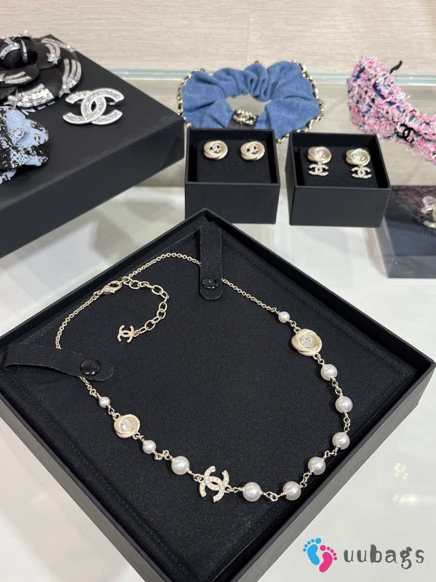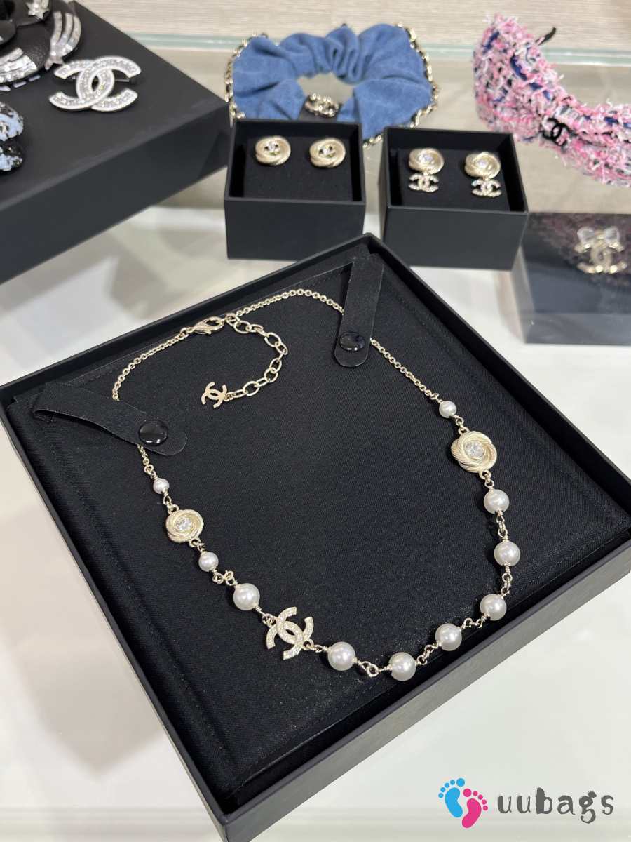 Uubags Chanel Pave CC & Camellia Flower Gold & Pearl Choker