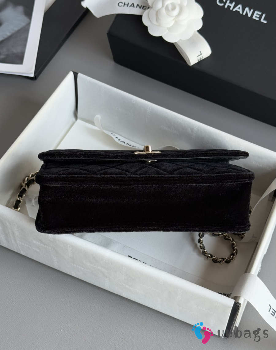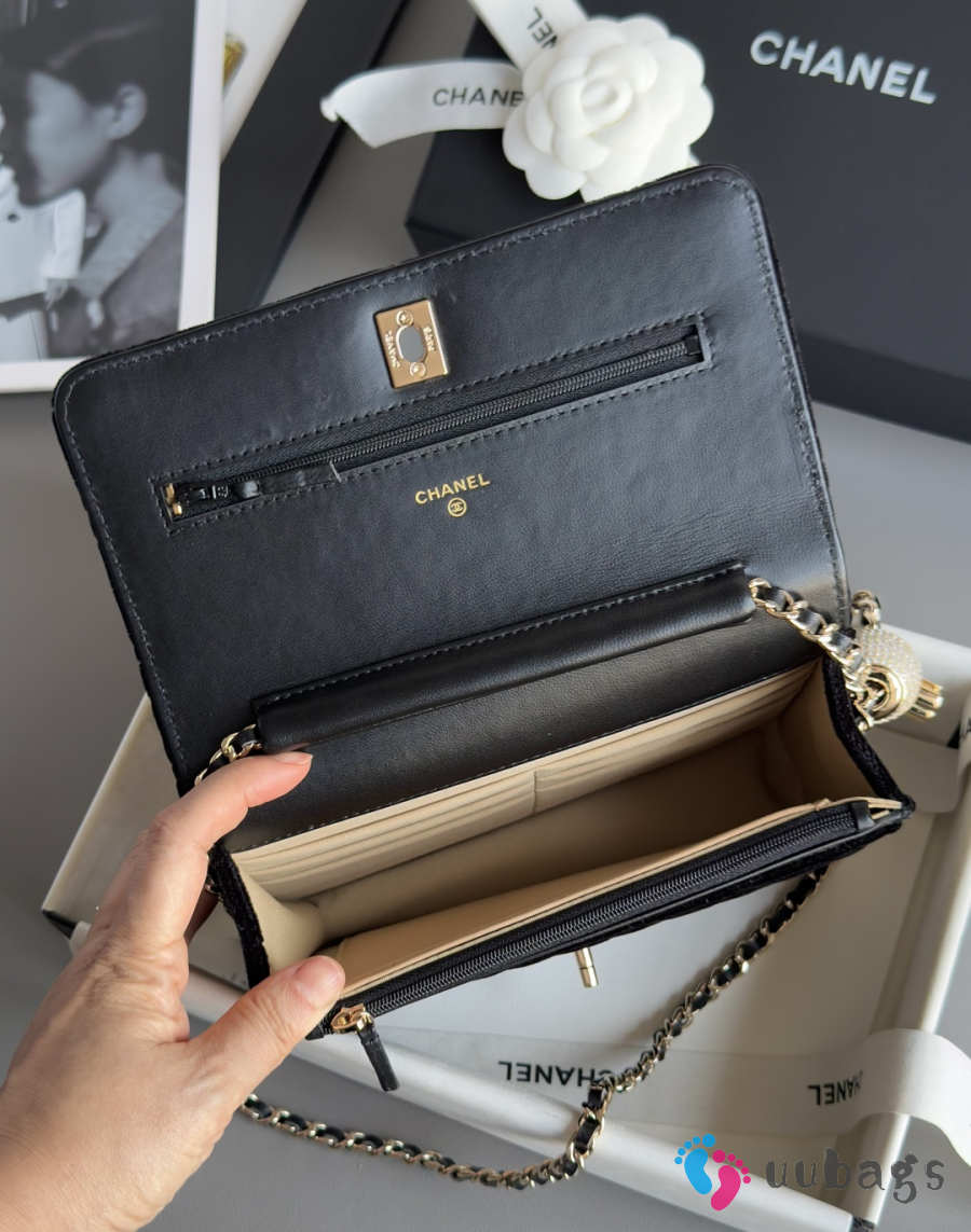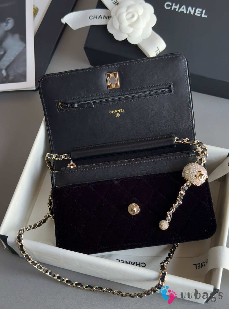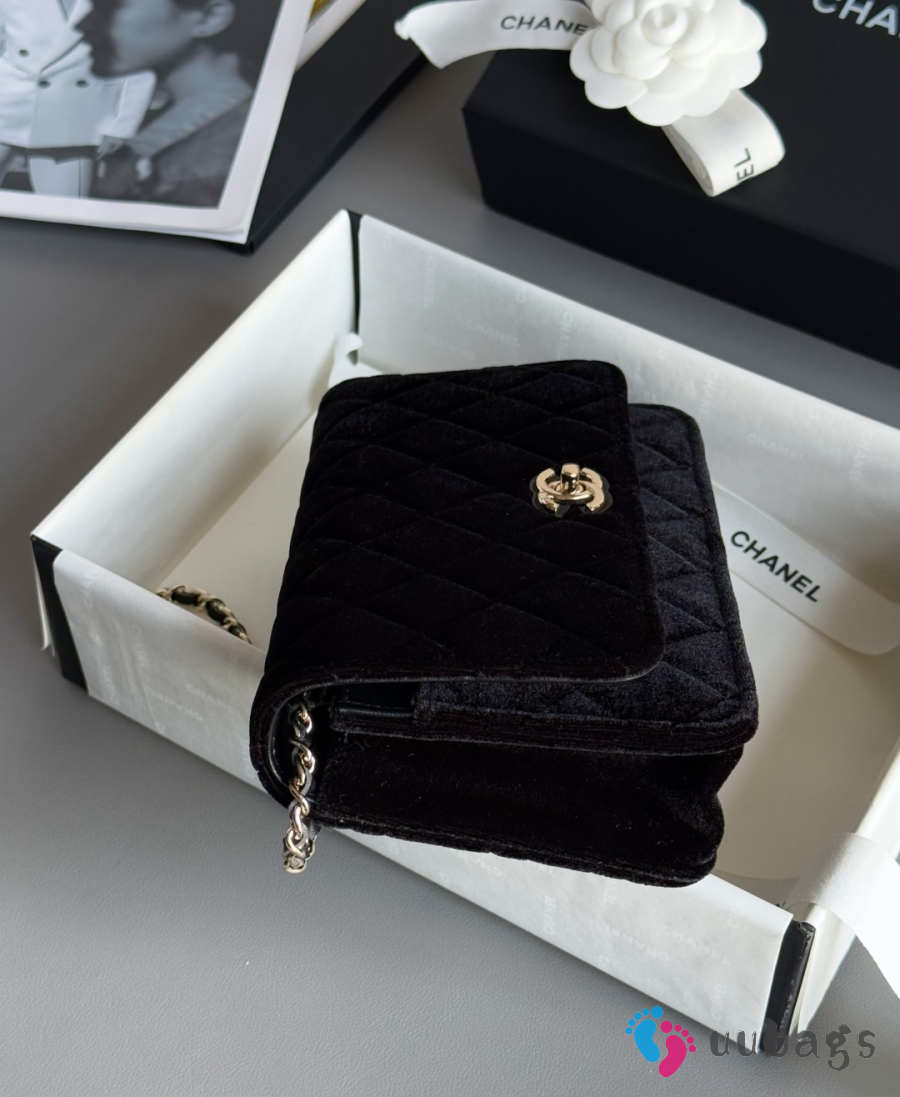 Uubags Chanel Pearl Crush wallet on chain in black quilted velvet 12.3x19.2x3.5cm