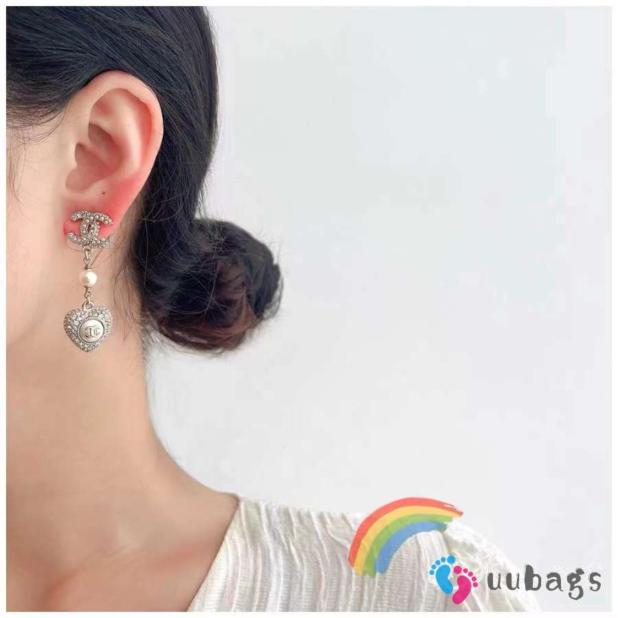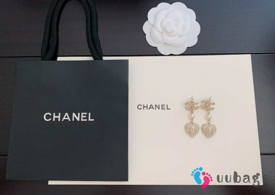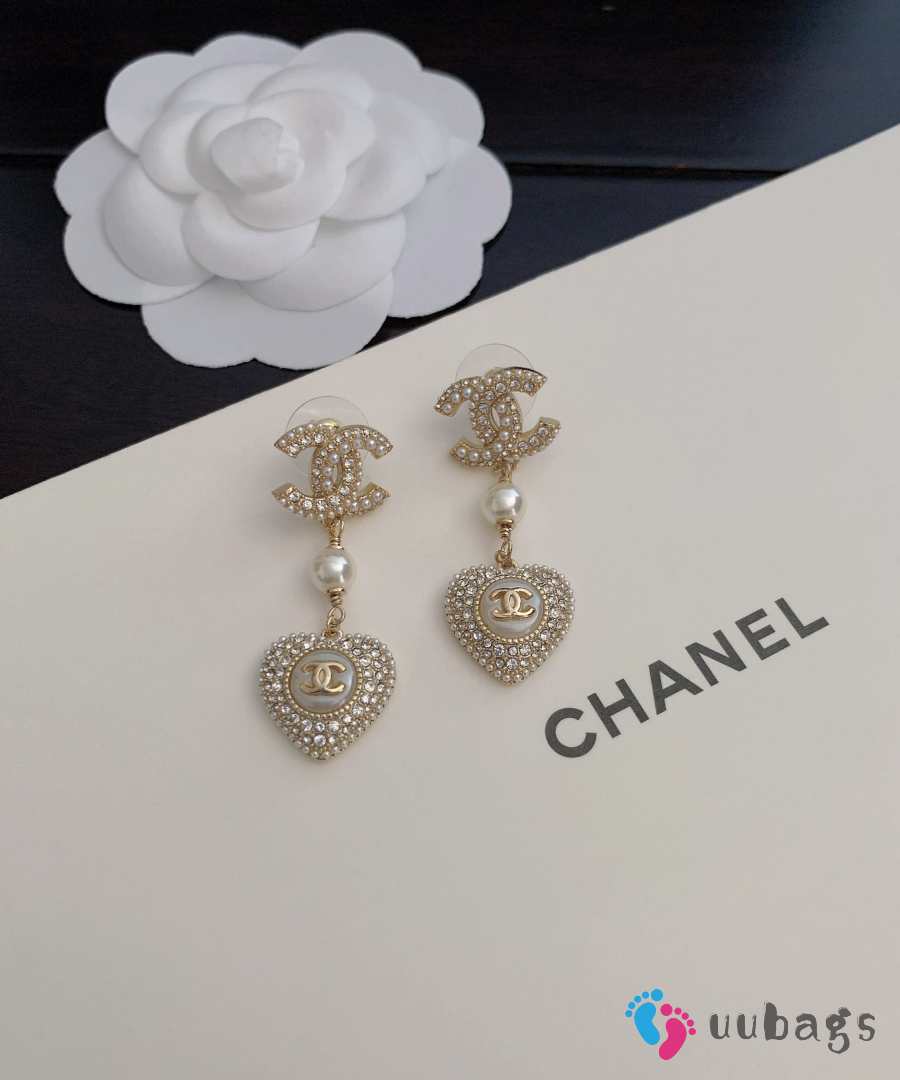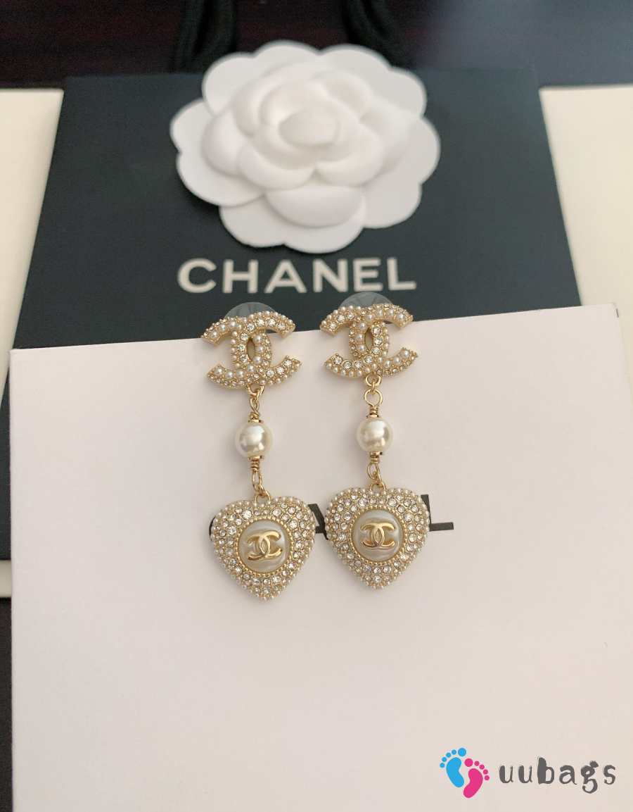 Uubags Chanel Pearl Crystal CC Heart Drop Earrings