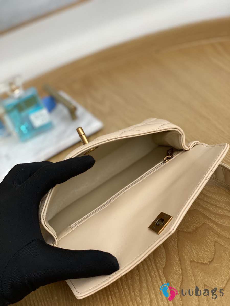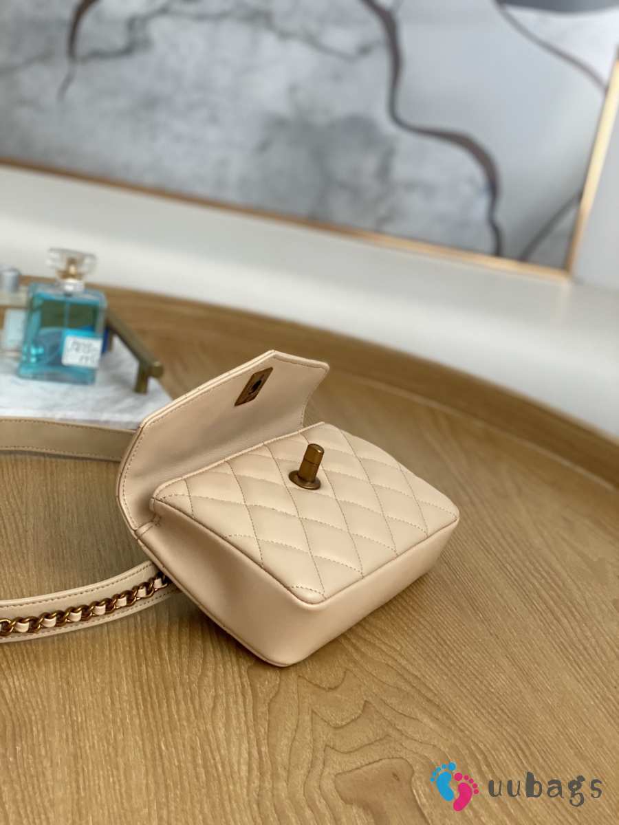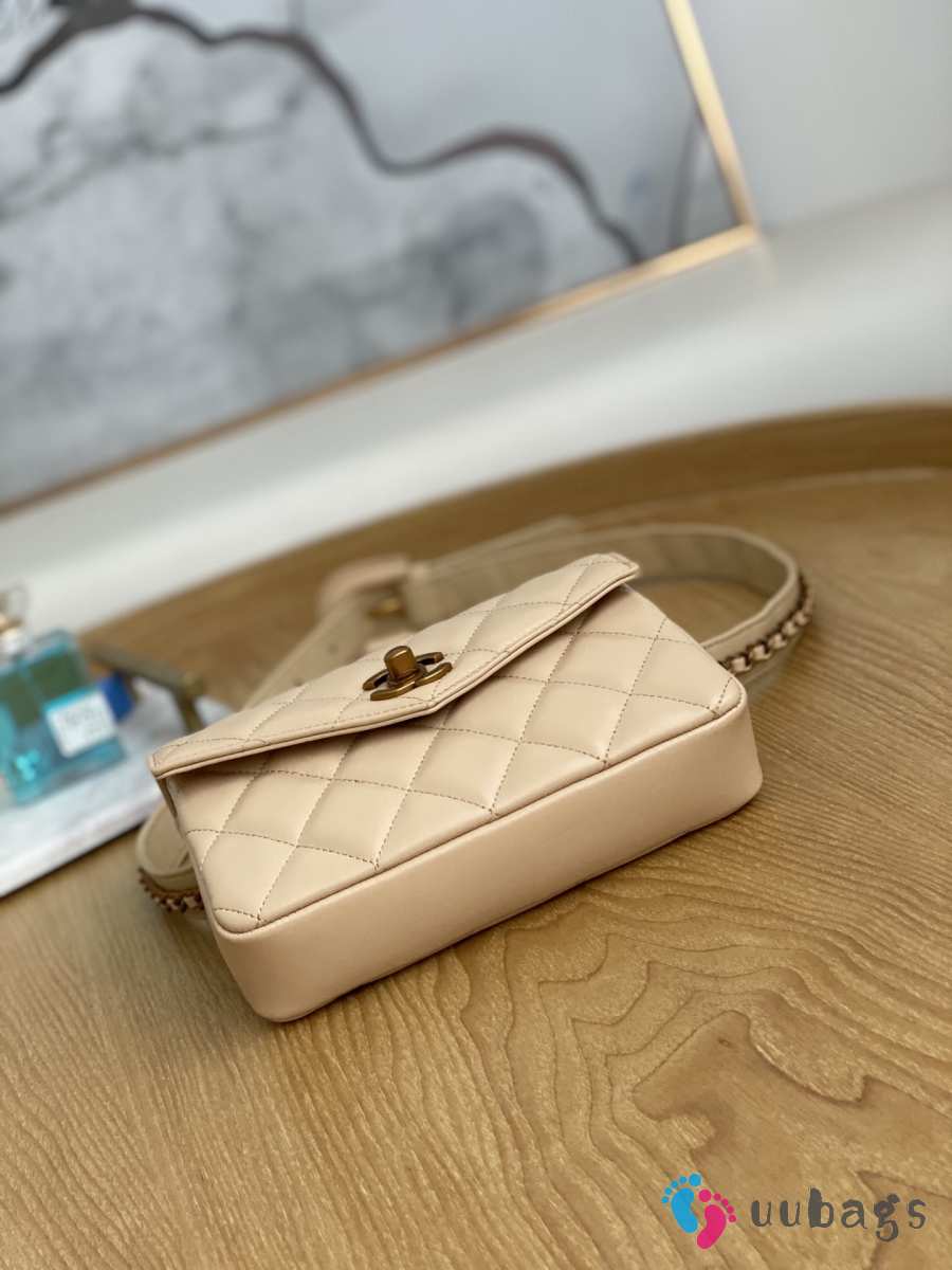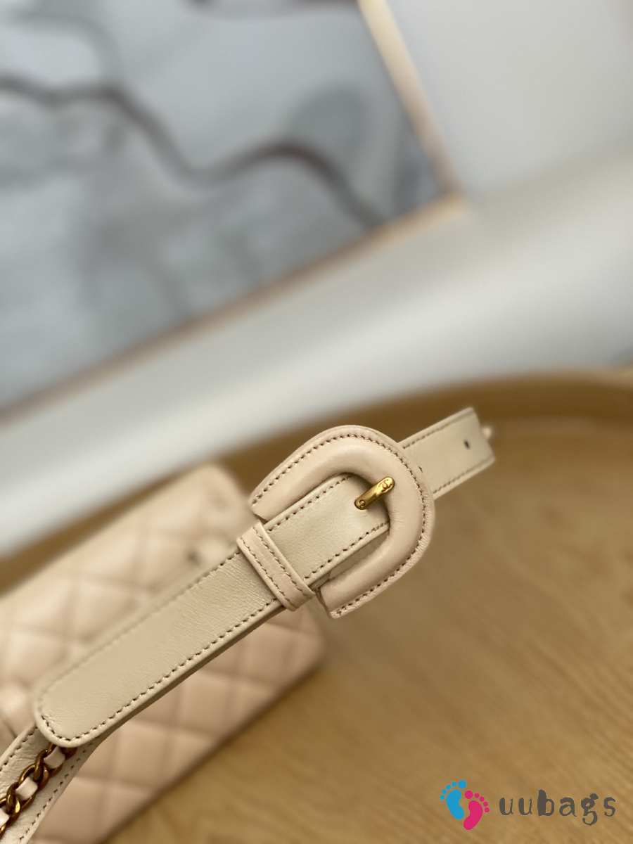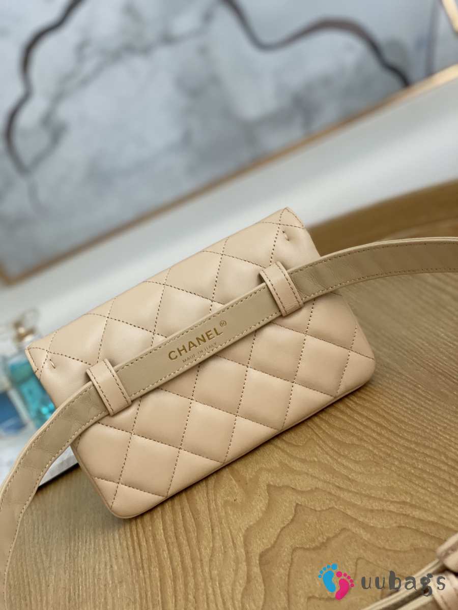 Uubags Chanel Quilted Leather Waist Belt Bag In Beige 18x3.5x12cm