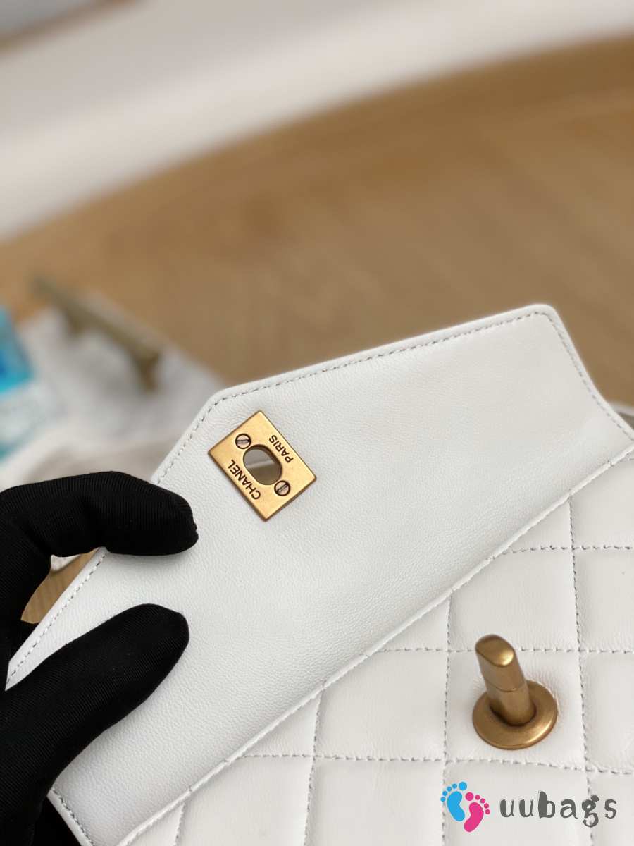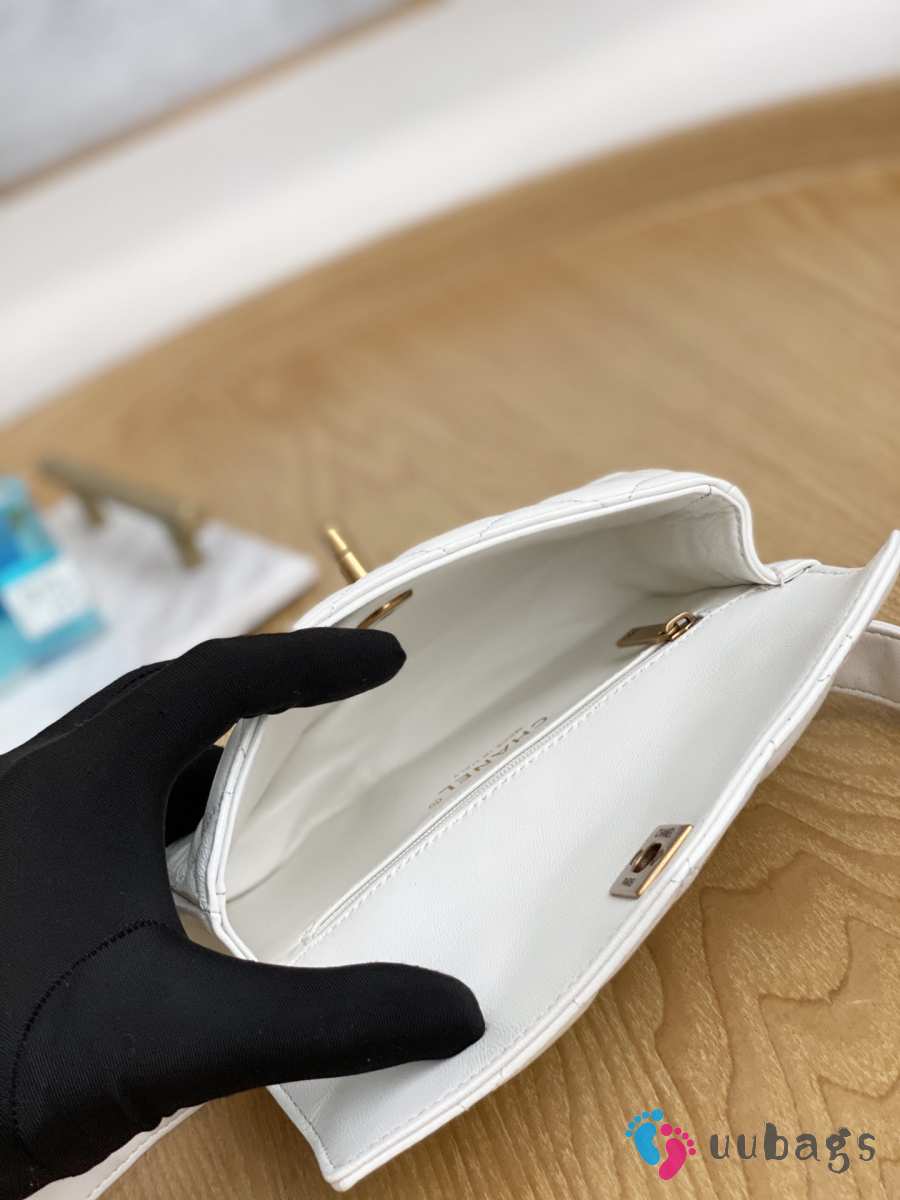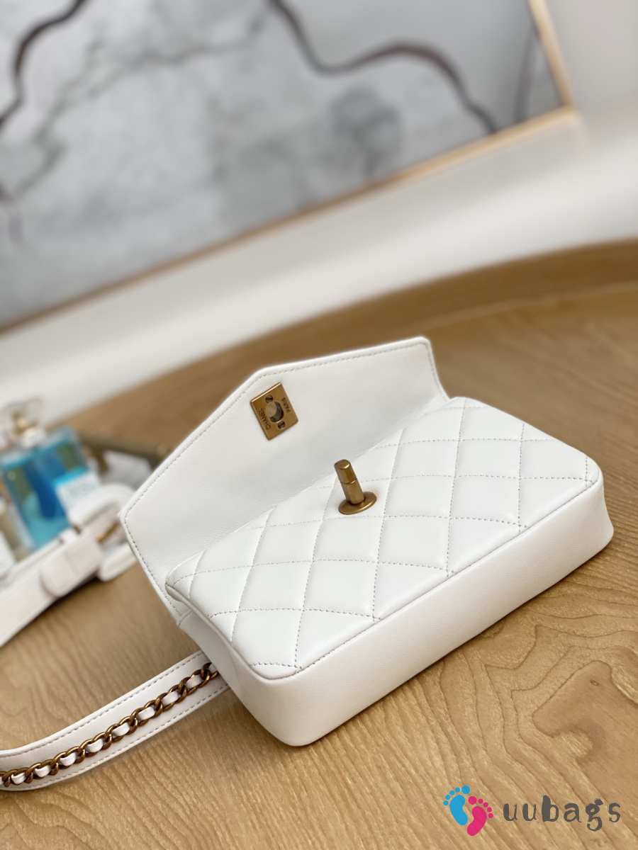 Chanel 23K Bottom Chain Flap Bag Caviar In White 20.5x7.5x13cm