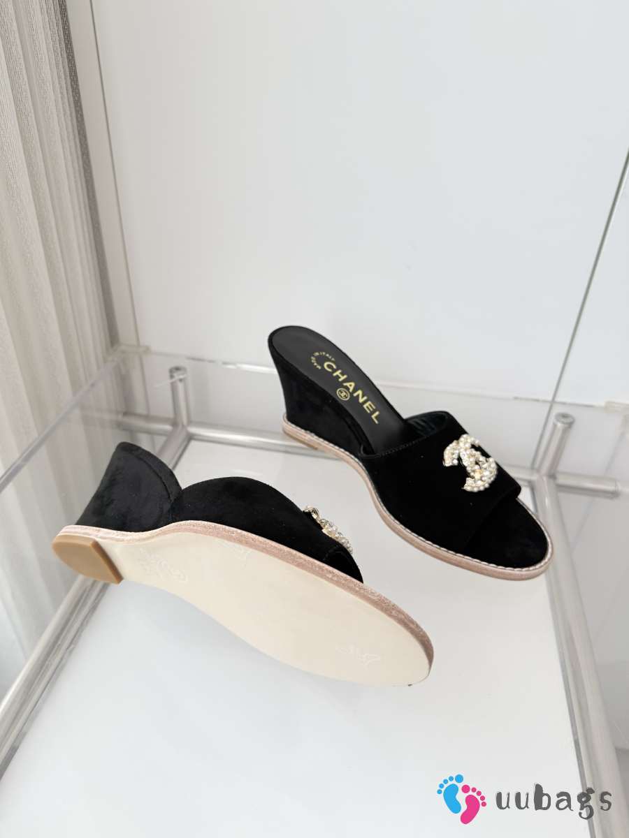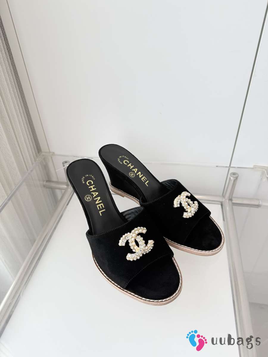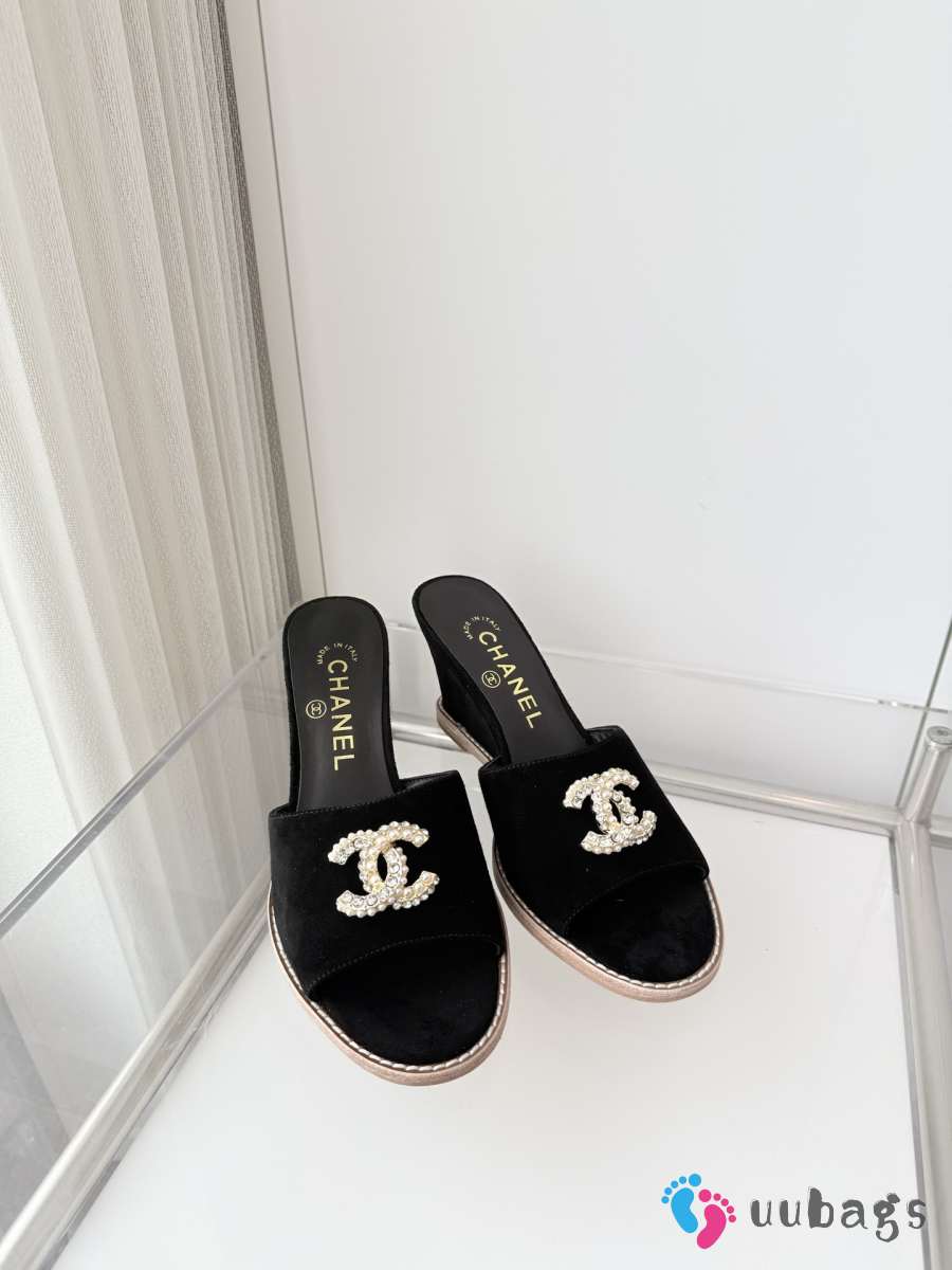 Uubags Chanel Sandals In Velvet & Imitation Pearls Black 8.5cm
