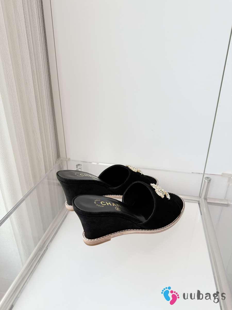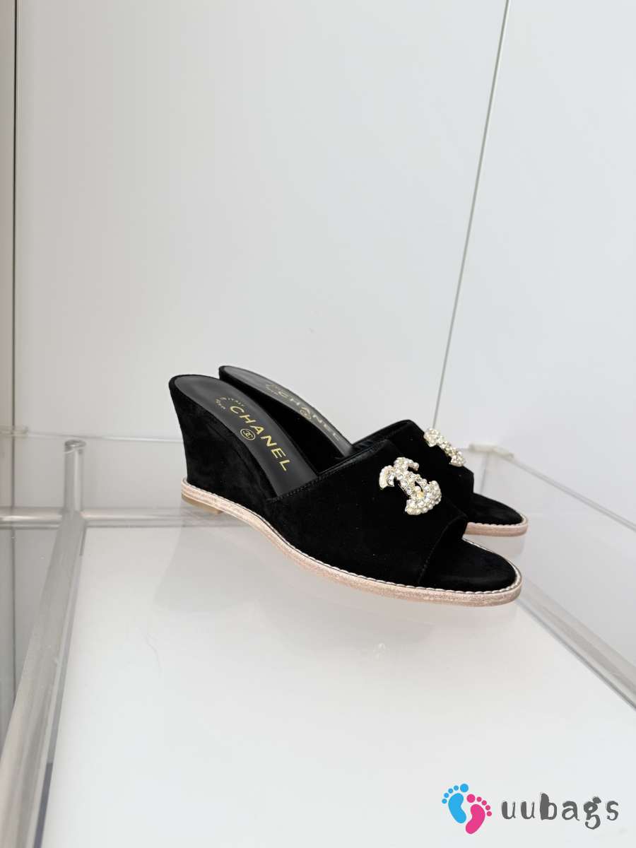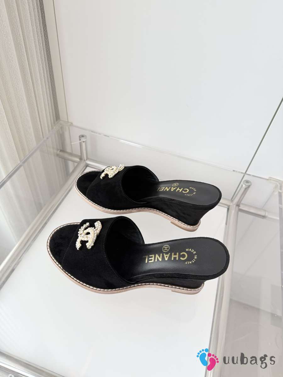 Uubags Chanel Sandals In Velvet & Imitation Pearls Black 8.5cm