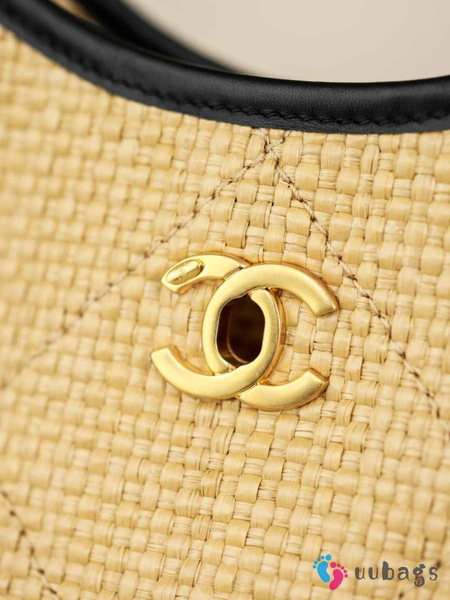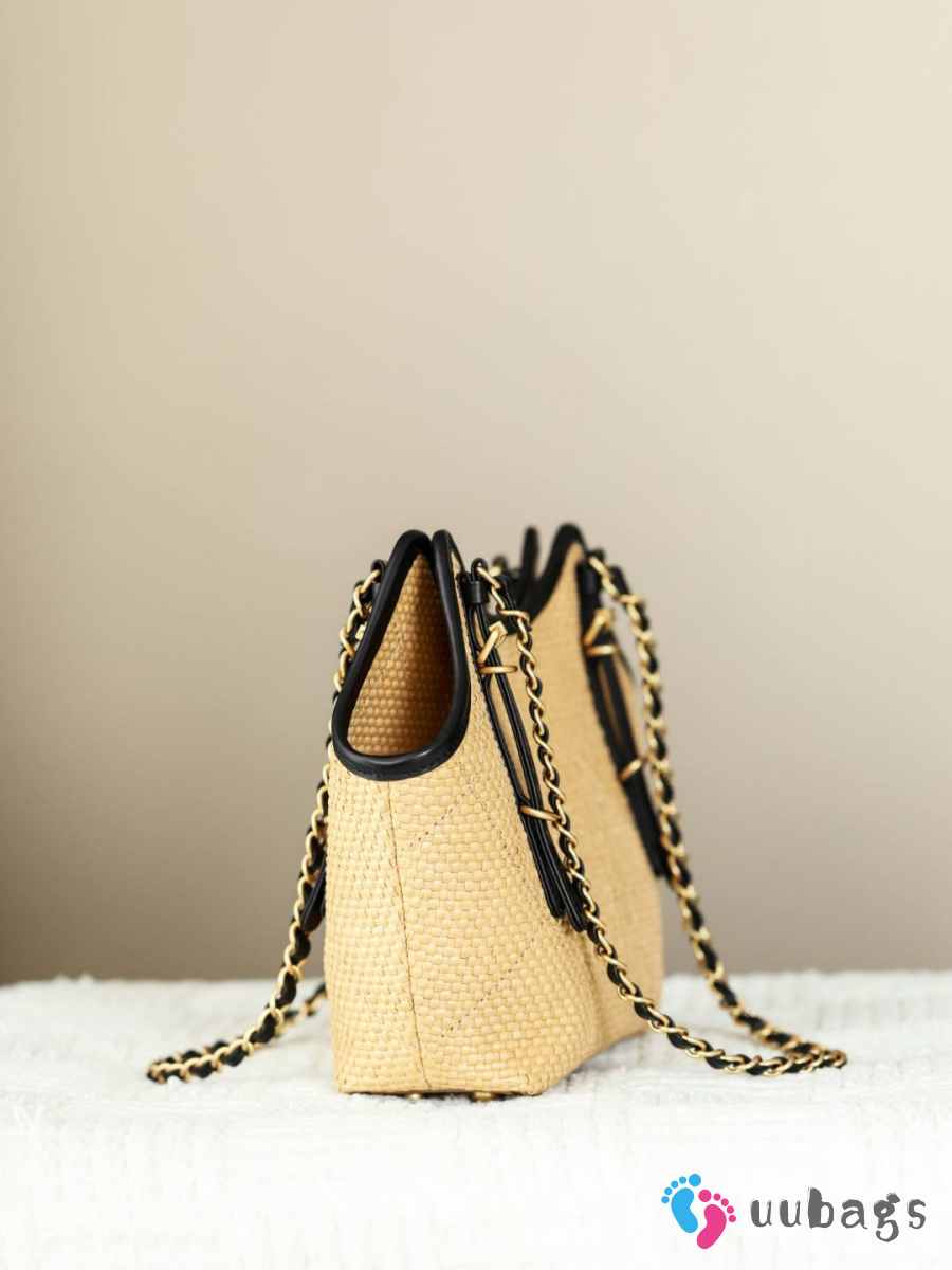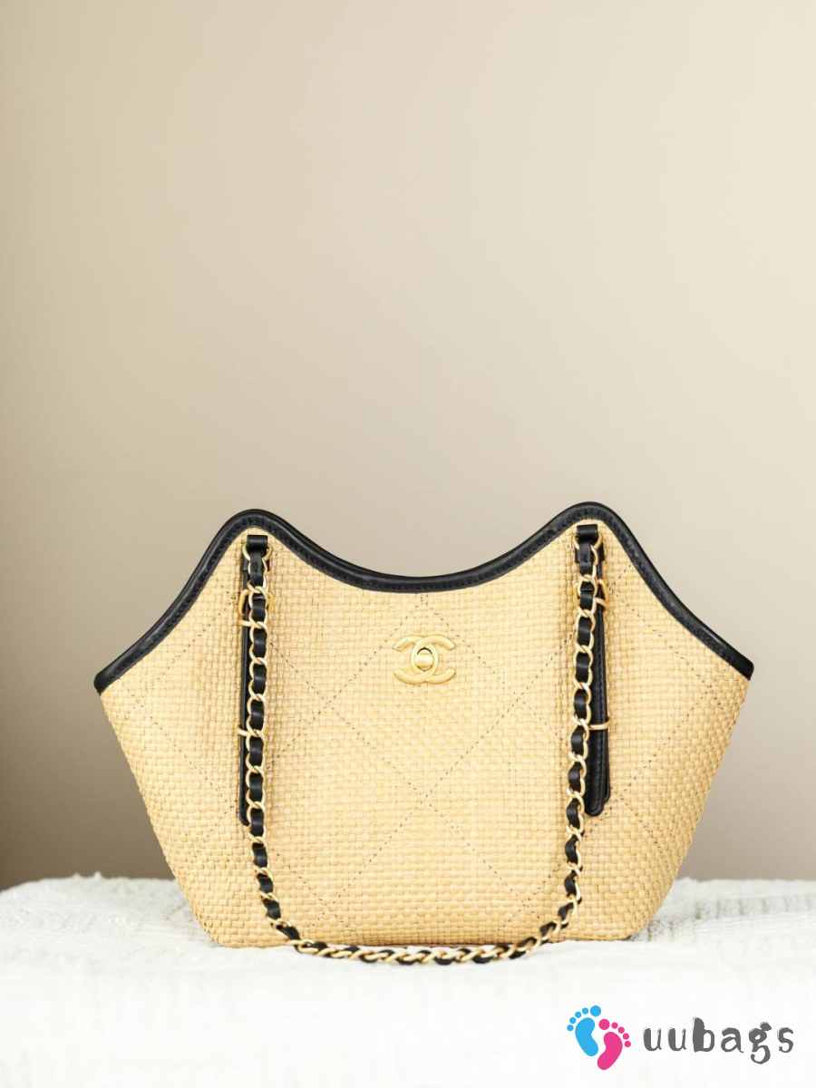 Uubags Chanel Shopping Bag Braided Raffia, Calfskin & Gold-Tone Metal In Beige 28x20x7cm