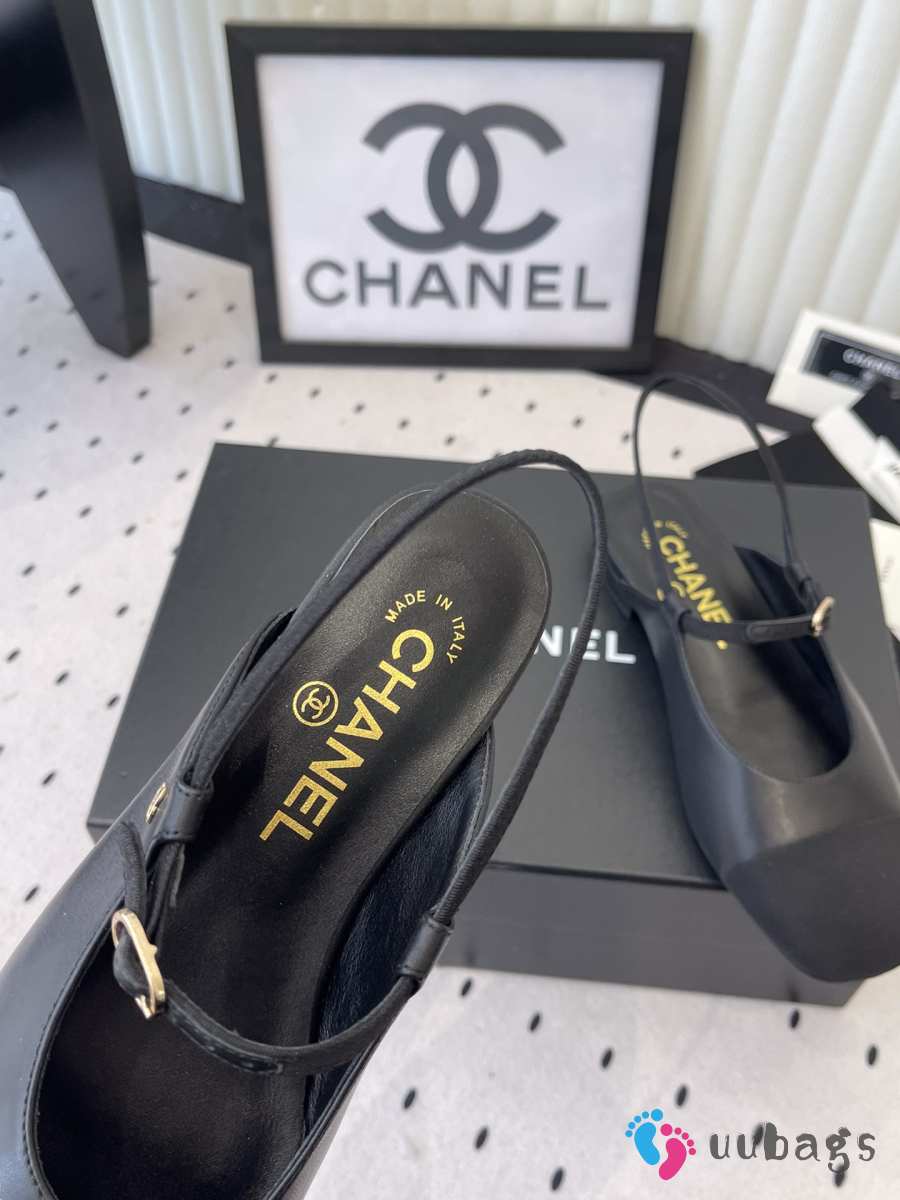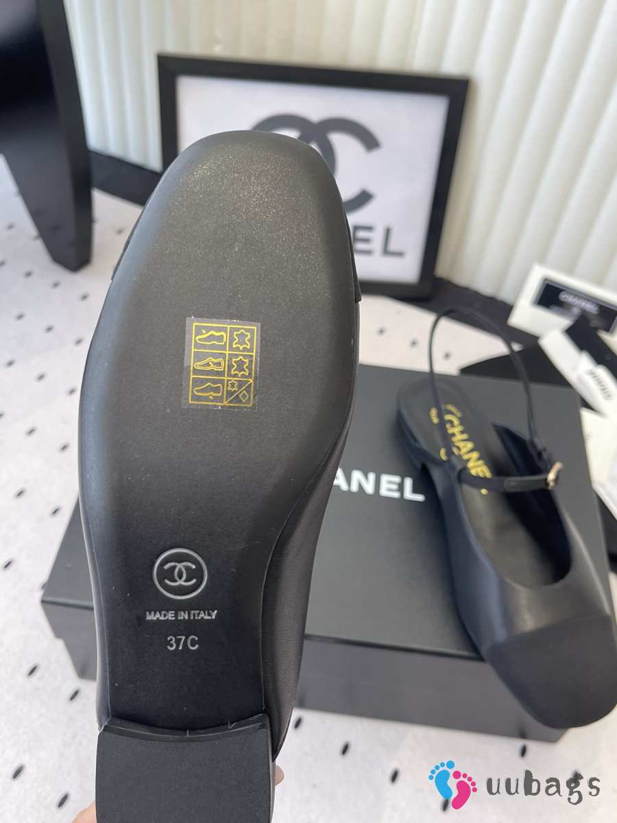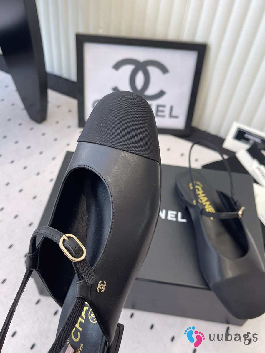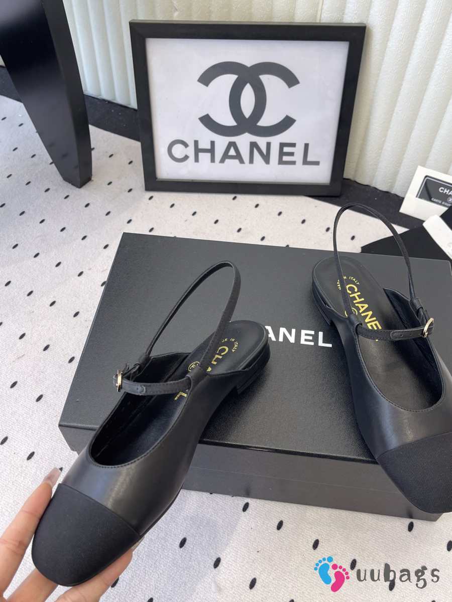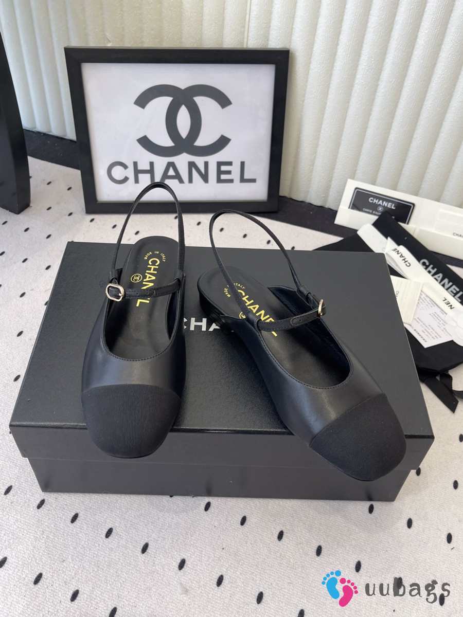 Uubags Chanel slingback goat leather & grosgrain fabric in black