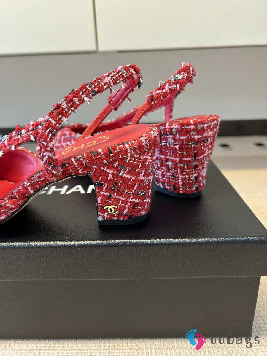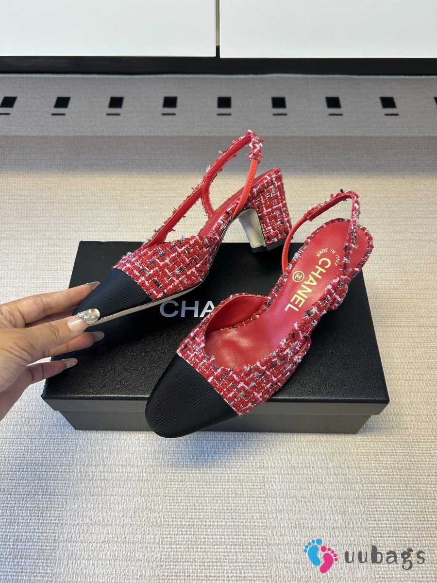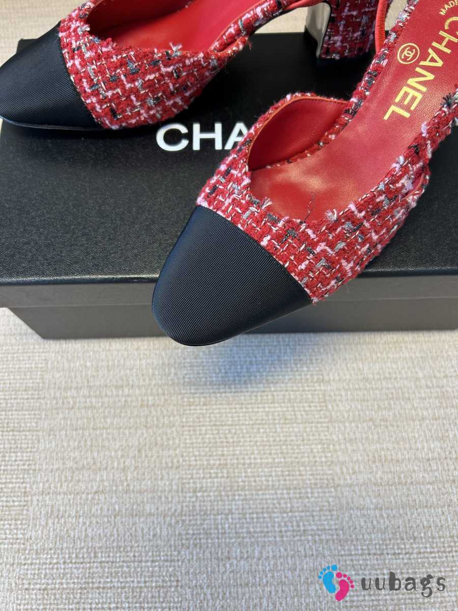 Uubags Chanel Slingback Tweed Pumps In Red/Black 5.5cm