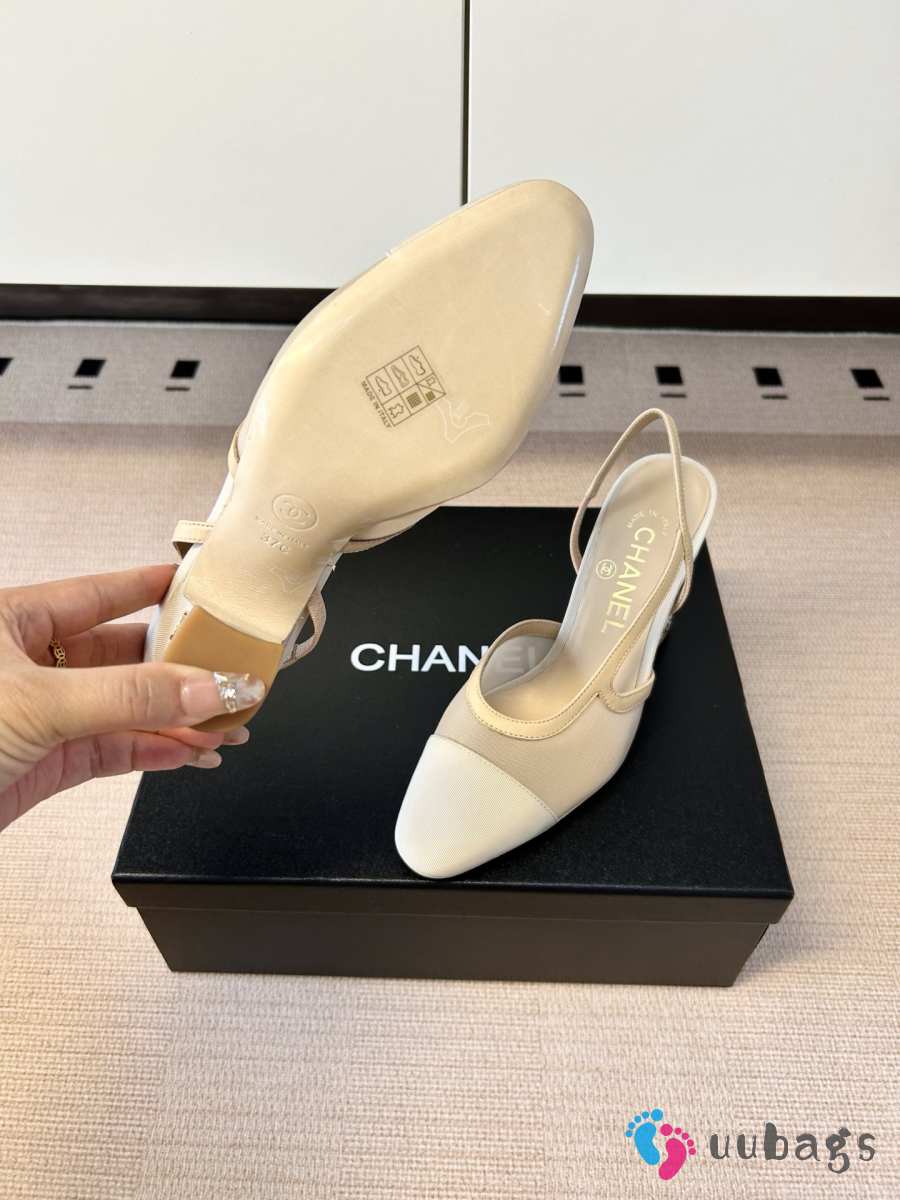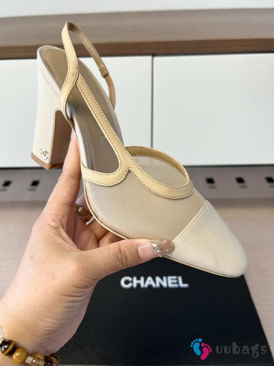 Uubags Chanel Slingbacks Mesh & Grosgrain In Beige 9cm