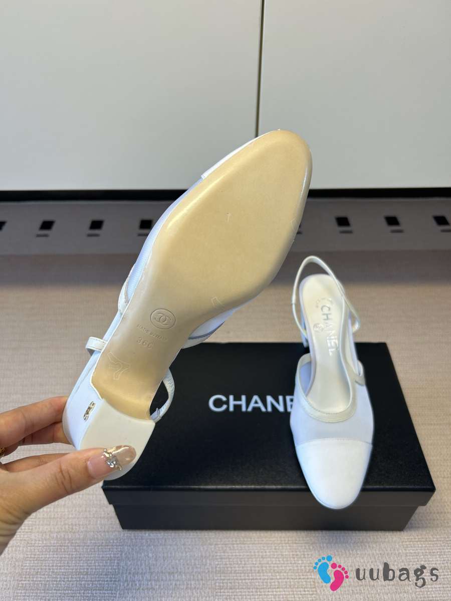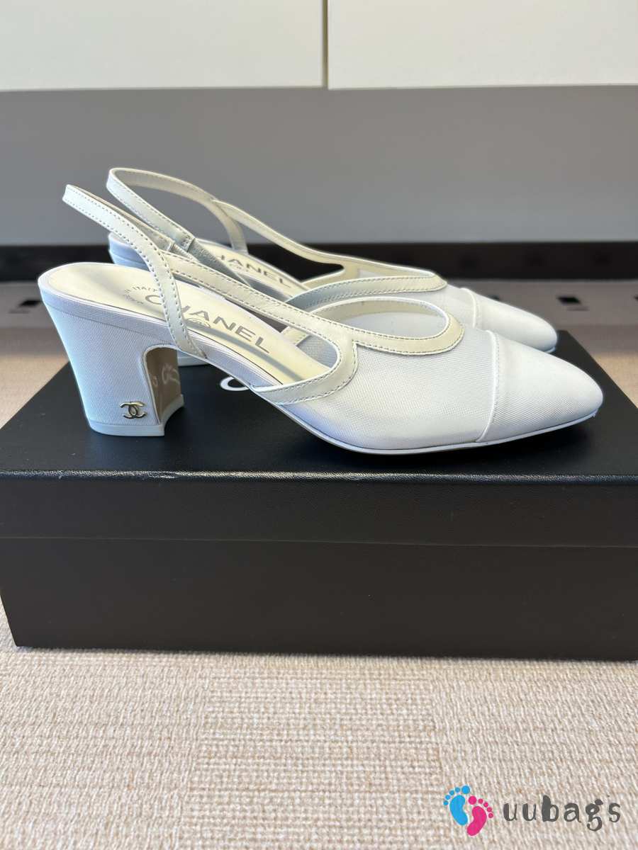 Uubags Chanel Slingbacks Mesh & Grosgrain In White 5.5cm