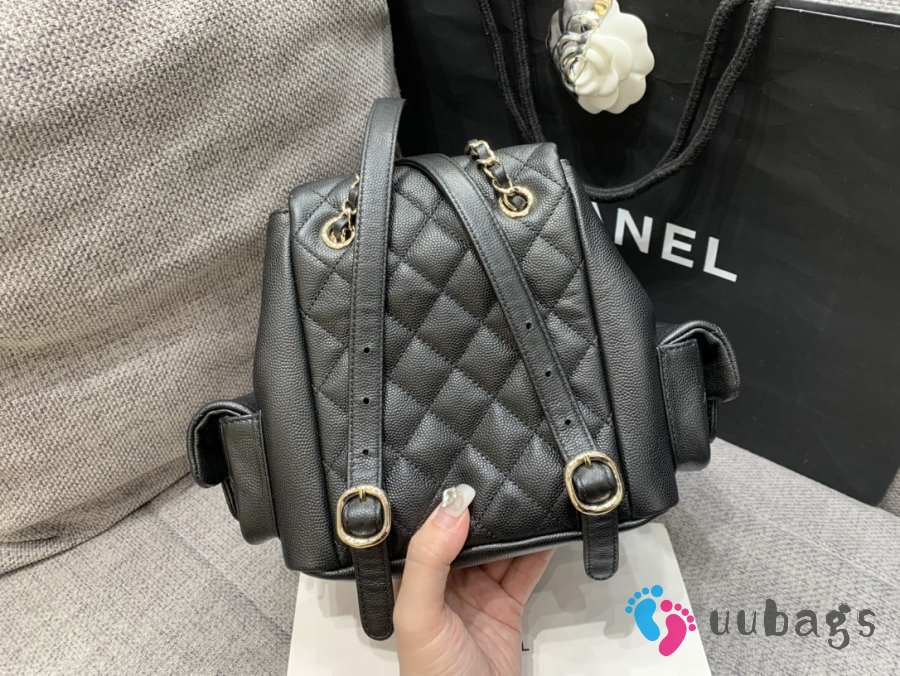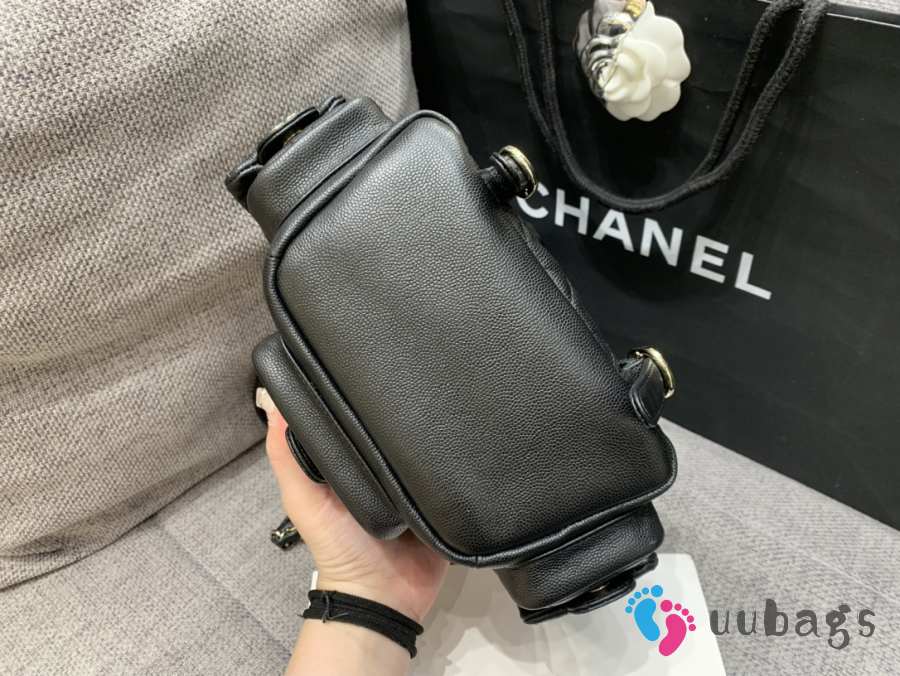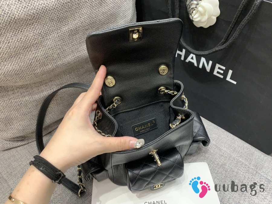 Uubags Chanel Small Backpack Grained Shiny Calfskin & Gold-Tone Metal Coral Black 19.5x18x10cm
