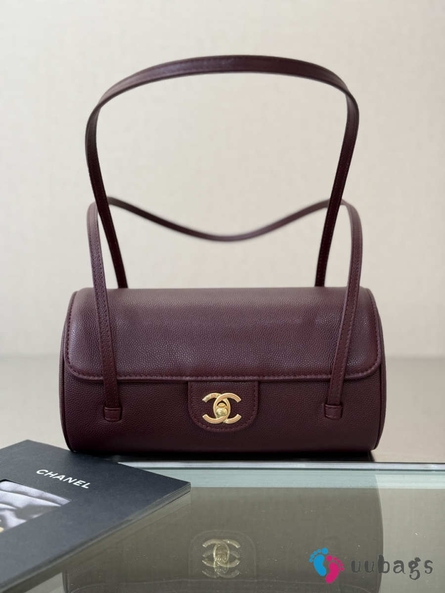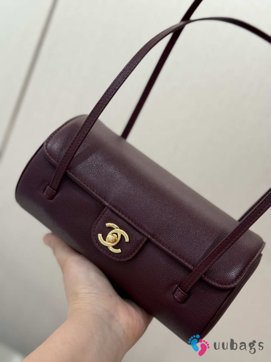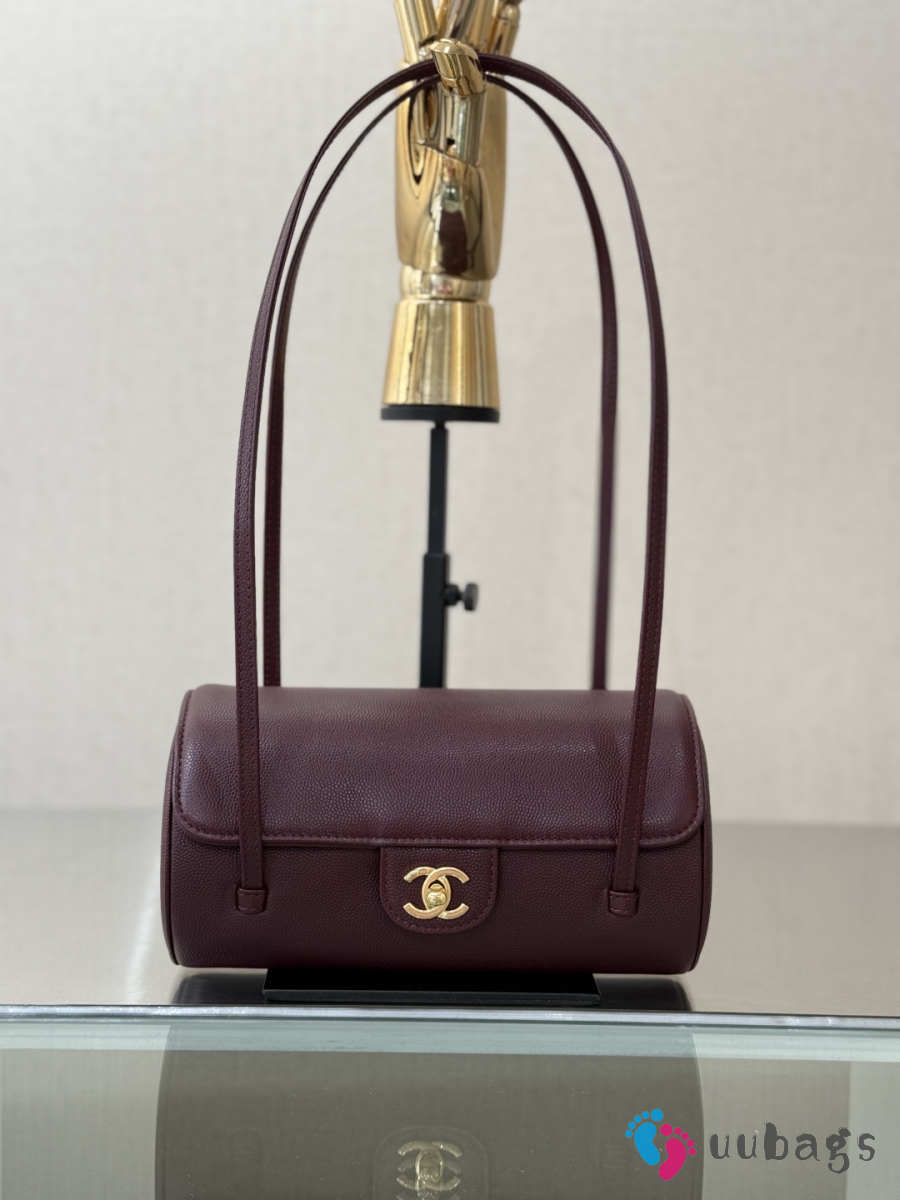 Uubags Chanel Small Bowling Bag Grained Shiny Calfskin & Gold-Tone Metal In Burgundy 10x20.5x10cm