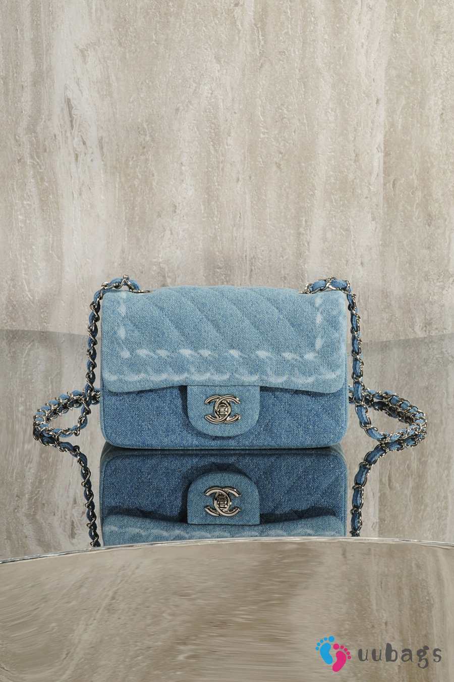 Uubags Chanel Small Classic Flap Blue Washed Denim With Silver Hardware 20cm