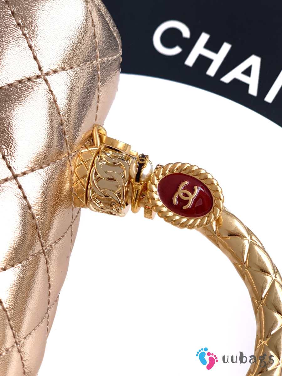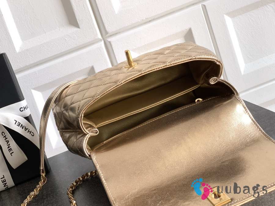 Uubags Chanel small Coco handle bag in 25K gold tone with diamond-style details 23cm