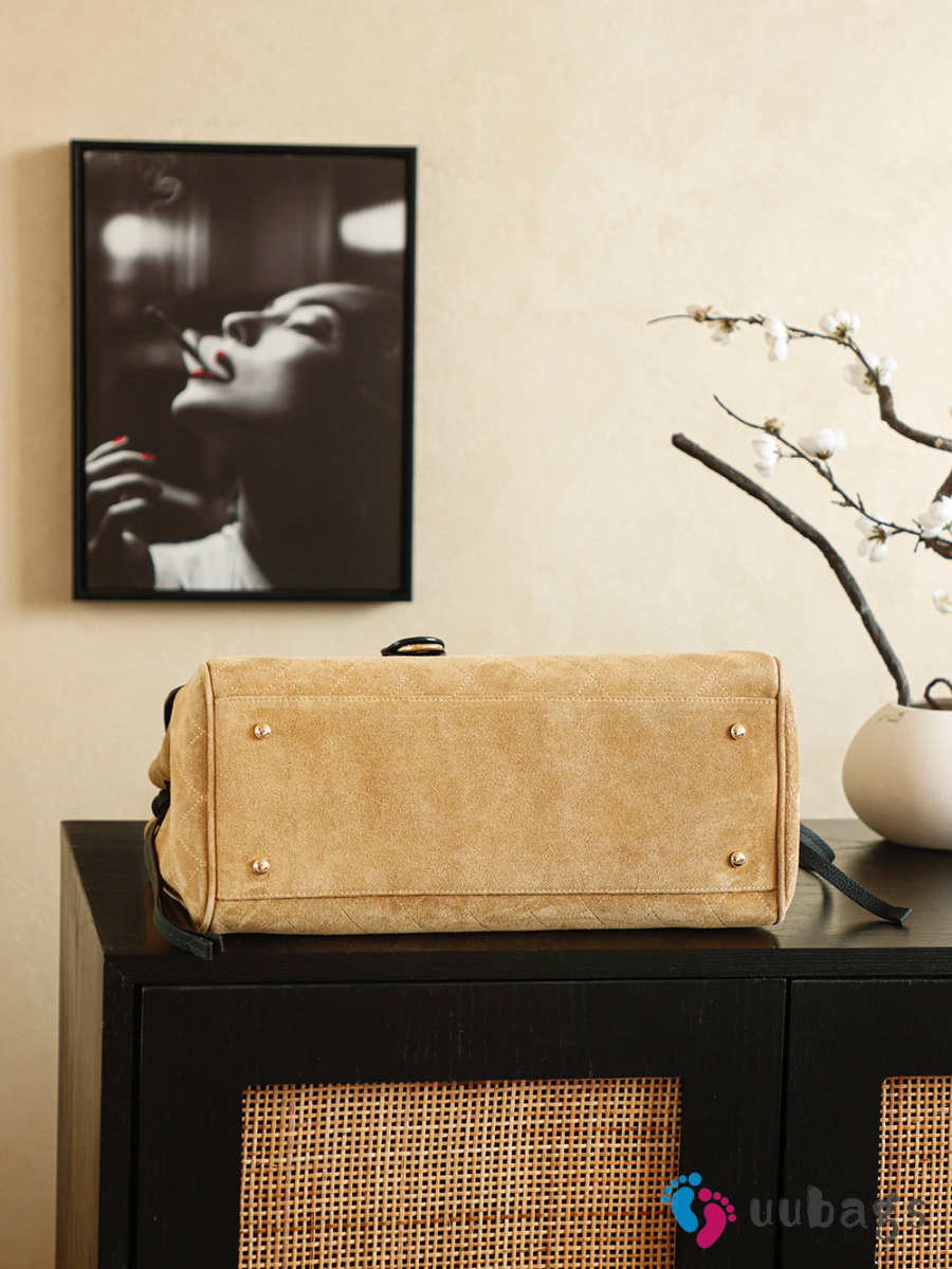 Uubags Chanel Small Coco Handle Bag In Quilted Suede With Grained Calfskin Beige/Black 16x37x29cm