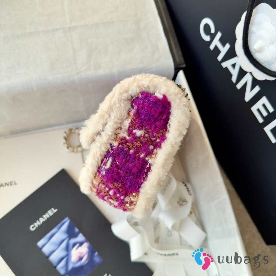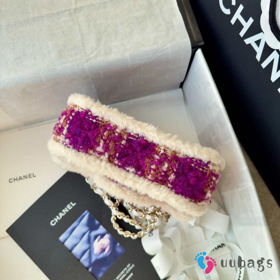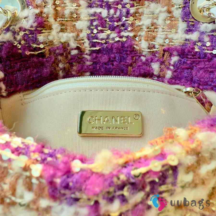 Uubags Chanel Small Flap Bag Tweed, Sheepskin & Gold-tone Metal In Fuchsia, Pink, Beige & Brown 20cm