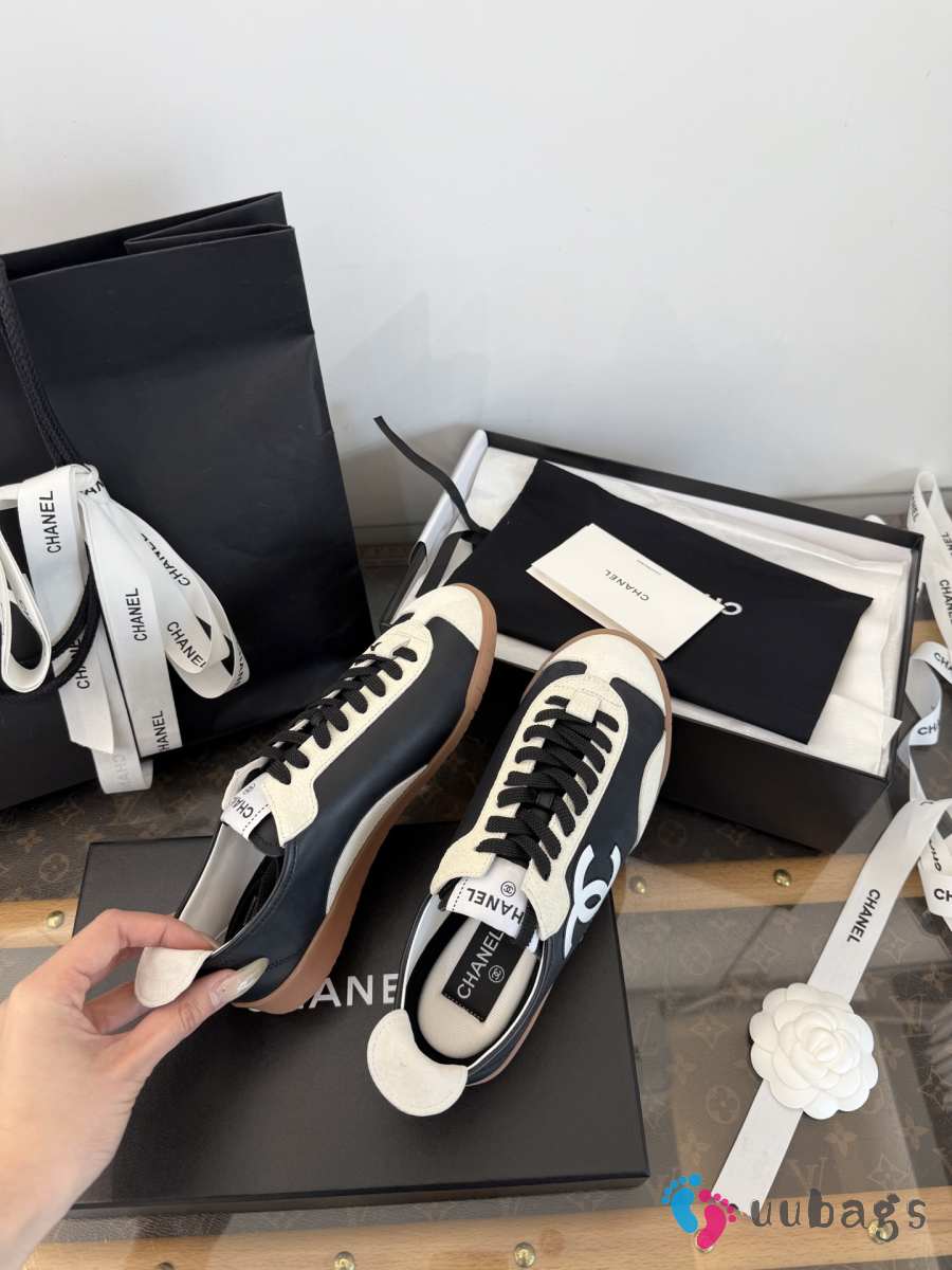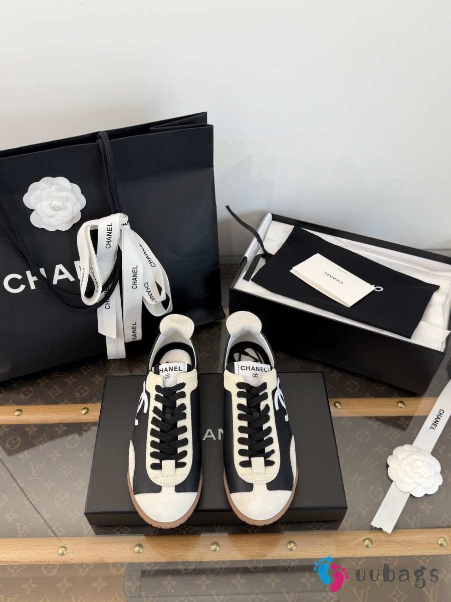 Uubags Chanel sneakers embossed calfskin and suede calfskin in black & white