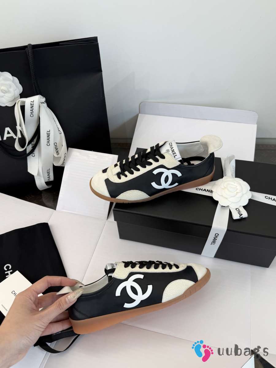 Uubags Chanel sneakers embossed calfskin and suede calfskin in white & black