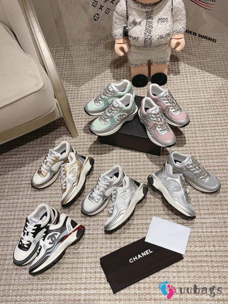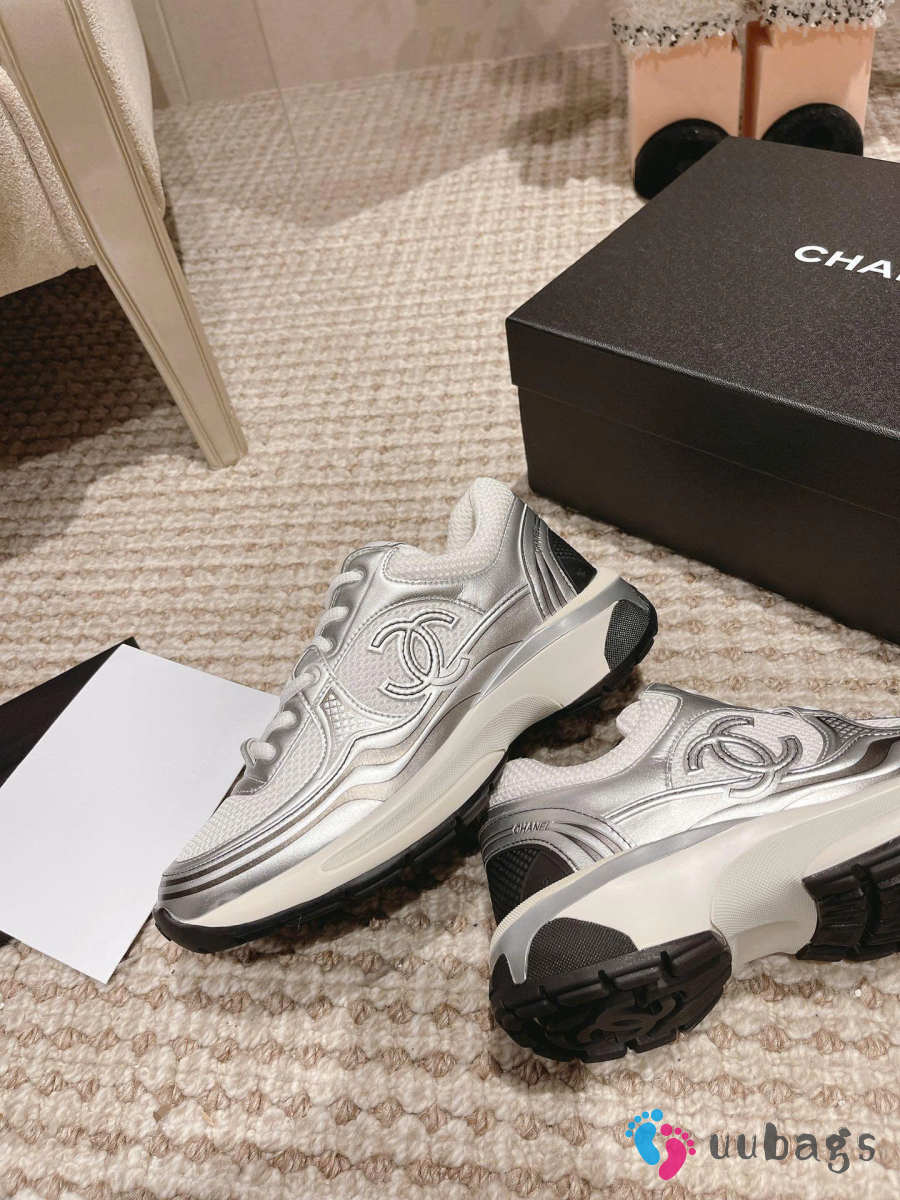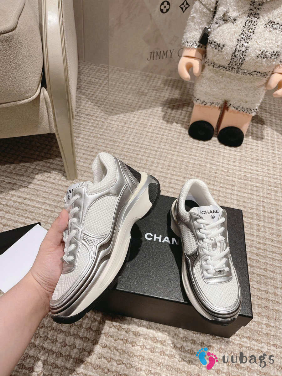 Uubags Chanel Trainers Fabric & Laminated In White & Silver 1cm
