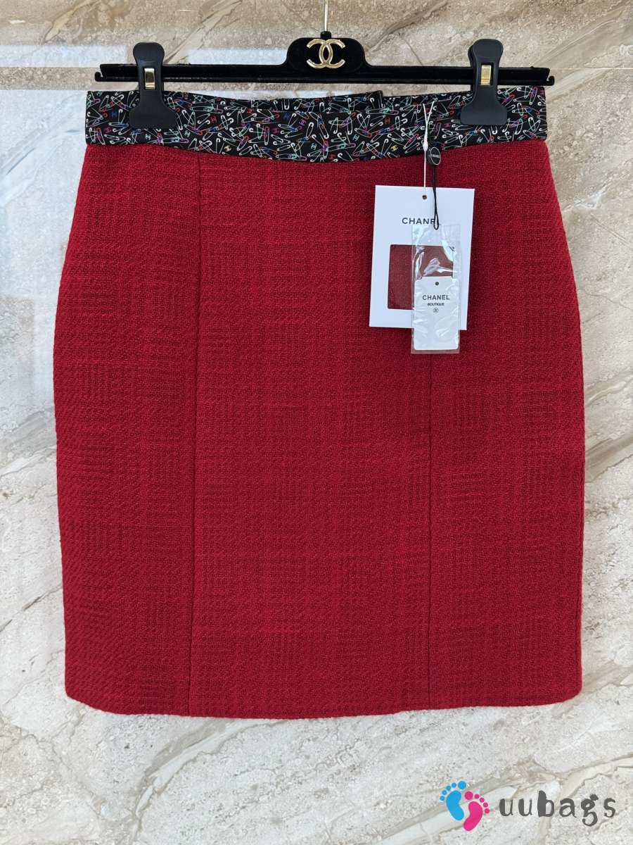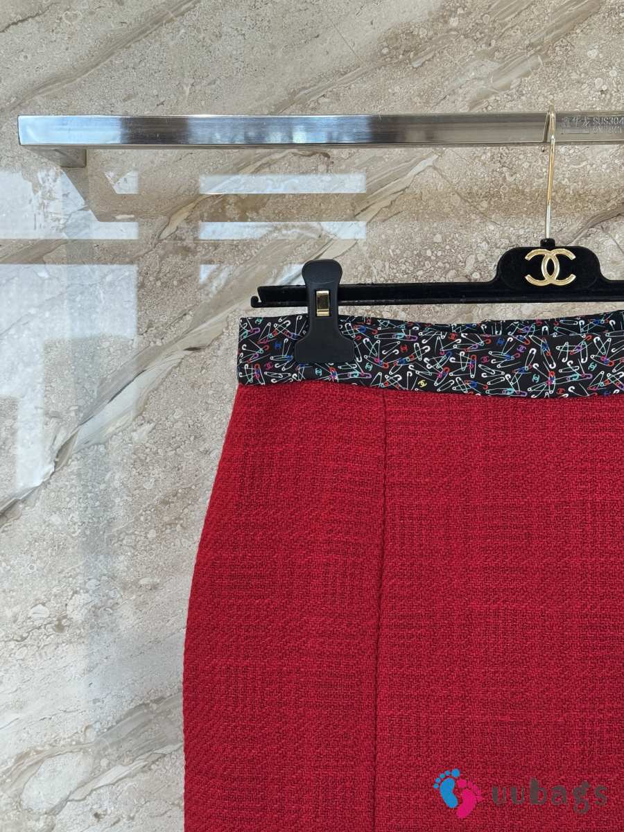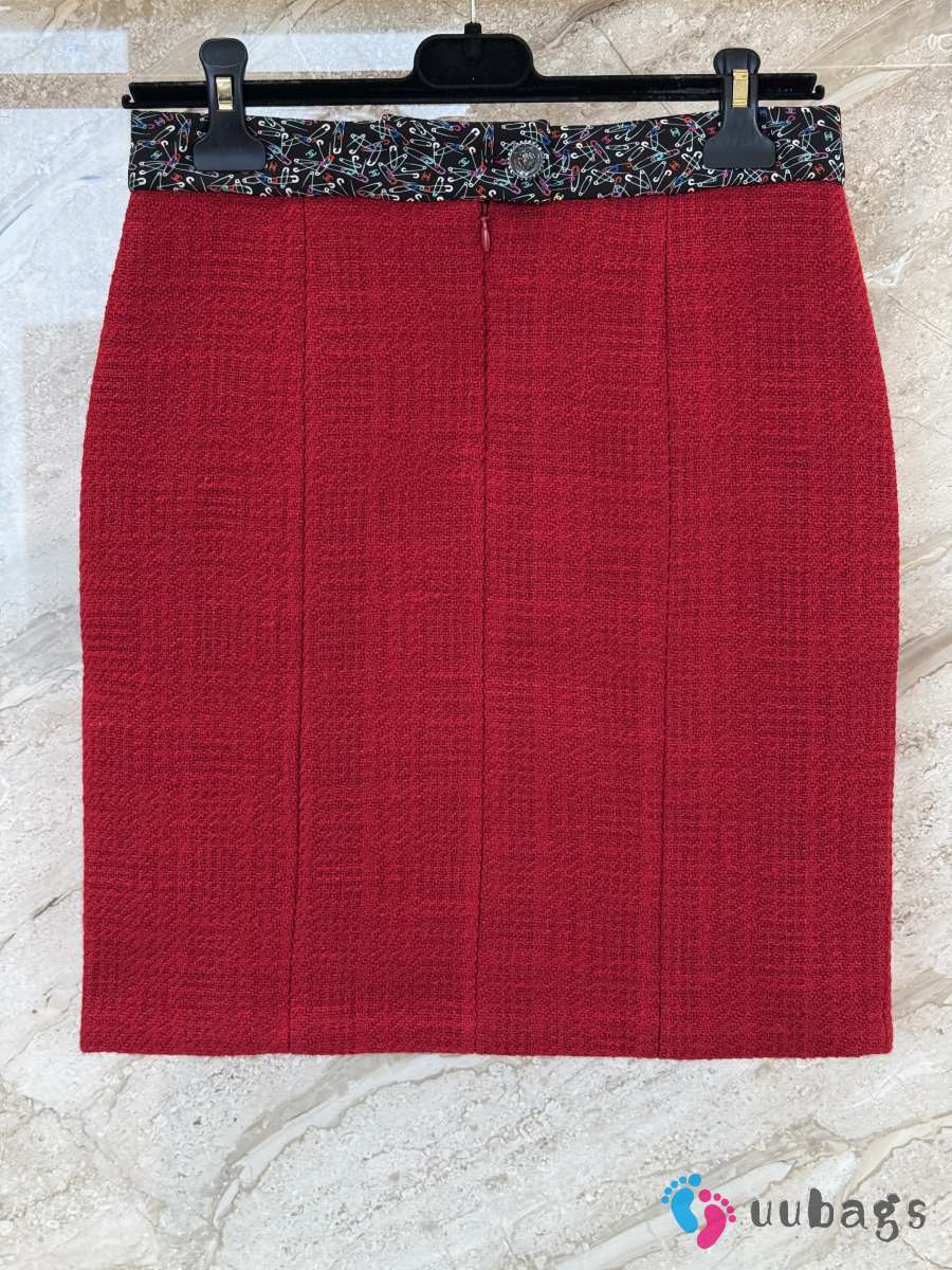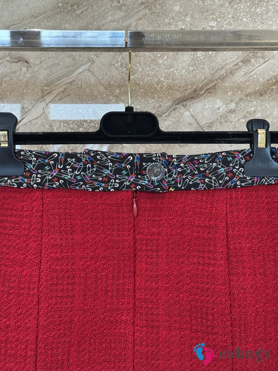 Uubags Chanel Tweed Jacket & Skirt Set In Red Wool Blend