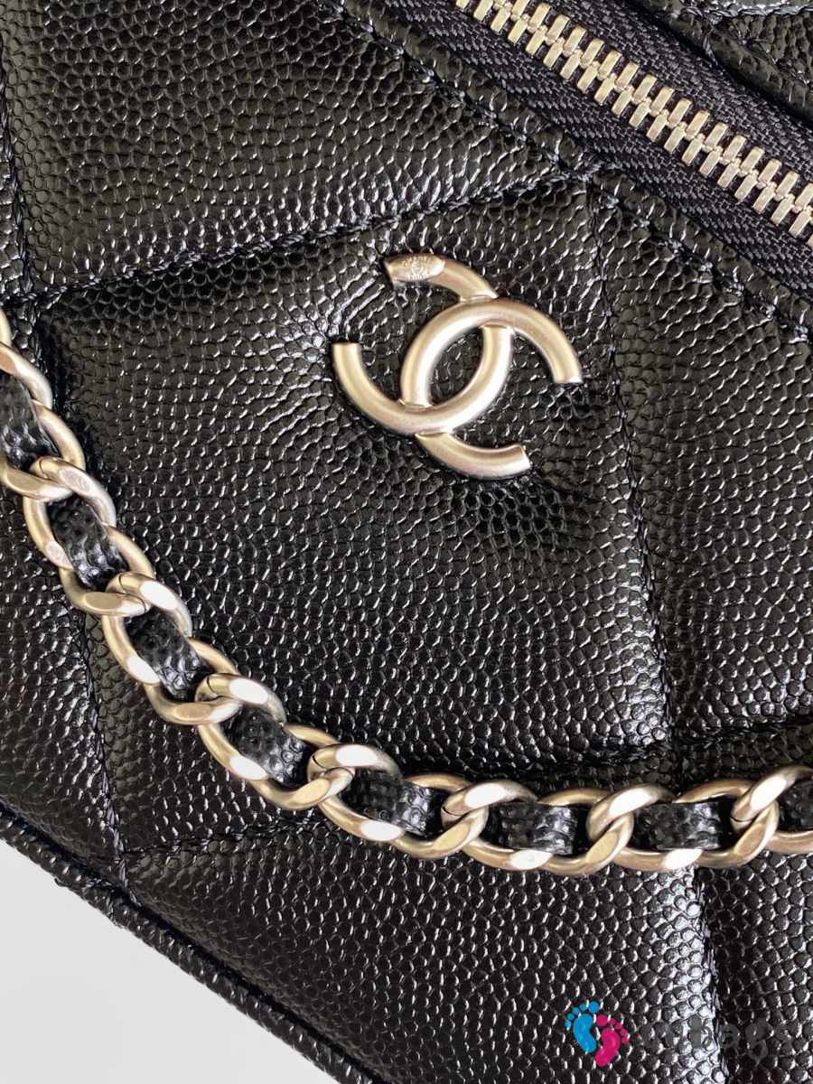 Uubags Chanel Vanity bag with strap grained calfskin & silver metal in black 17x19.5x5cm