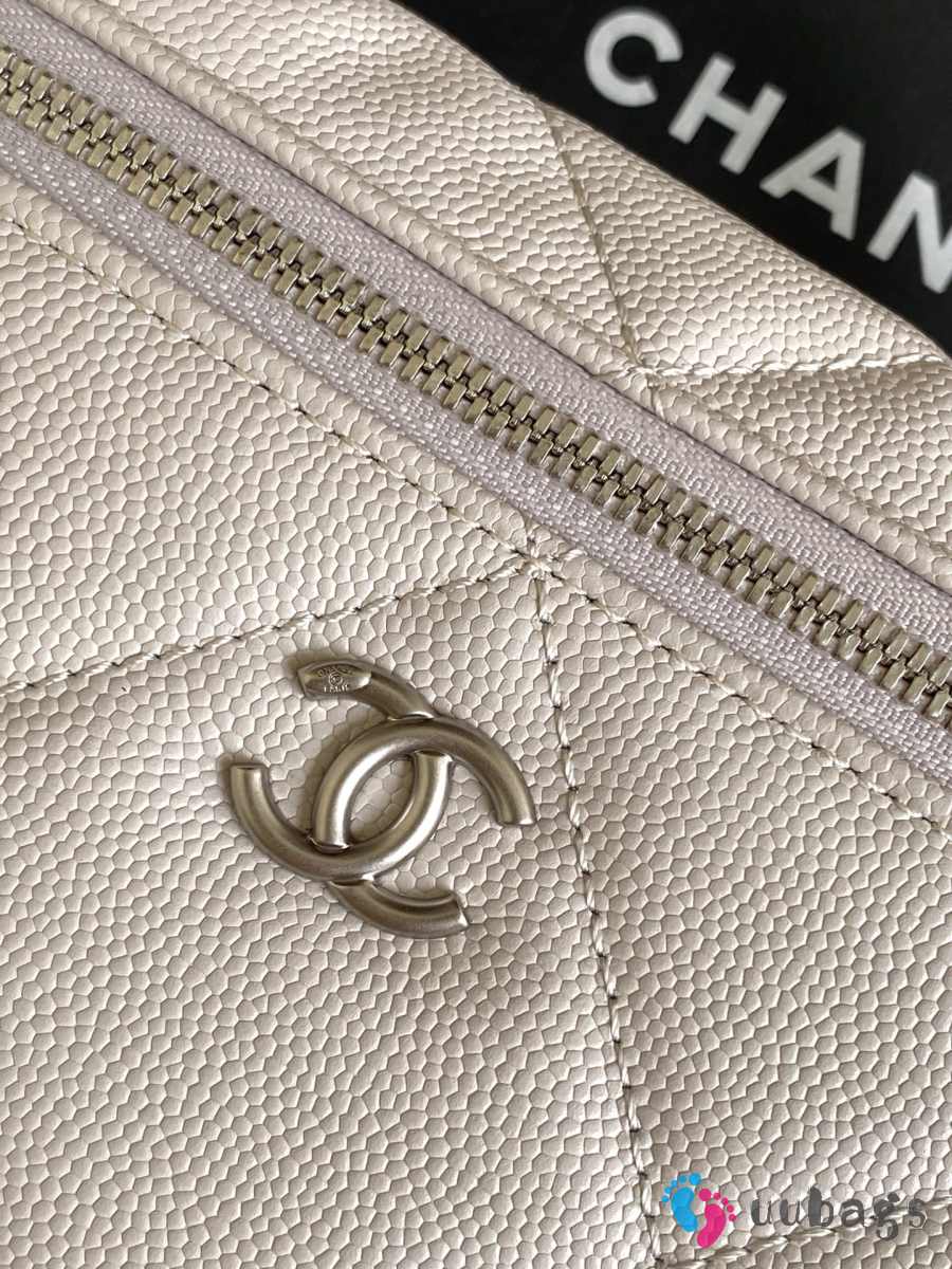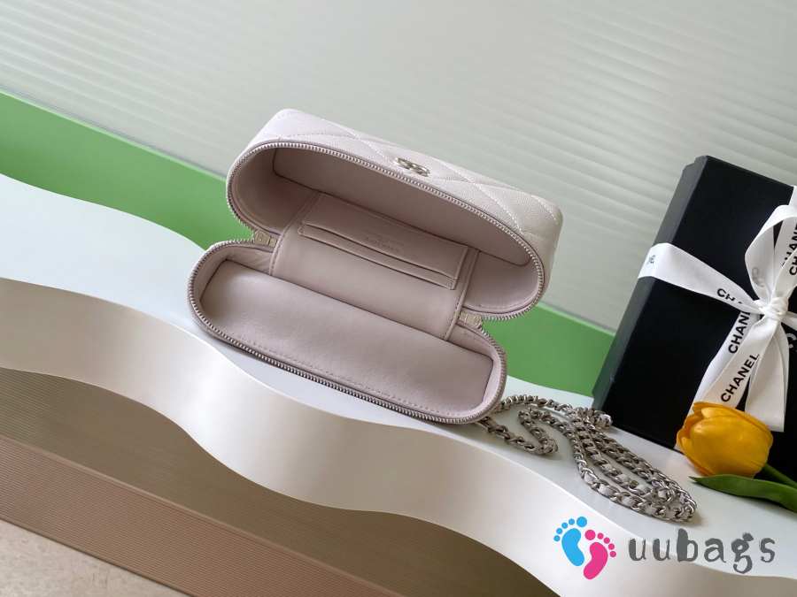 Uubags Chanel Vanity bag with strap grained calfskin & silver metal in light grey 17x19.5x5cm