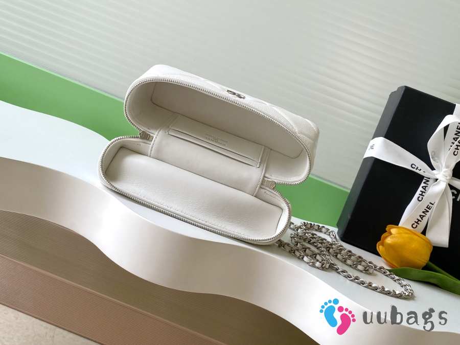 Uubags Chanel Vanity bag with strap lambskin & silver metal in white 17x19.5x5cm