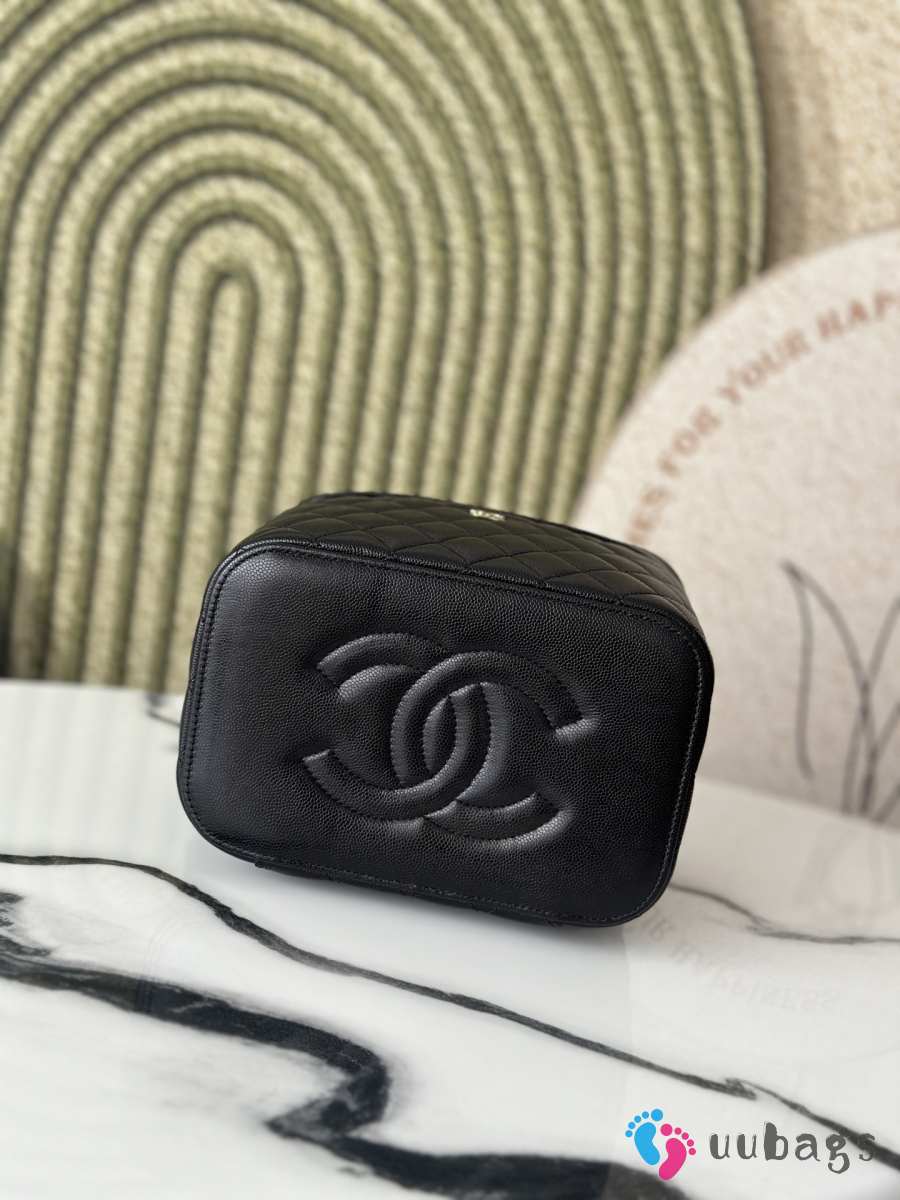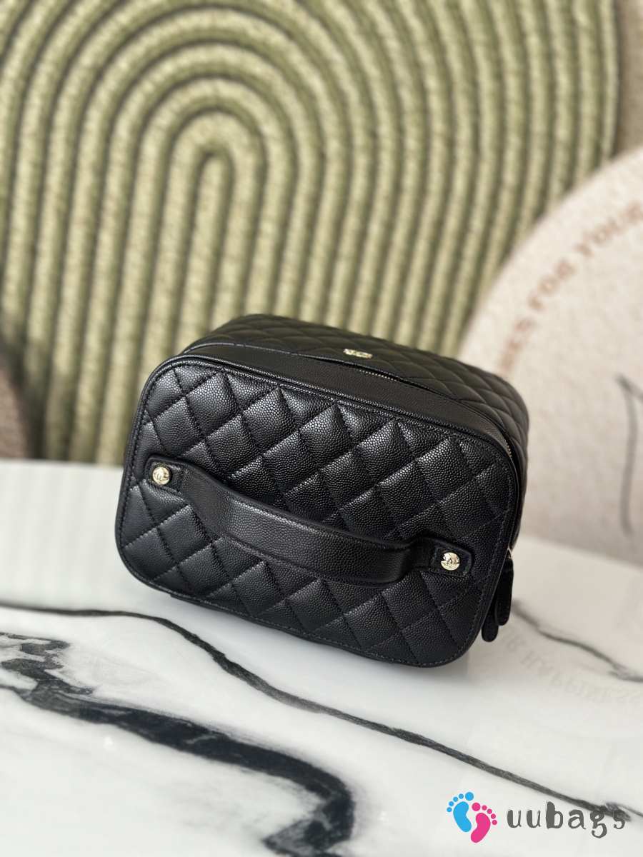 Uubags Chanel Vanity Black Leather Top Handle Bag 20x13x15cm